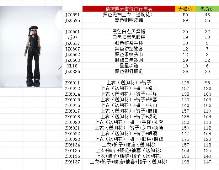 Top + pants + waist chain + sleeves + hat (comes with corsage)