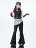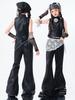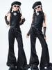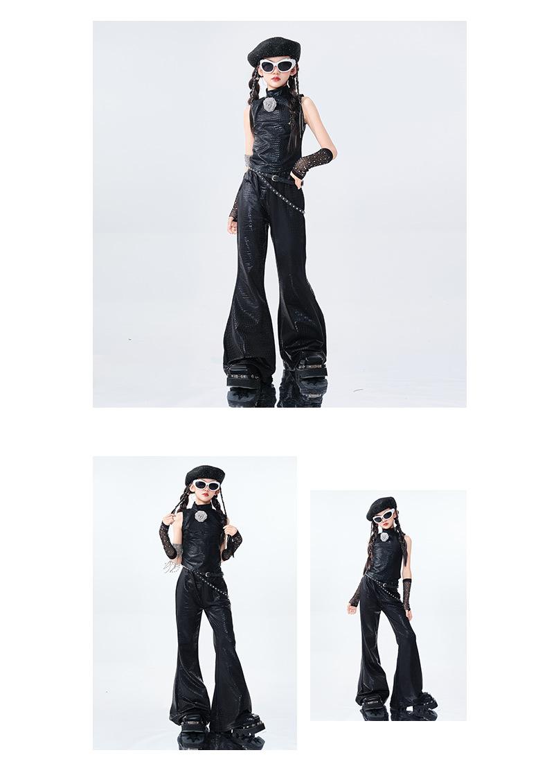 Black sleeveless top (comes with corsage), Black flared leather pants, Top (with corsage included) + pants, To...