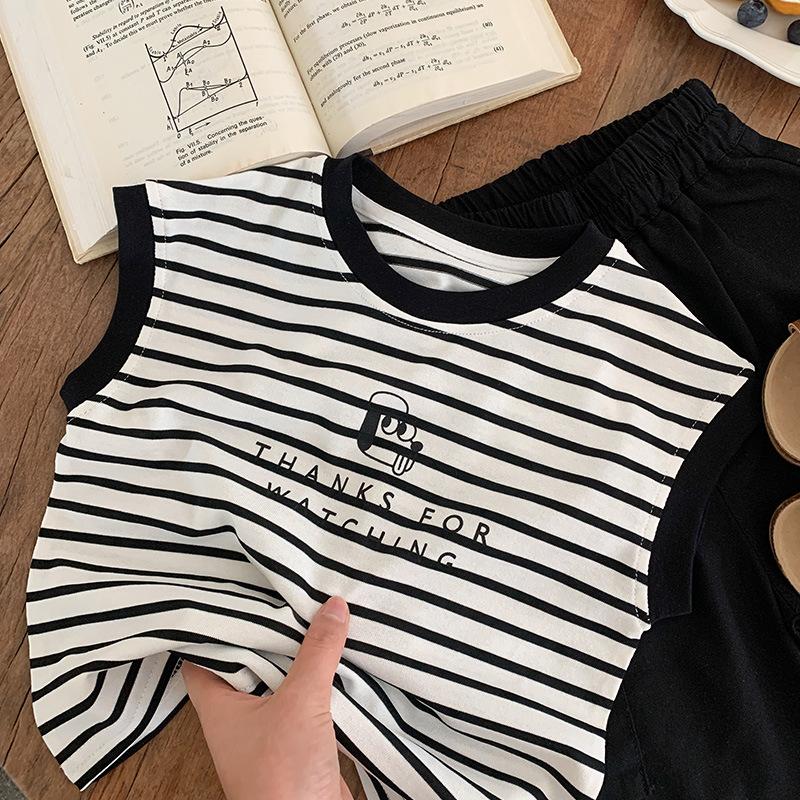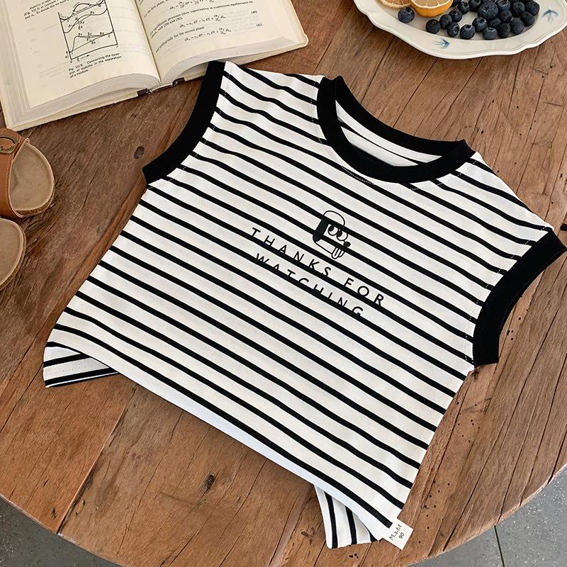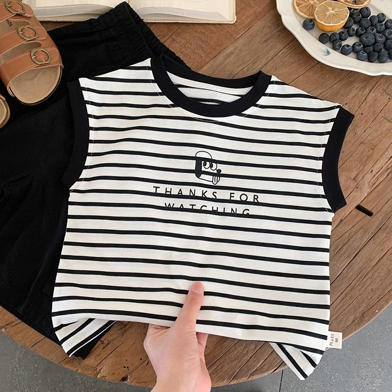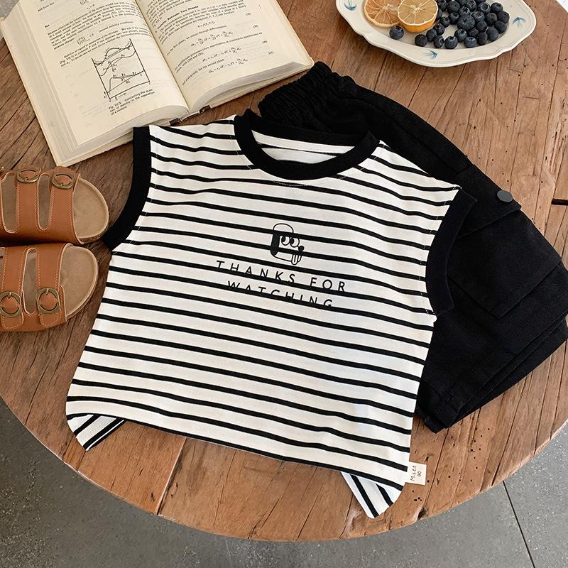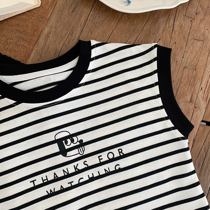 Chaleco para niños 2025 Verano Nueva Llegada Camiseta sin mangas a rayas de dibujos animados para niños y niñas
