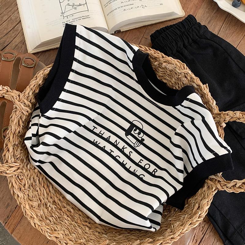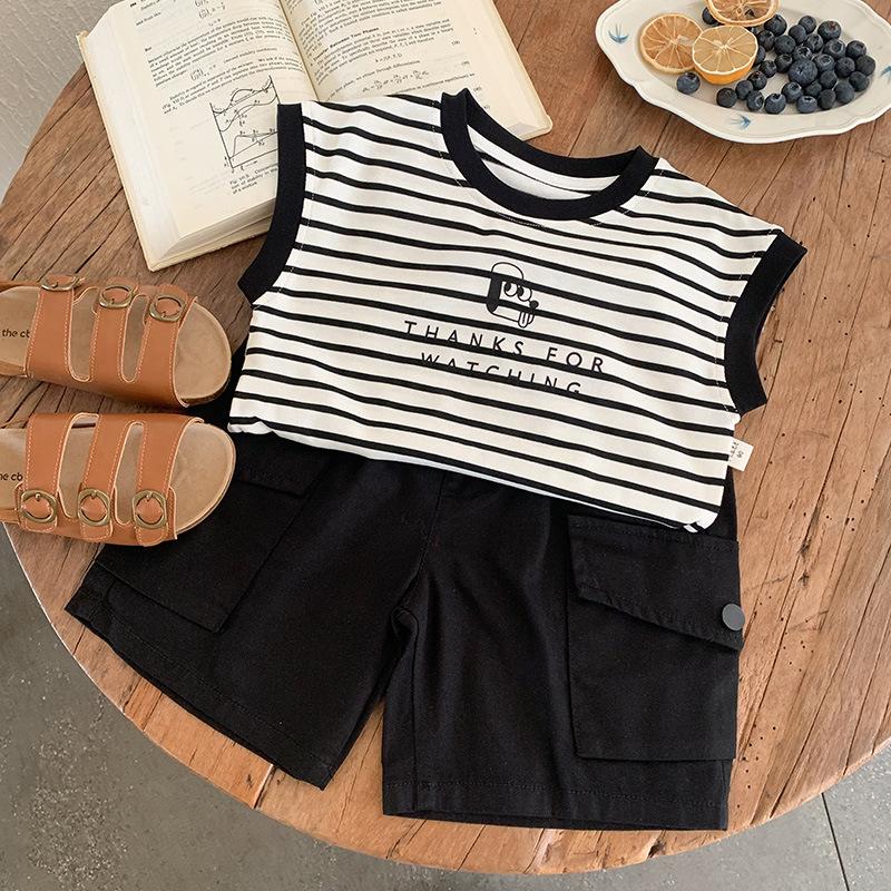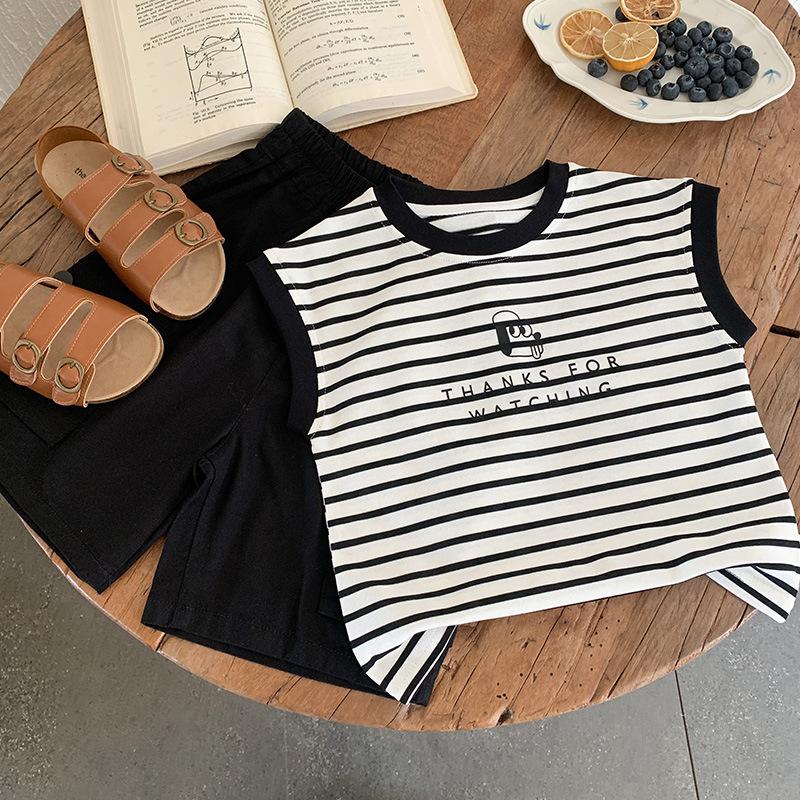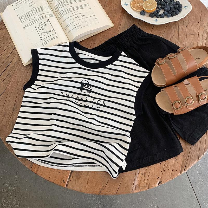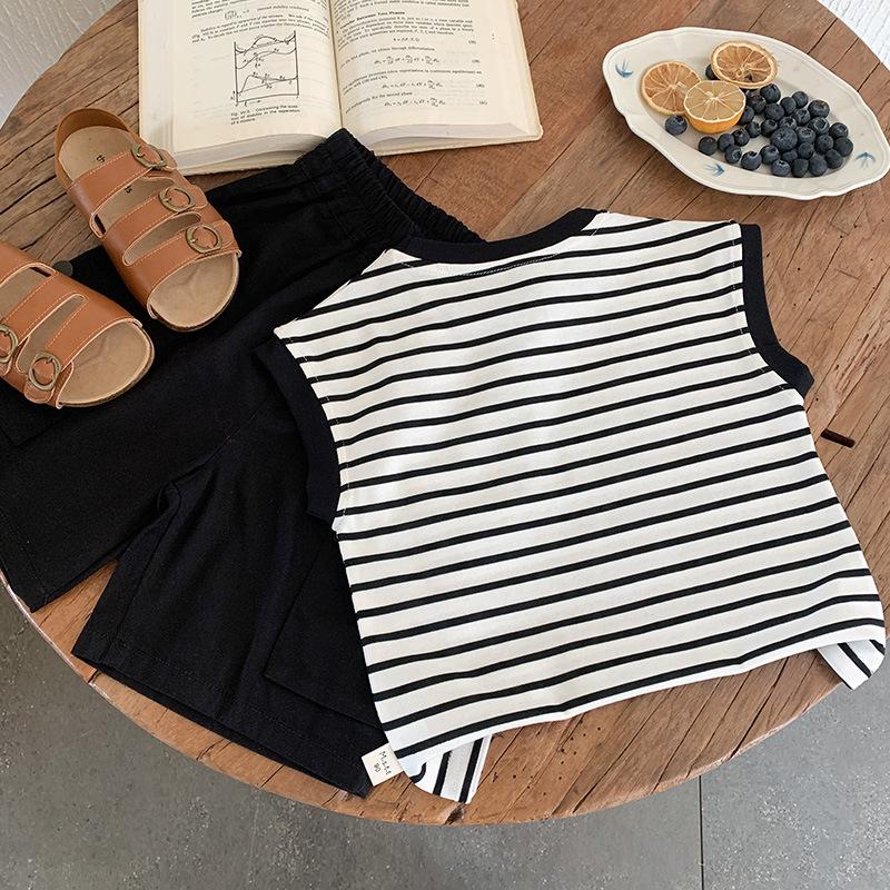 Chaleco para niños 2025 Verano Nueva Llegada Camiseta sin mangas a rayas de dibujos animados para niños y niñas