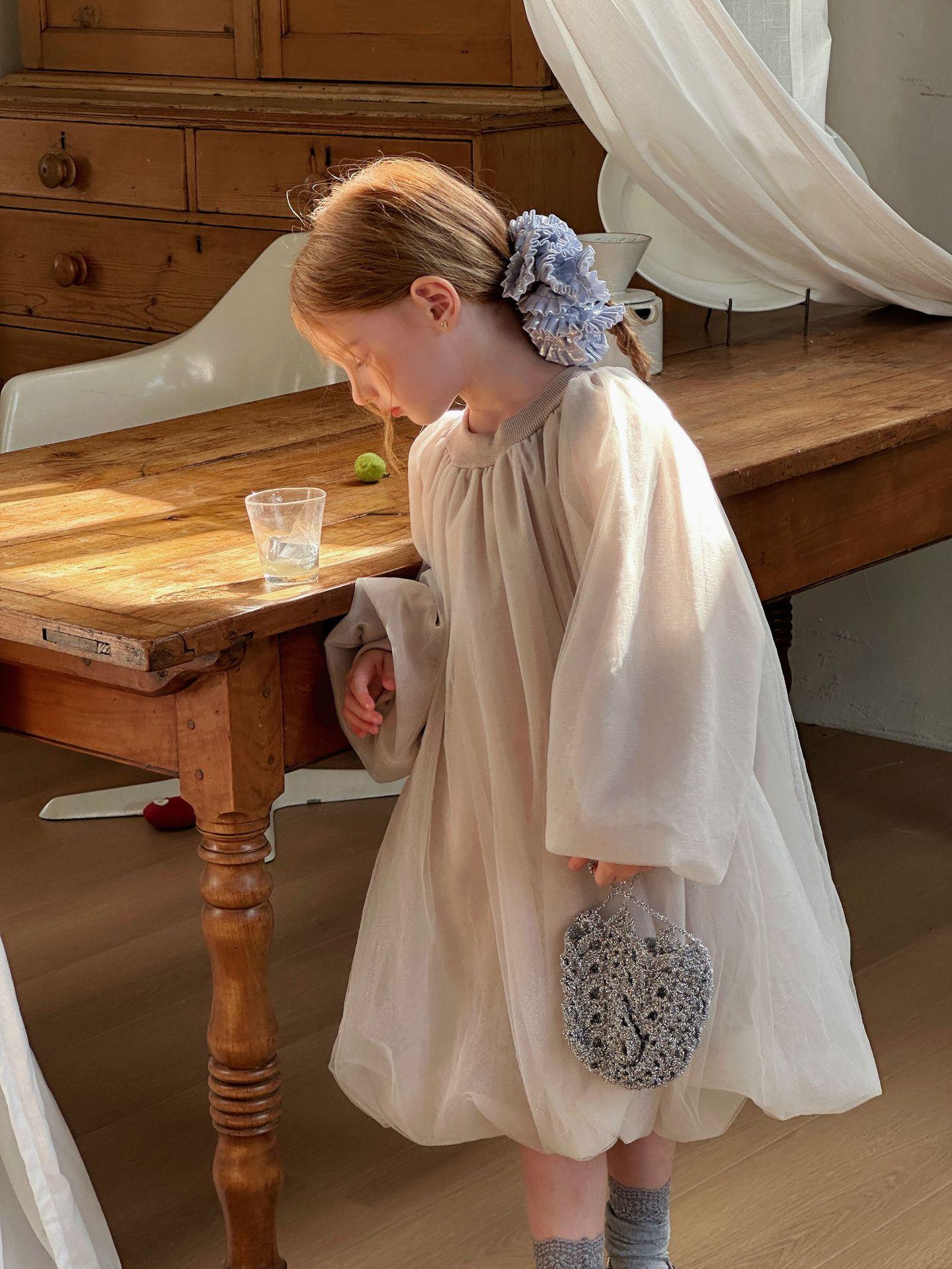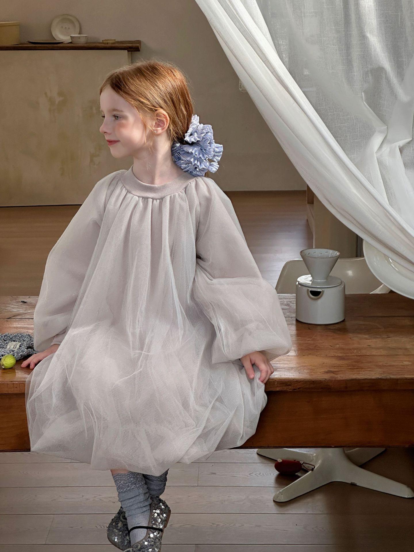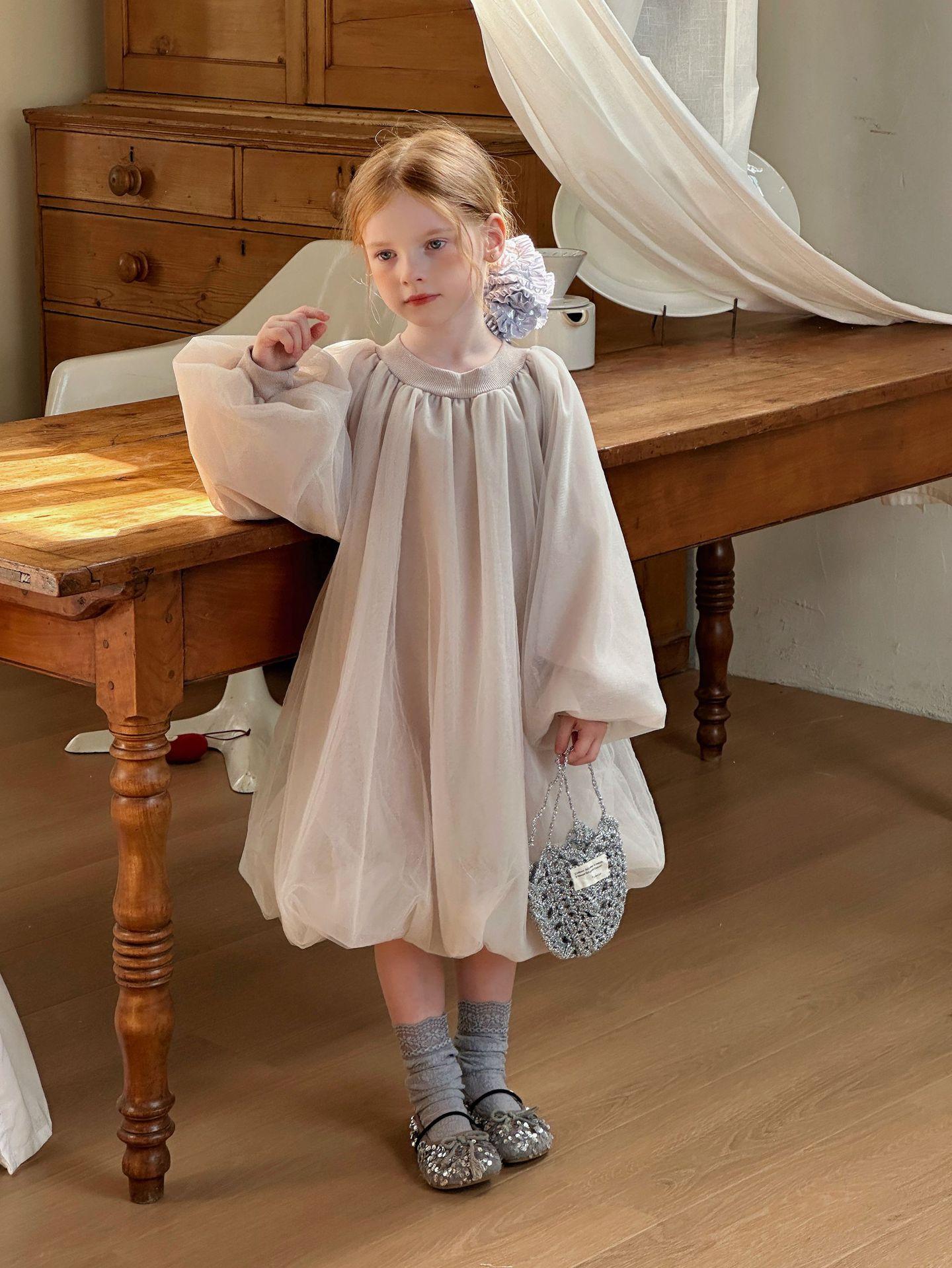 Vestido de Manga Larga para Niñas Otoño/Invierno 2025 Nuevo Estilo Coreano Vestido de Princesa Infantil de Alta Gama Falda de Tul Abullonada para Bebé