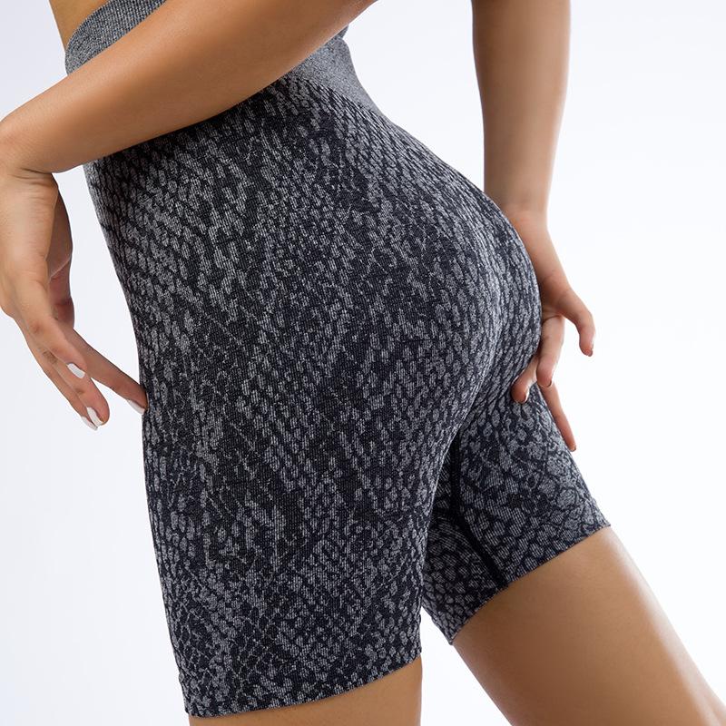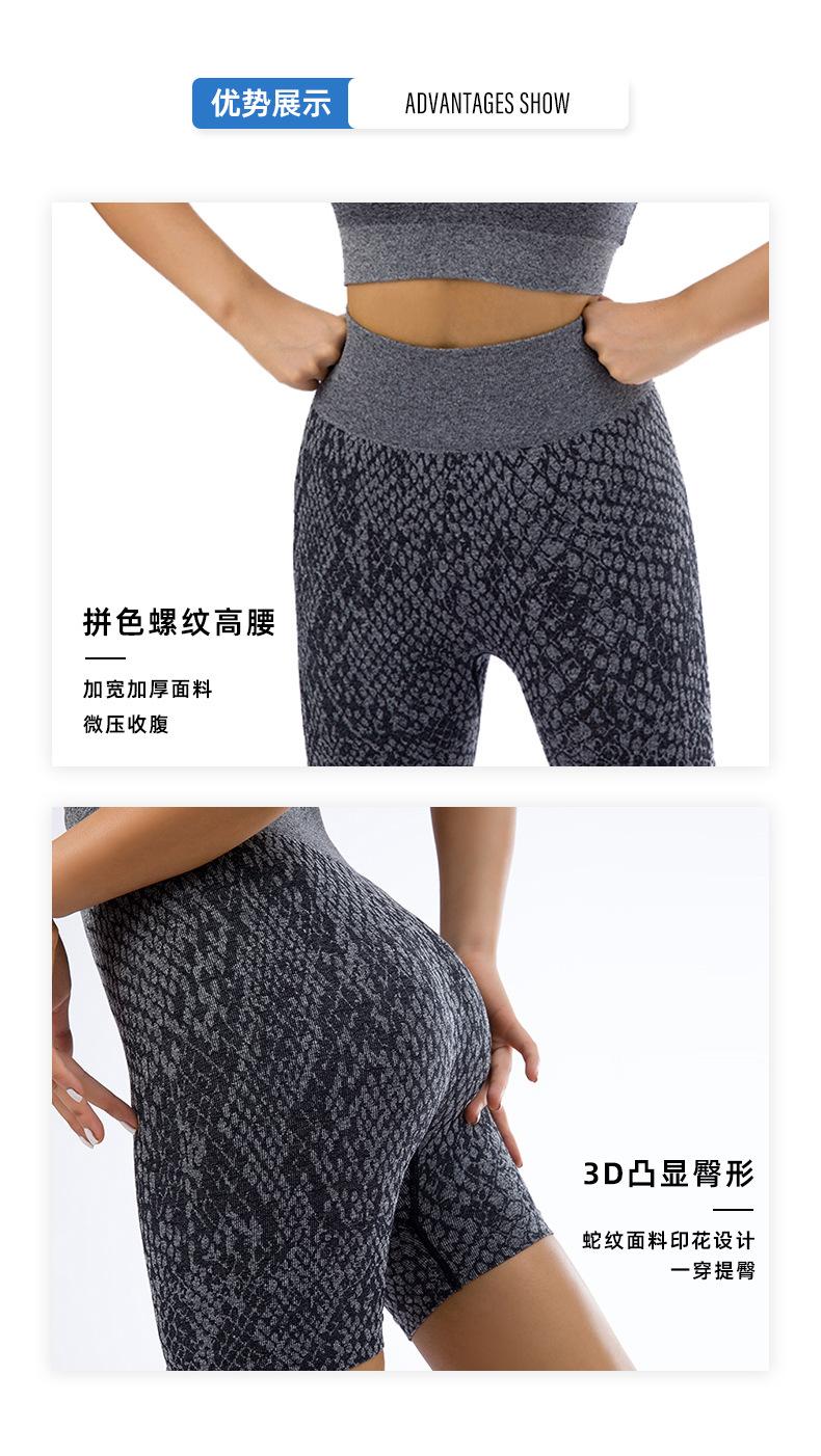 Pantalones delgados de nailon melocotón para cadera de Amazon transfronterizos europeos y americanos, patrón de serpiente sin costuras, pantalones de yoga de tres puntos 9134