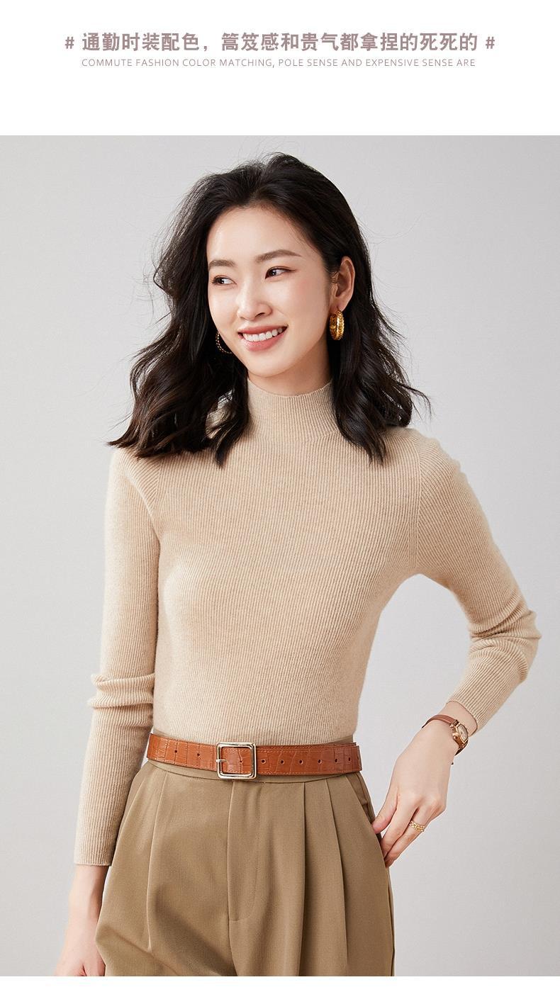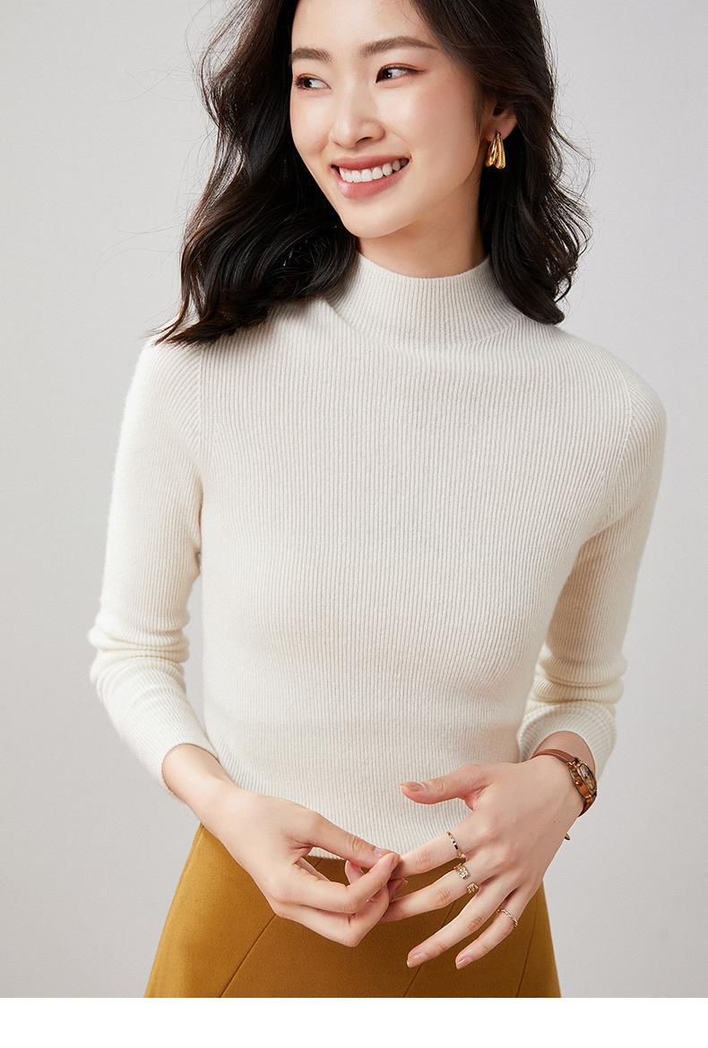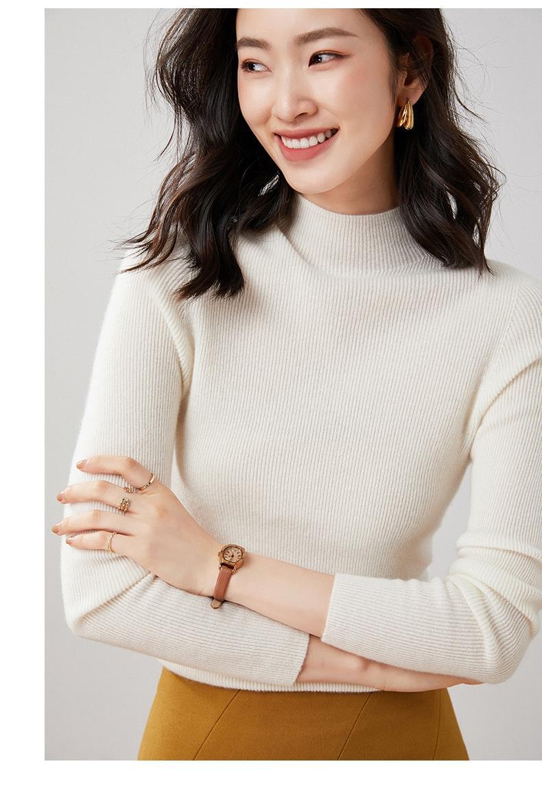 Suéter Delgado de Cachemira de Una Línea Listo para Usar para Mujer, Fondo de Cuello Medio Tortuga, Suéter Tejido de Rayas Adelgazante para Otoño e Invierno para Usar Debajo