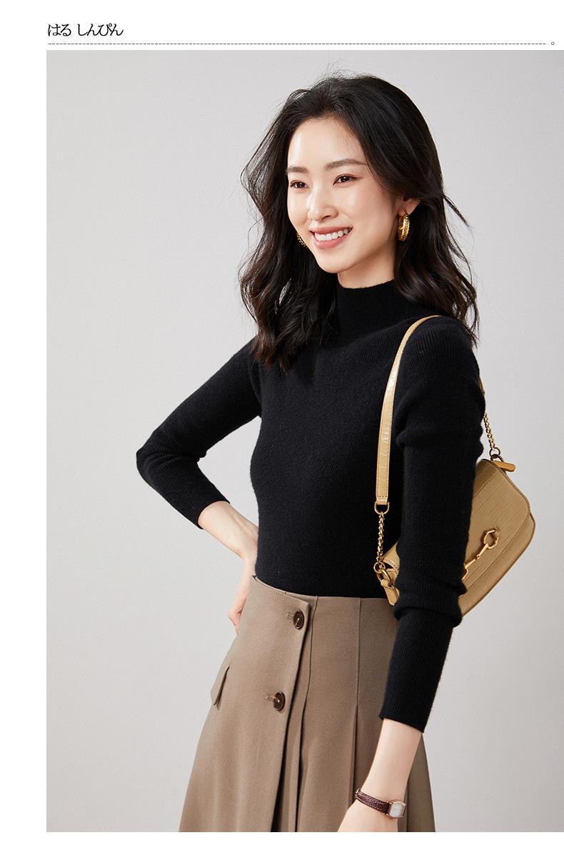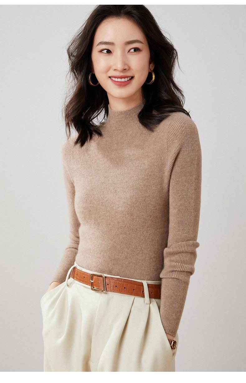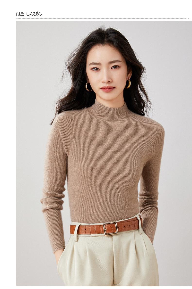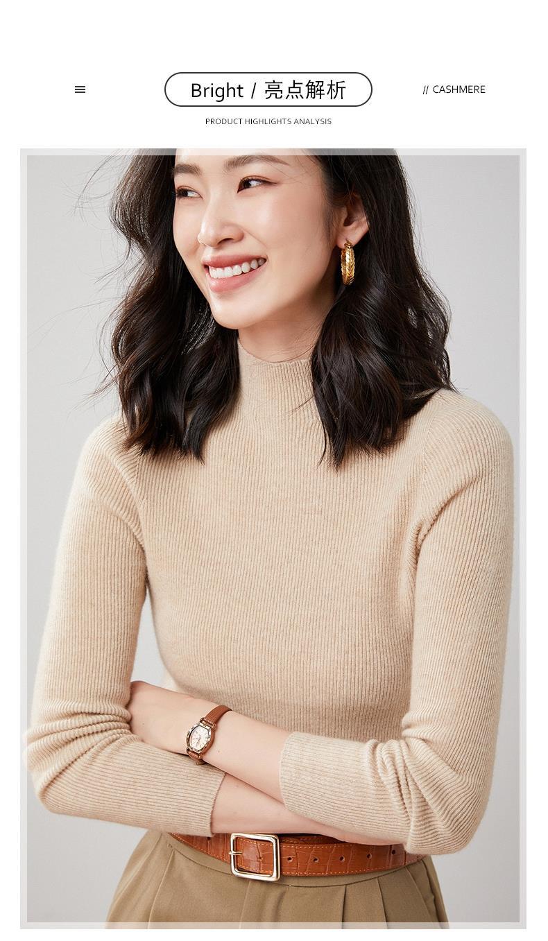 Suéter Delgado de Cachemira de Una Línea Listo para Usar para Mujer, Fondo de Cuello Medio Tortuga, Suéter Tejido de Rayas Adelgazante para Otoño e Invierno para Usar Debajo