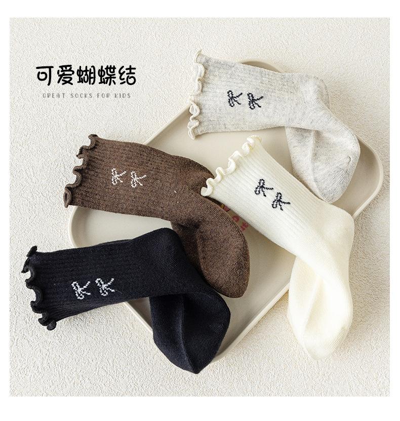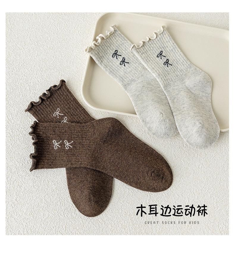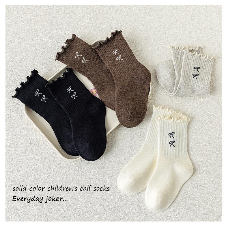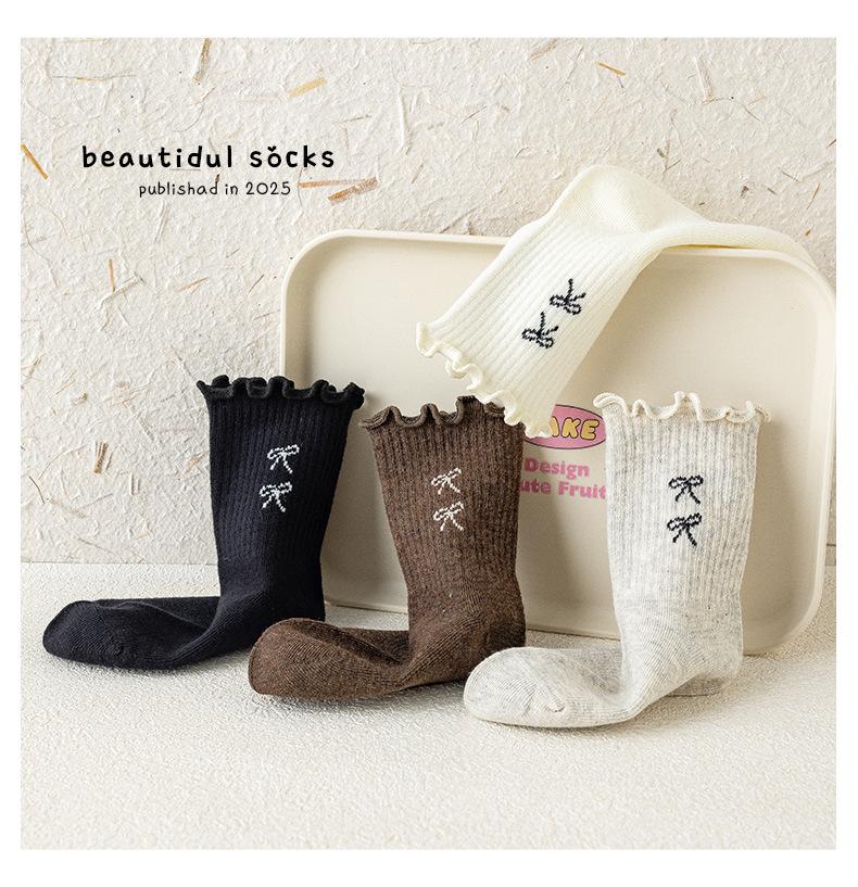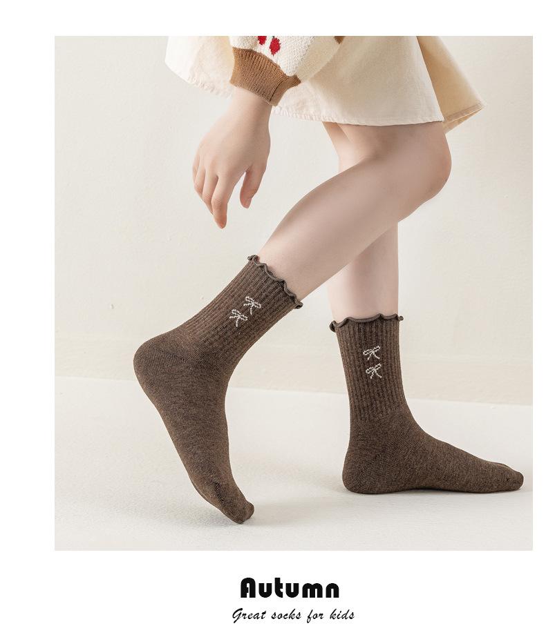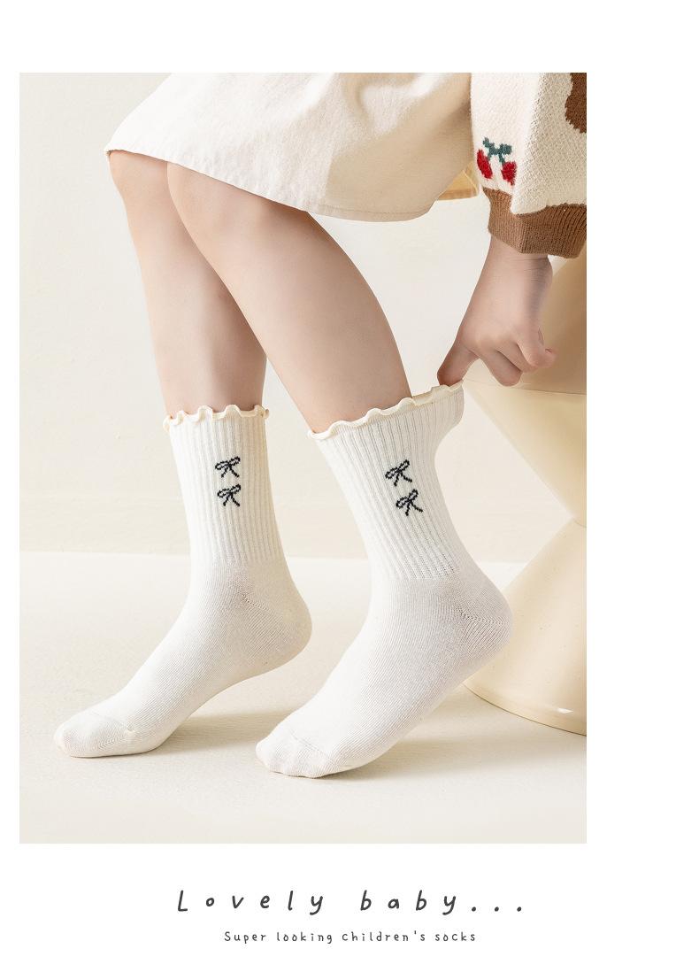 Calcetines para niños primavera y otoño calcetines de media caña calcetines lindos con lazo ins modernos borde enrollado niñas niños medianos y grandes estudiante calcetines de rizo