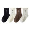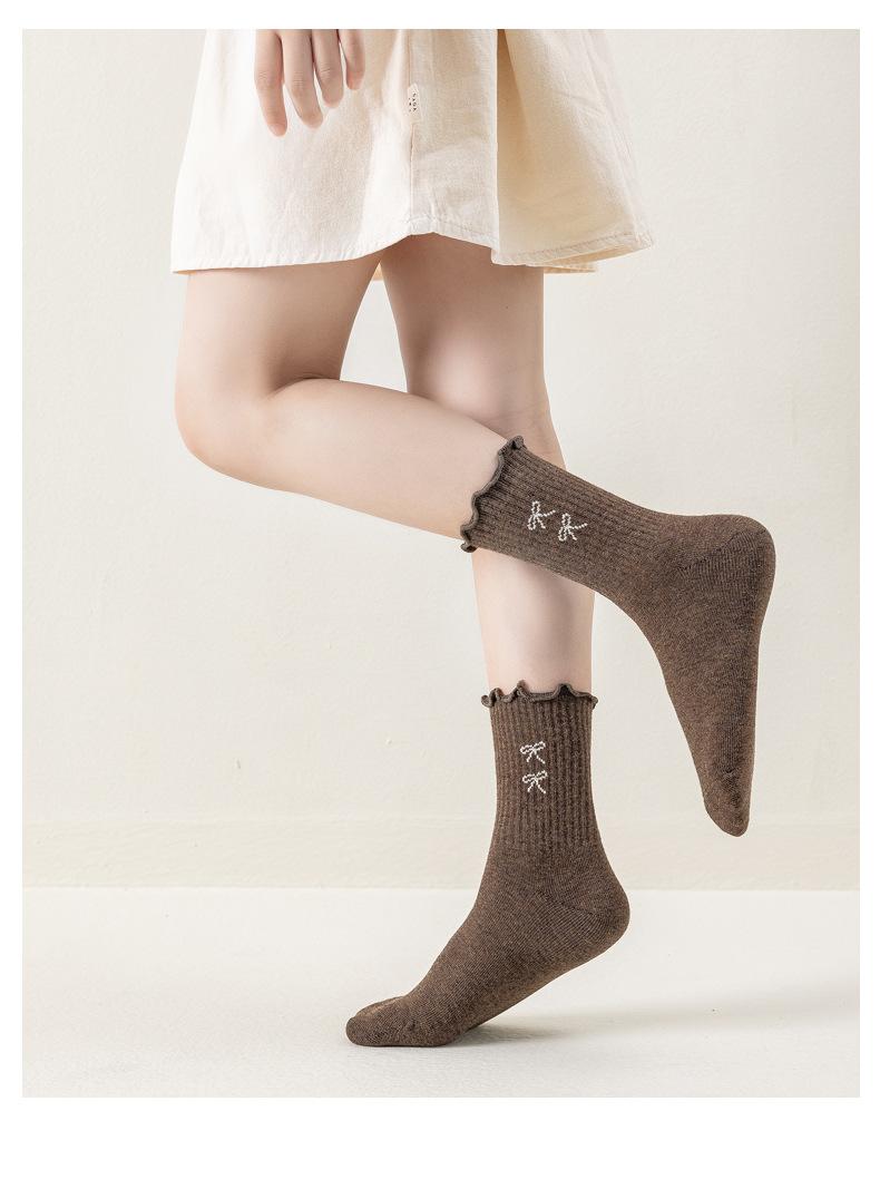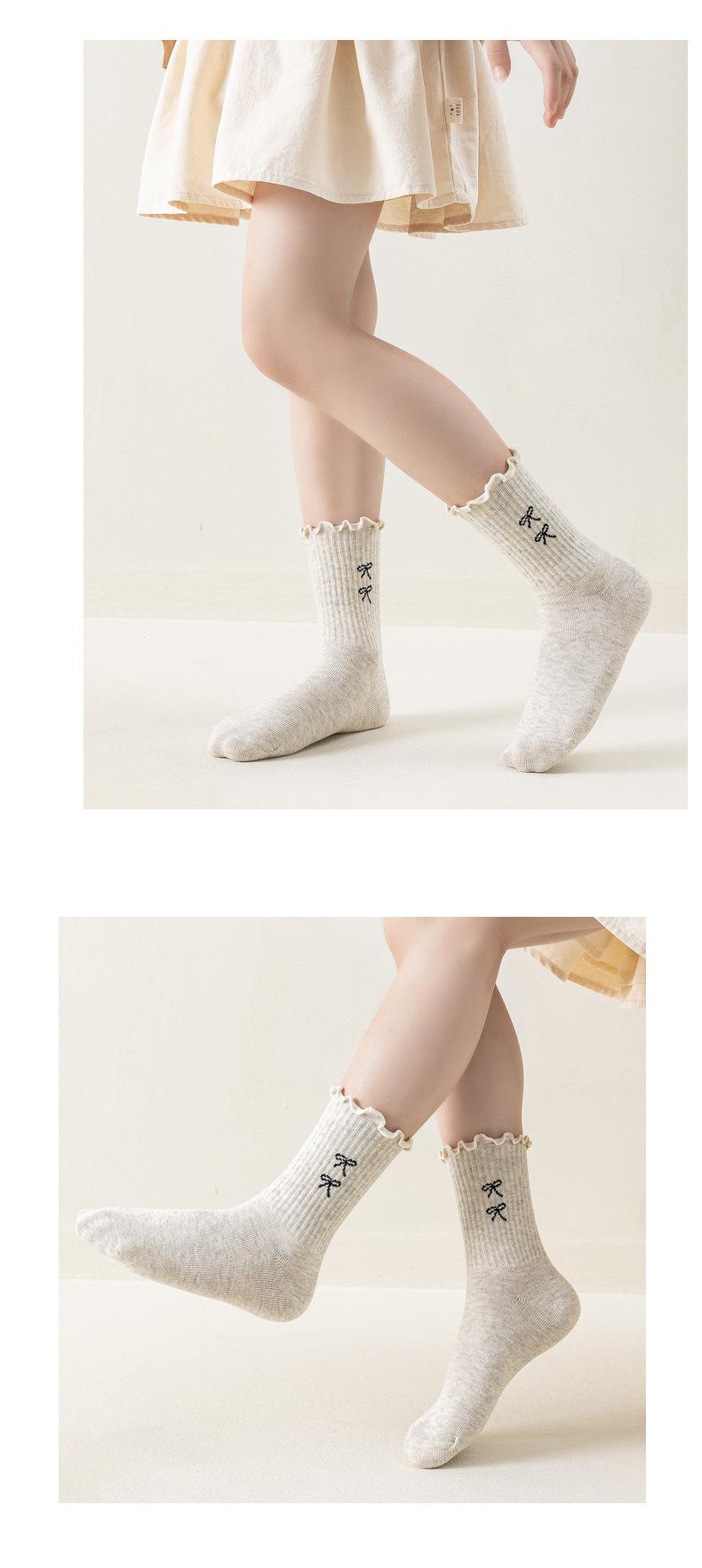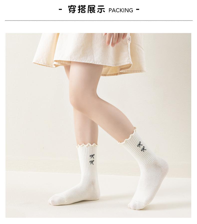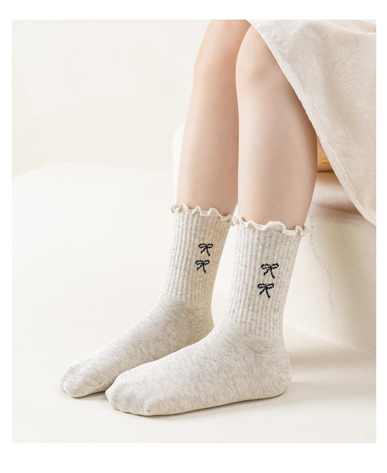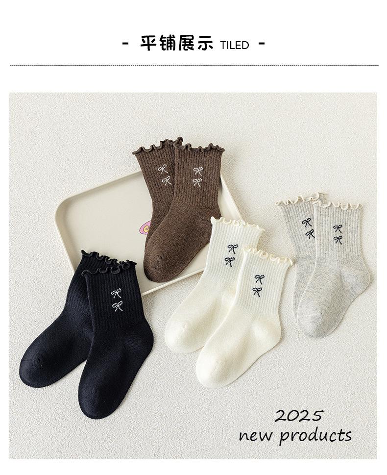 Calcetines para niños primavera y otoño calcetines de media caña calcetines lindos con lazo ins modernos borde enrollado niñas niños medianos y grandes estudiante calcetines de rizo