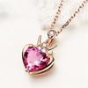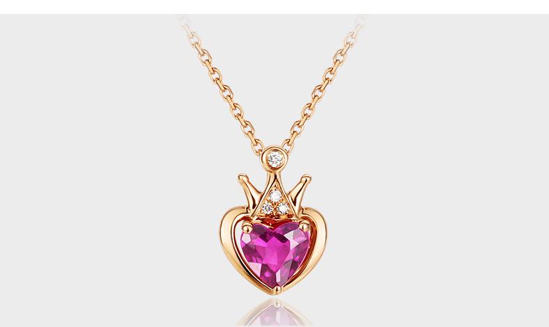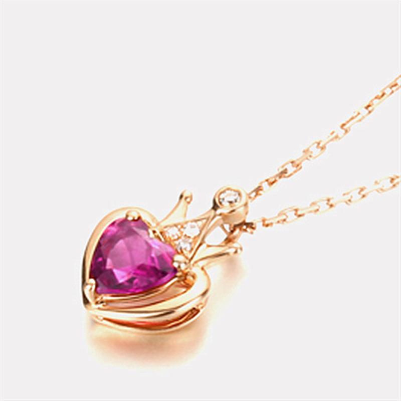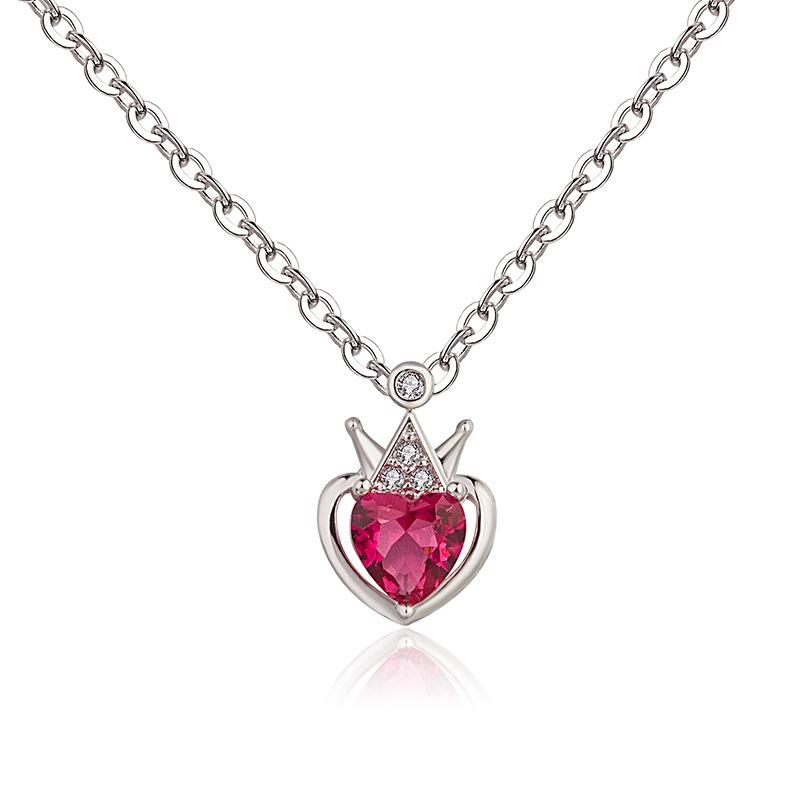 Collar dorado estilo coreano Cadena de clavícula Corona Turmalina roja Corazón Moda para mujer Collar con colgante de amor con incrustaciones de diamantes