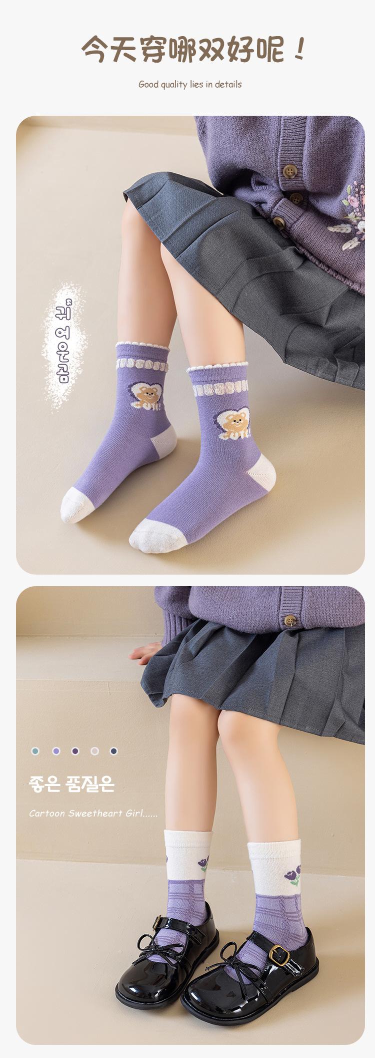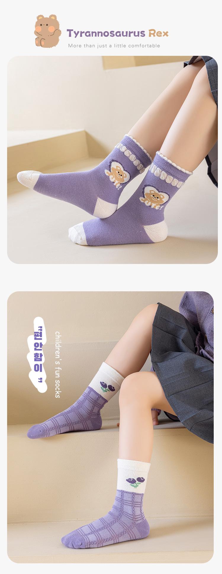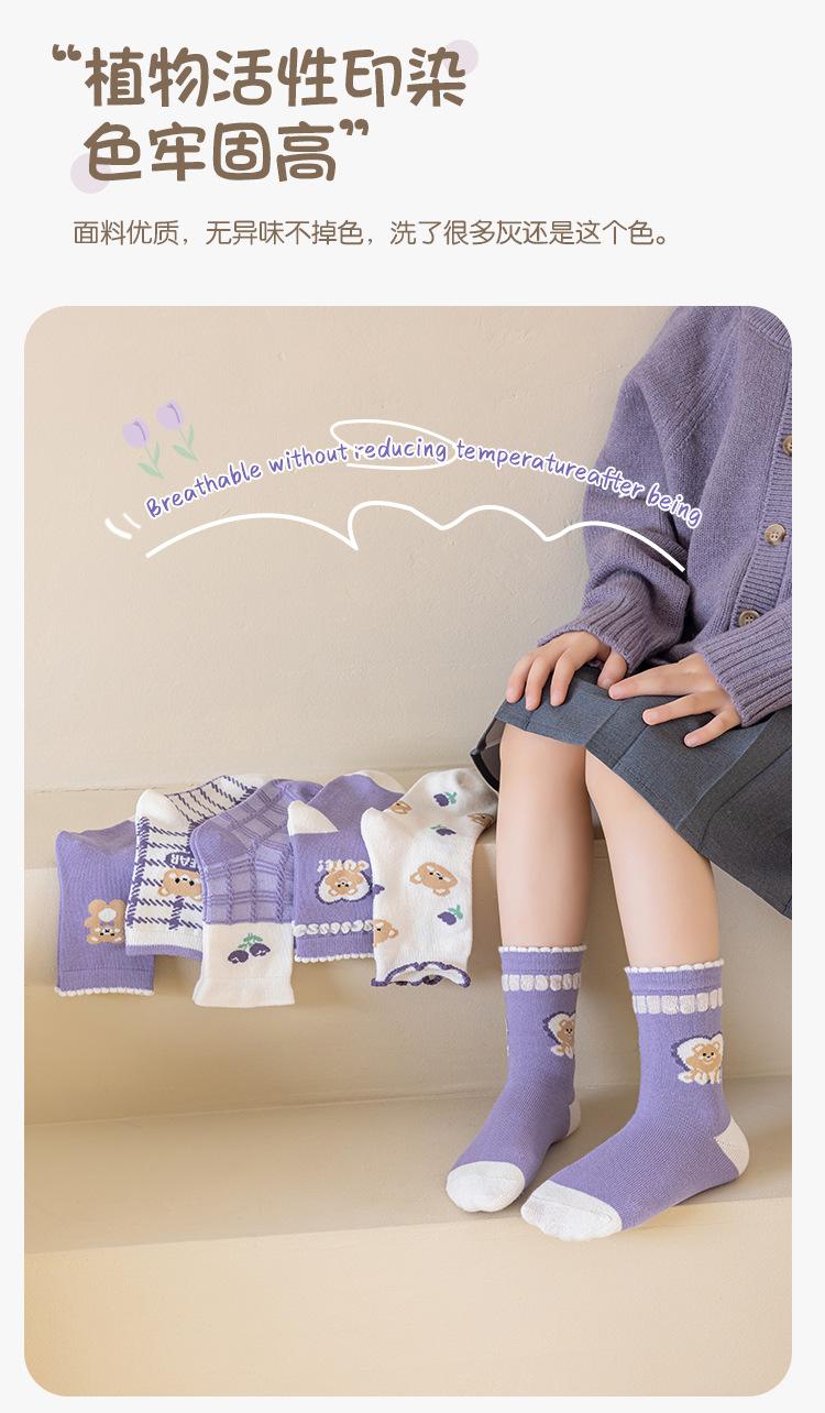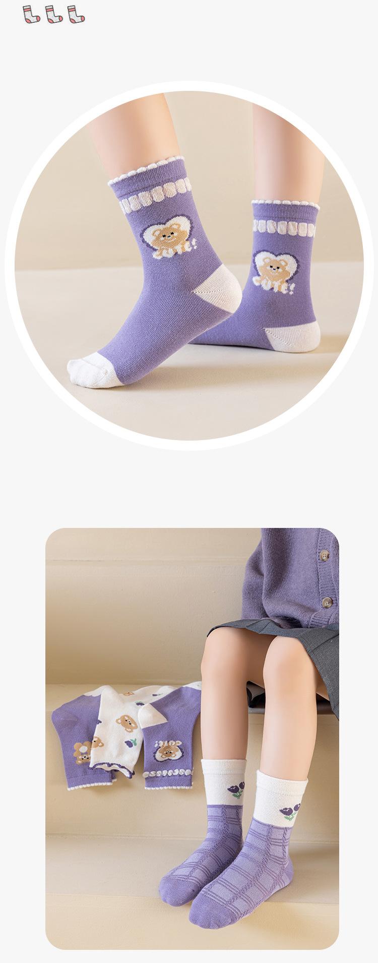 Calcetines para niñas otoño e invierno calcetines de algodón para niñas morado uva calcetines de media caña para niñas boca suelta encaje estudiante bebé
