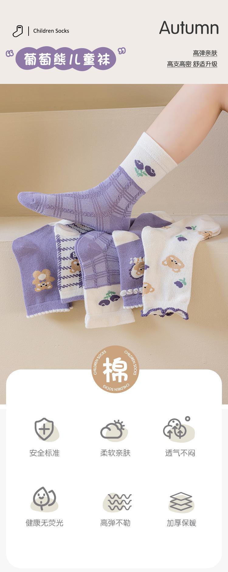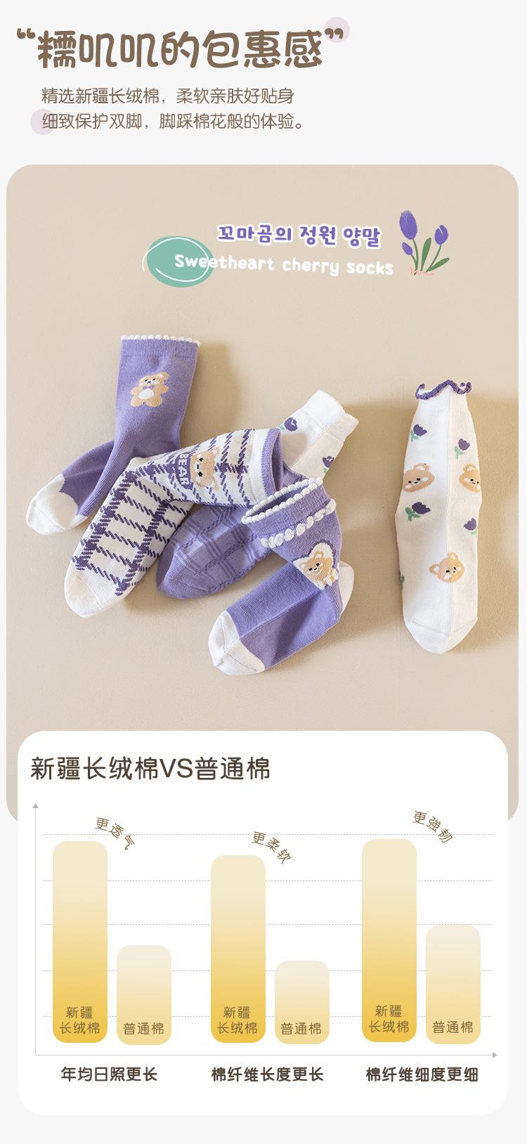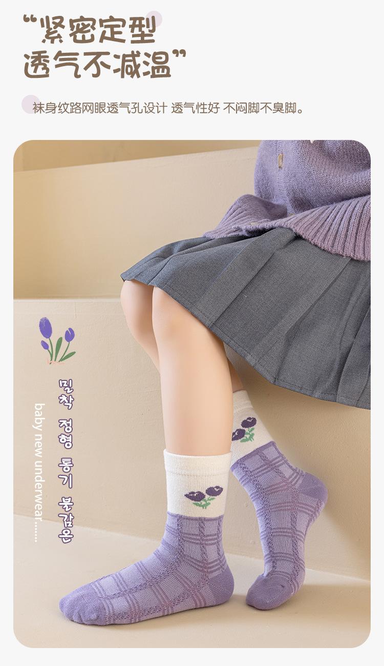 Calcetines para niñas otoño e invierno calcetines de algodón para niñas morado uva calcetines de media caña para niñas boca suelta encaje estudiante bebé