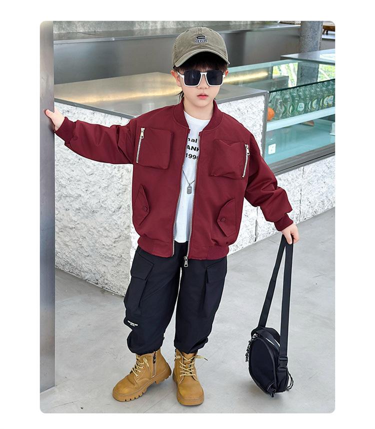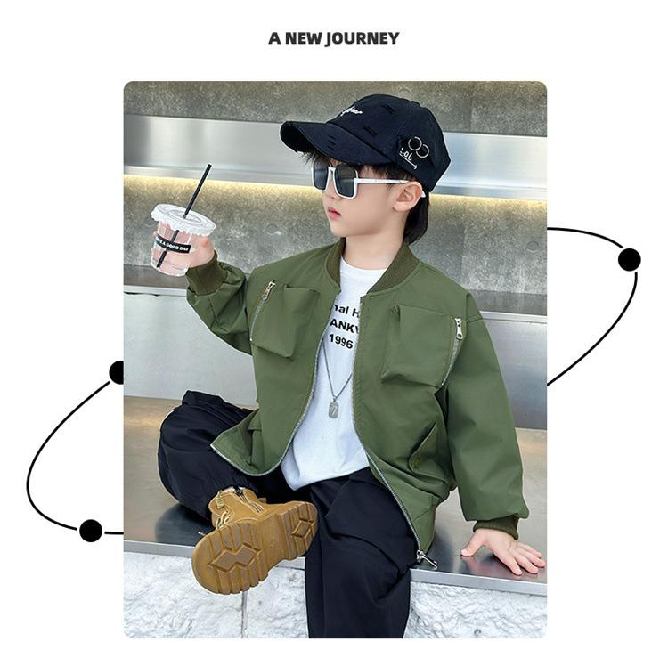Chaqueta de béisbol de primavera y otoño para niños con cuatro bolsillos 2025 Otoño Nuevo estilo coreano Ropa exterior moderna para niños Top para niños pequeños a medianos