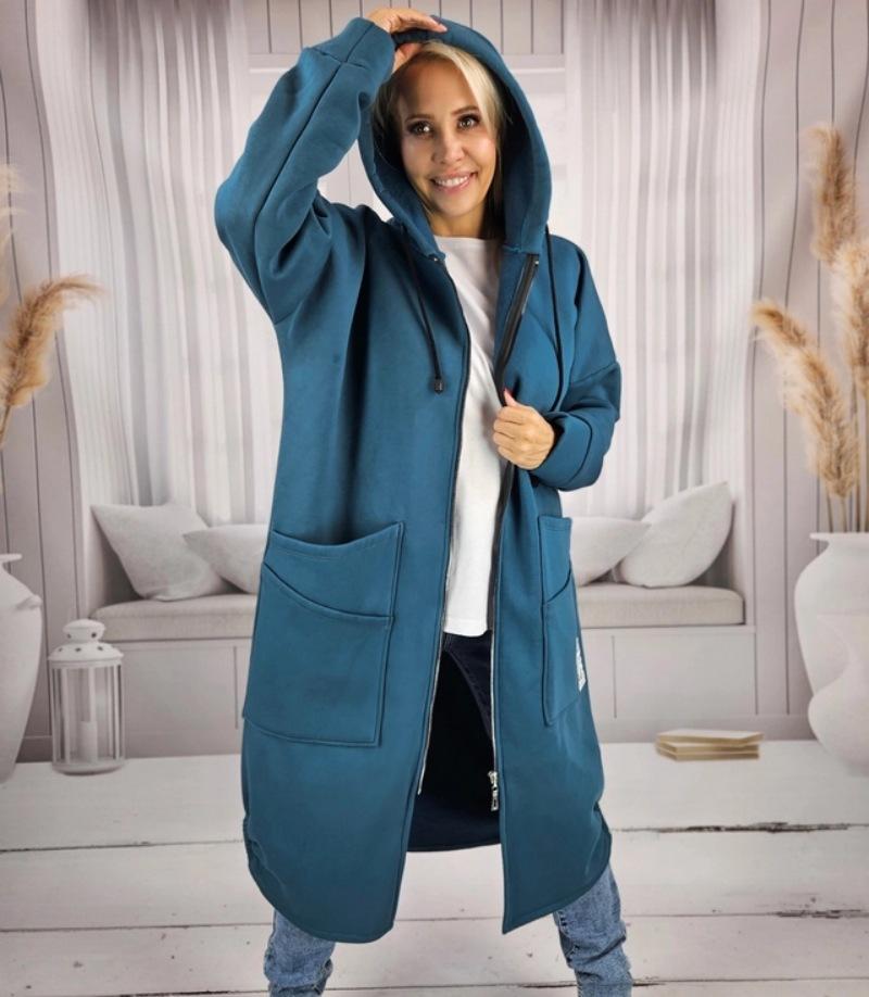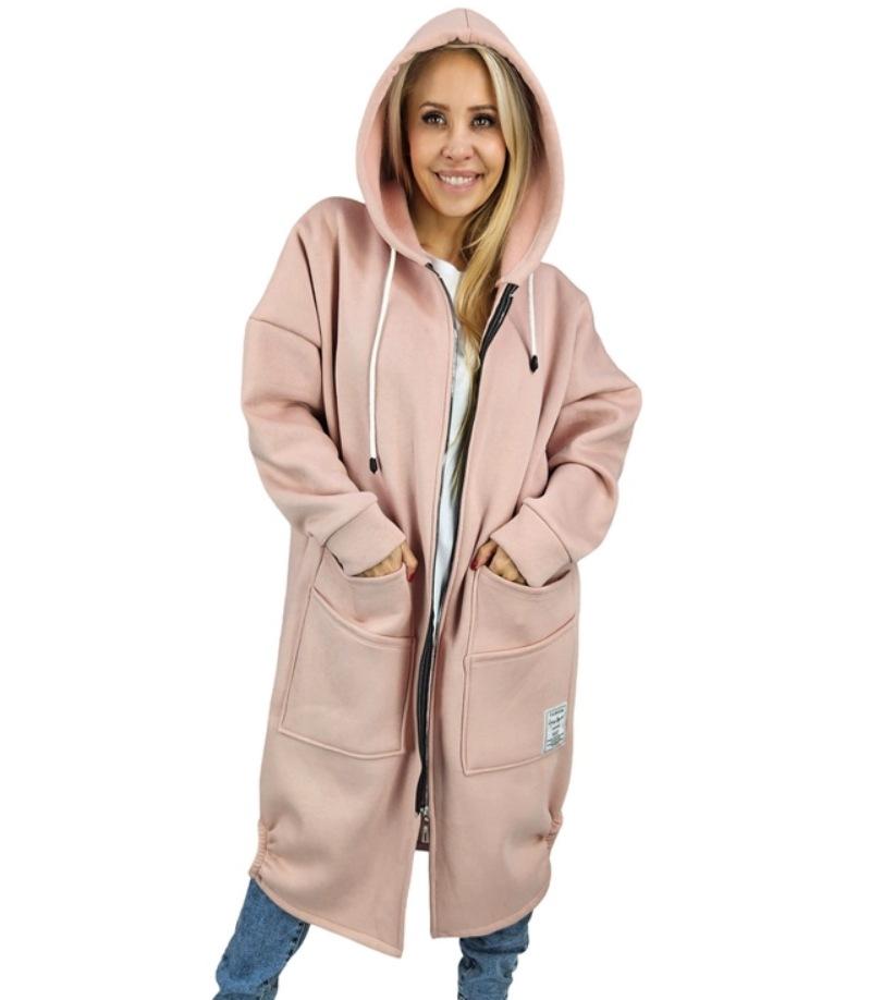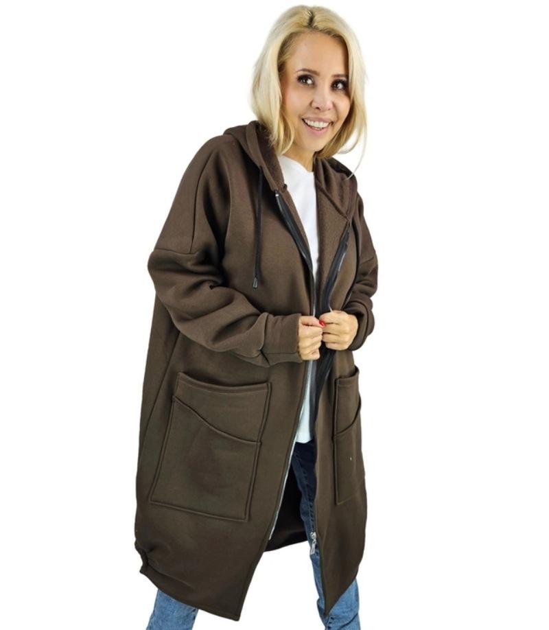 Nuevo Otoño/Invierno Suéter Holgado de Felpa con Capucha Tejido Talla Grande Ropa Exterior de Moda Casual Sudadera con Cremallera y Bolsillo Grande