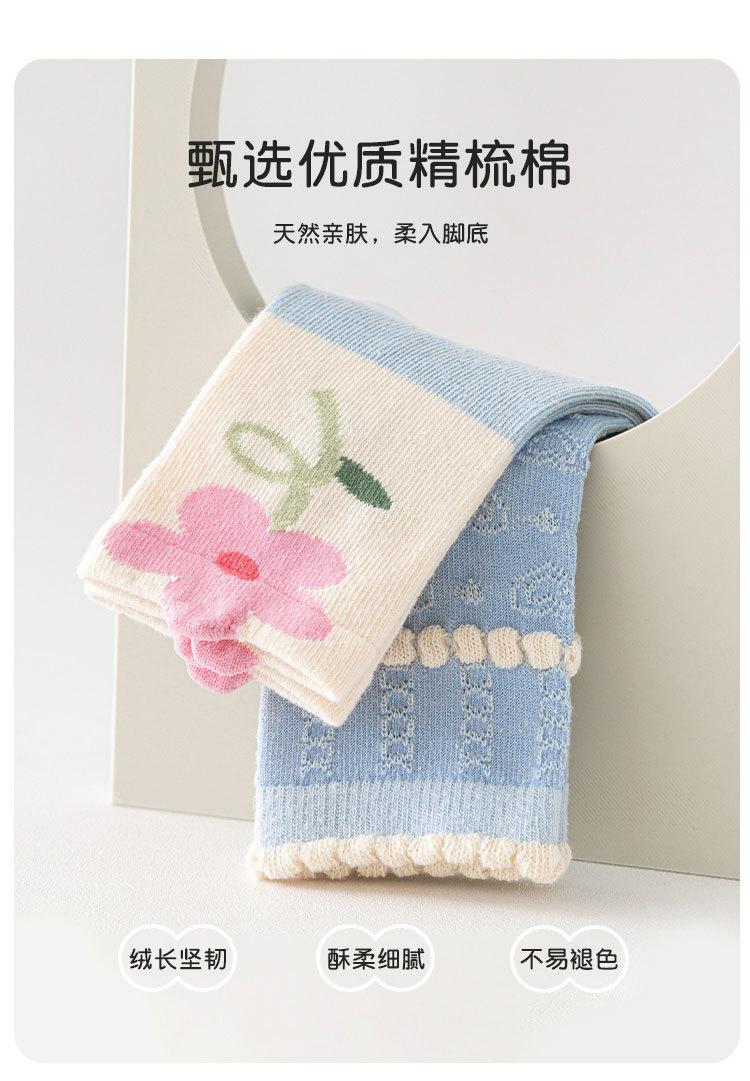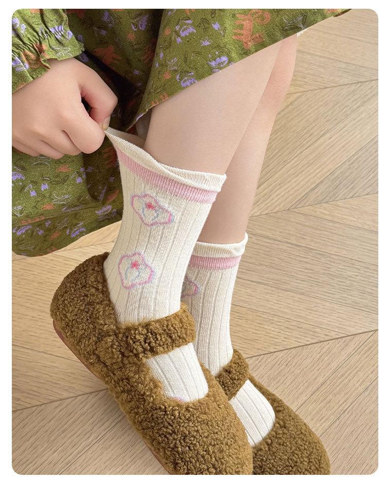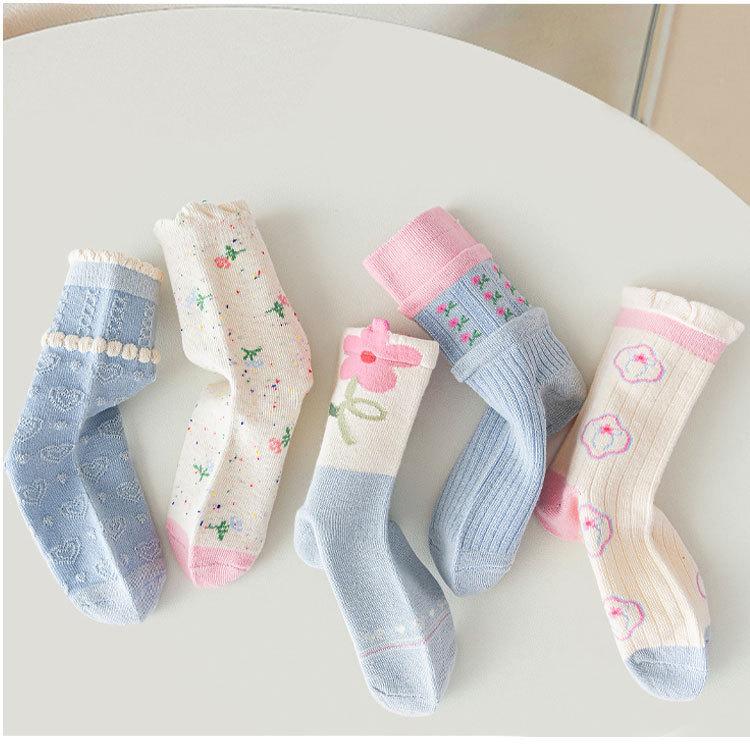 Otoño Nuevos Calcetines para Niños Calcetines de Encaje Estilo Mori para Niña Calcetines Dulces de Princesa con Flores de Media Caña de Algodón Venta al por Mayor