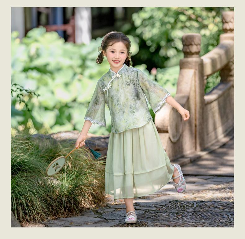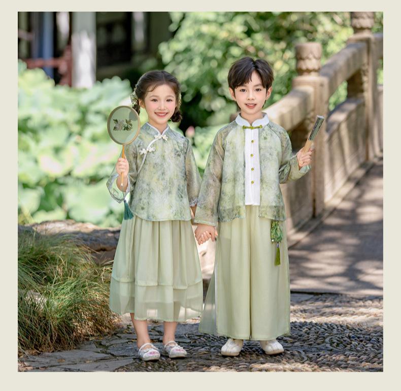 Conjunto de estilo chino nuevo para niñas 2025 Otoño Nuevo Hanfu Conjunto de dos piezas de estilo chino para niños Traje de actuación de disfraz antiguo para niños