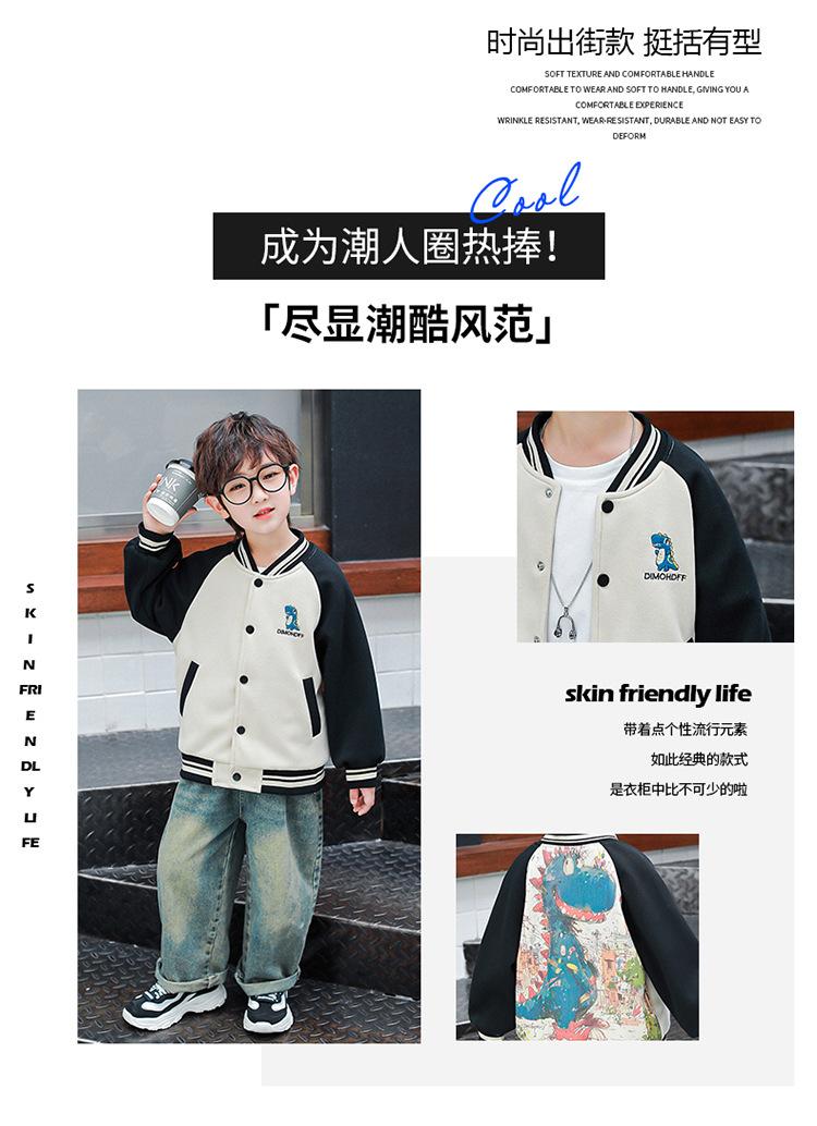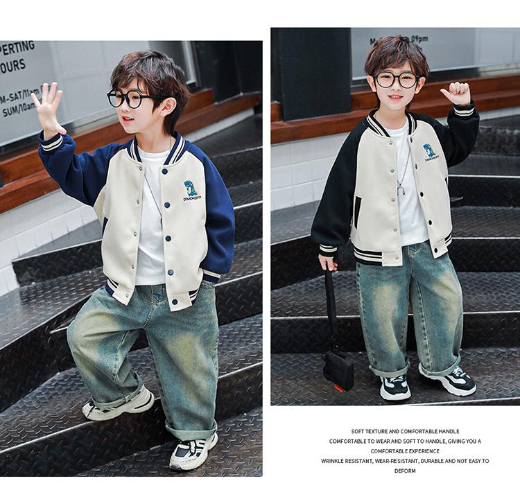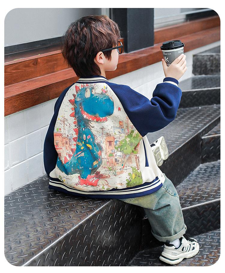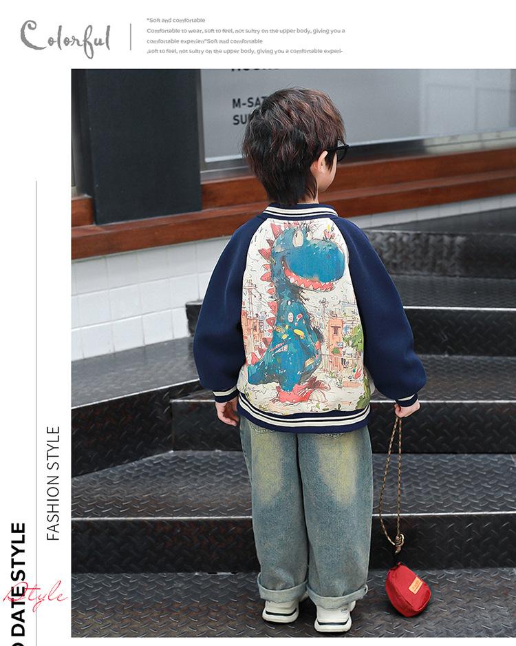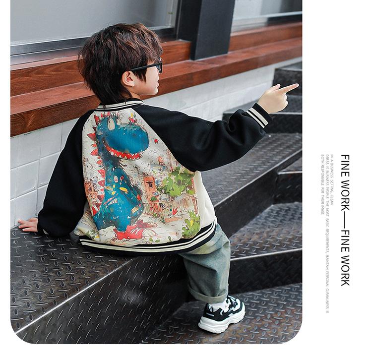 Chaqueta de Otoño para Niño con Dinosaurio 2025 Primavera y Otoño Nueva Chaqueta Infantil Guapa Estilo Coreano Top Moderno para Niños Pequeños y Medianos