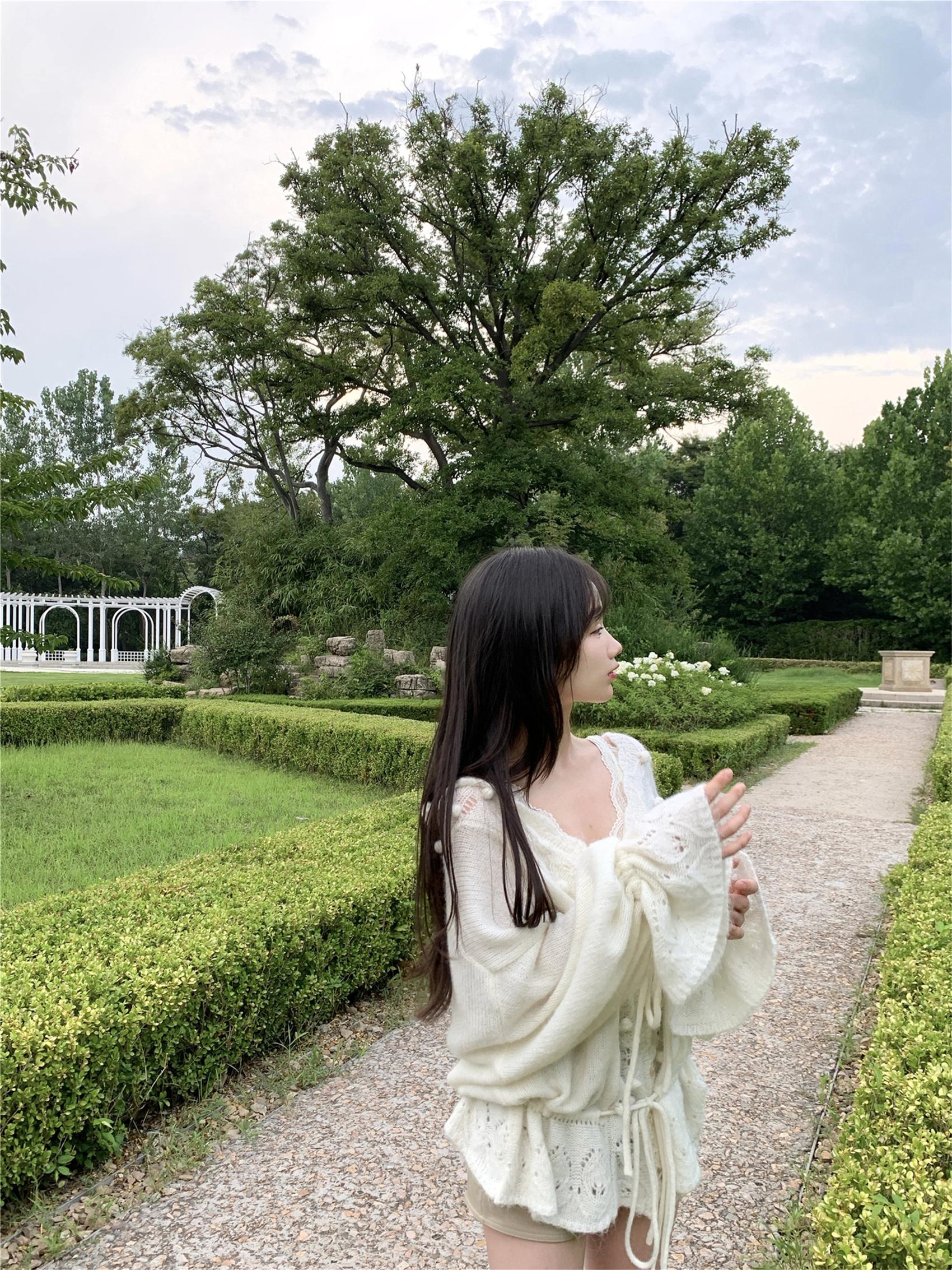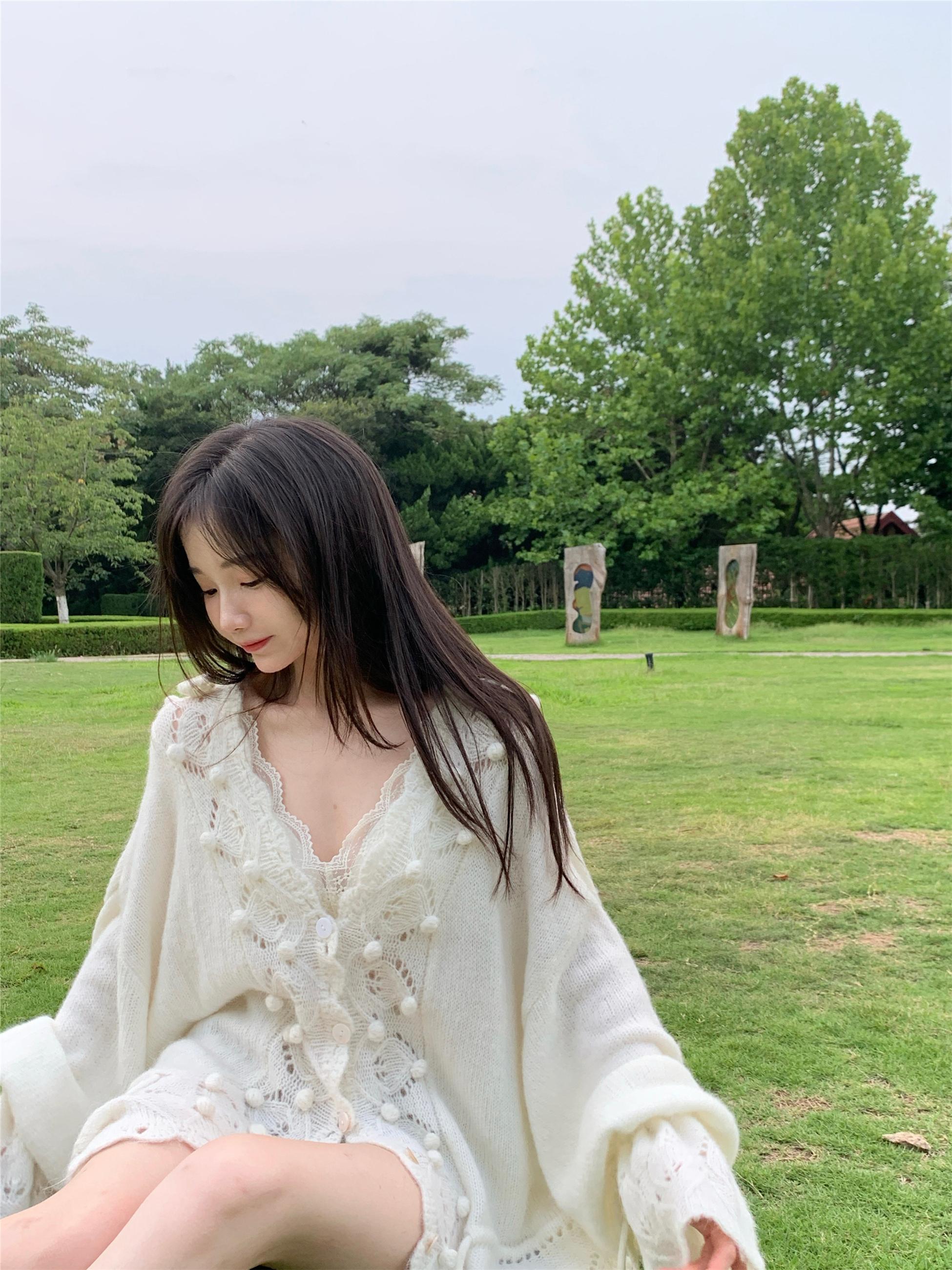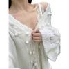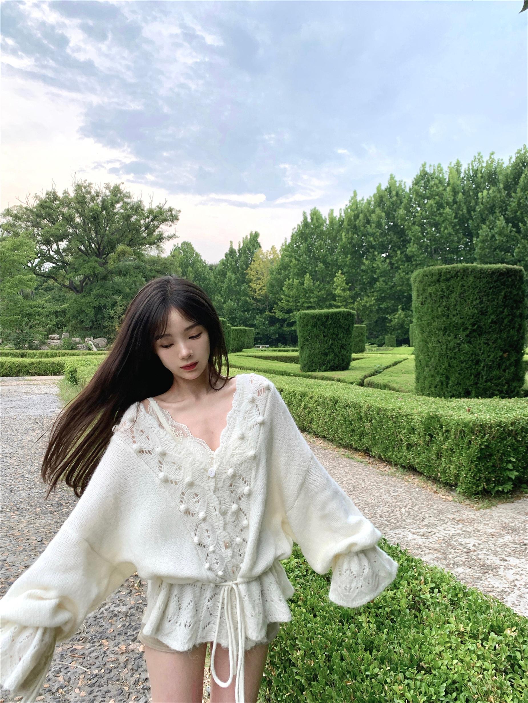 Otoño 2025 Nuevo Suéter de Punto para Mujer de Crochet Calado Francés Cuello en V Holgado con Cordón Top Perezoso