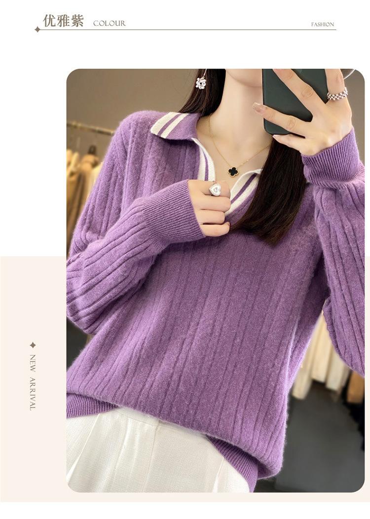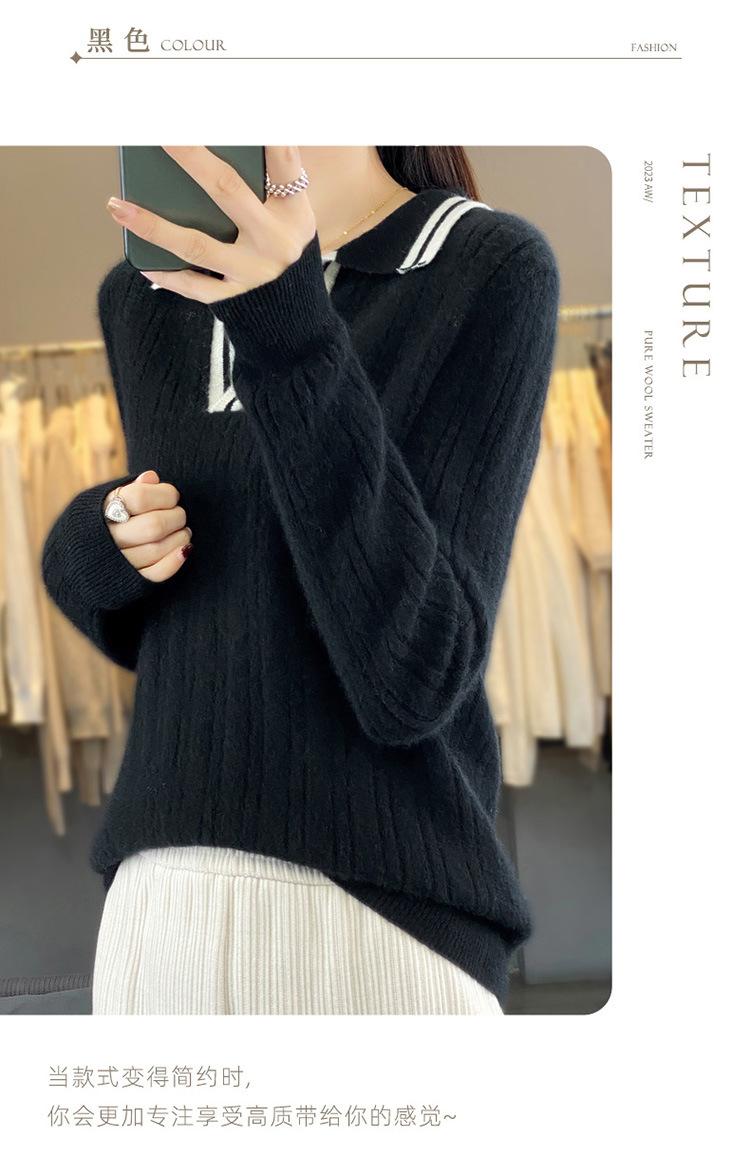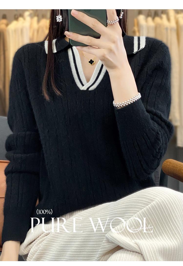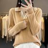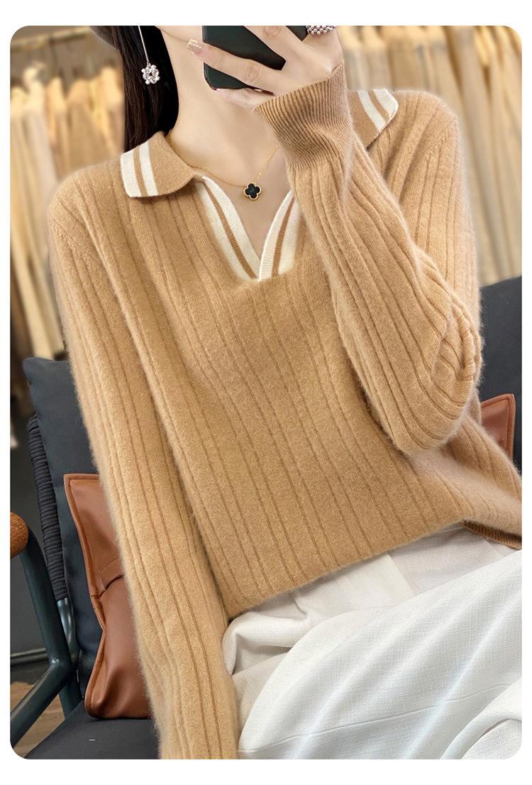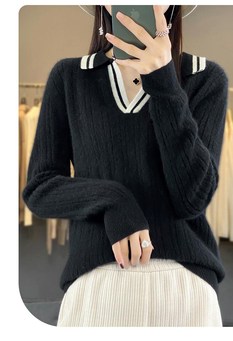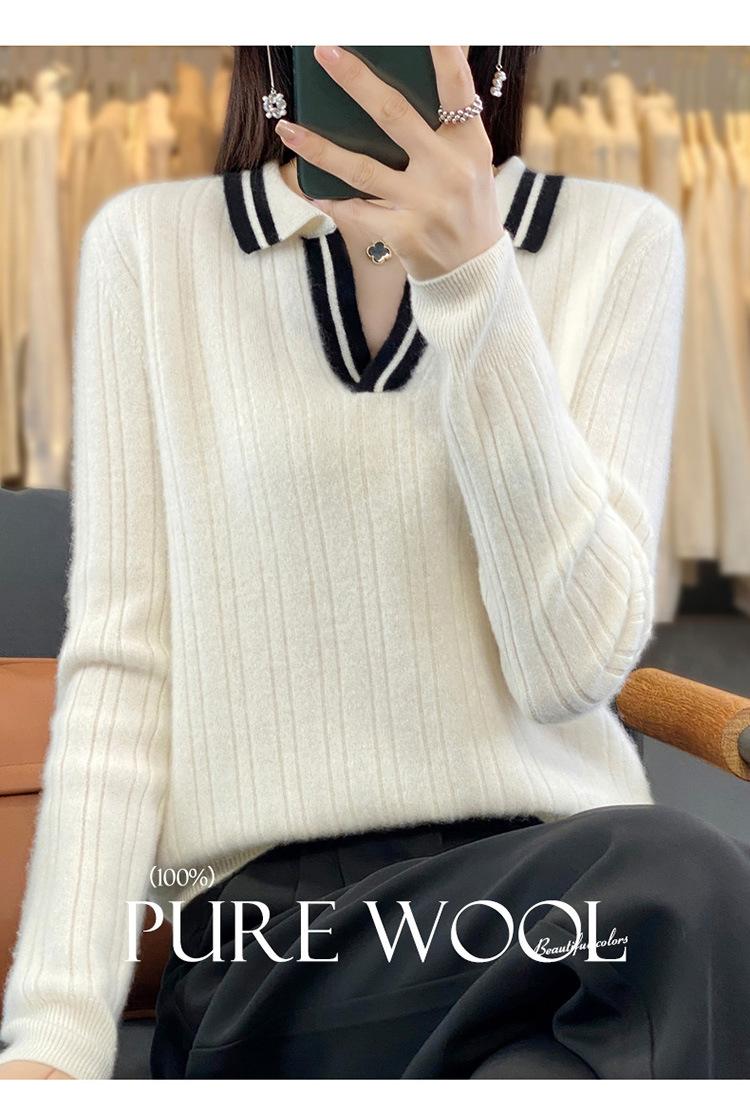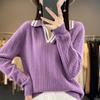 Suéter pulóver de punto de solapa estilo coreano a juego de colores simple, ajuste ceñido adelgazante para ir al trabajo, otoño e invierno, suéter de lana entera para exterior