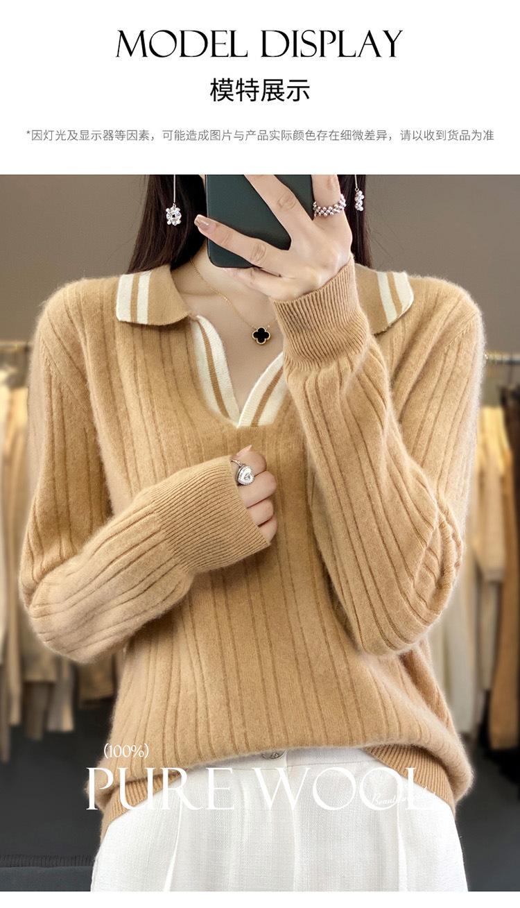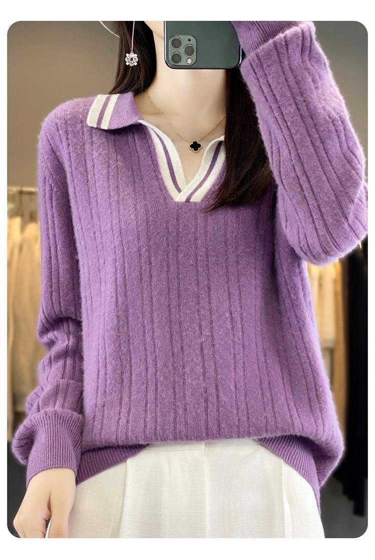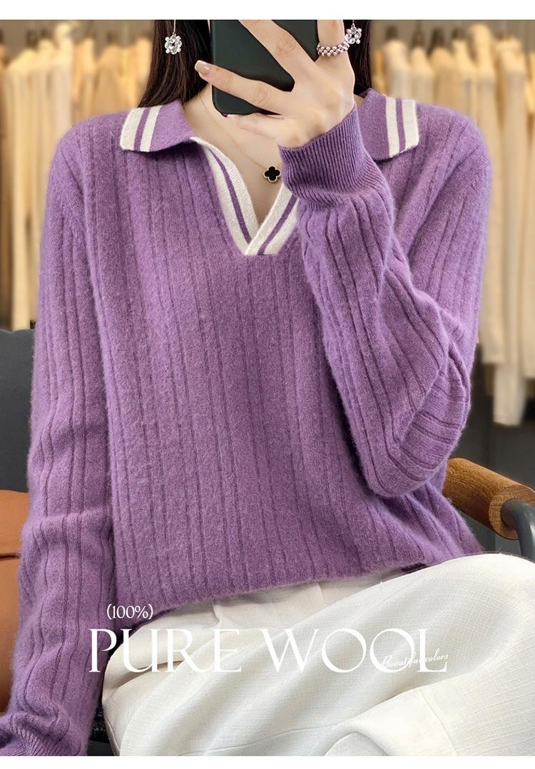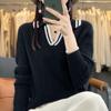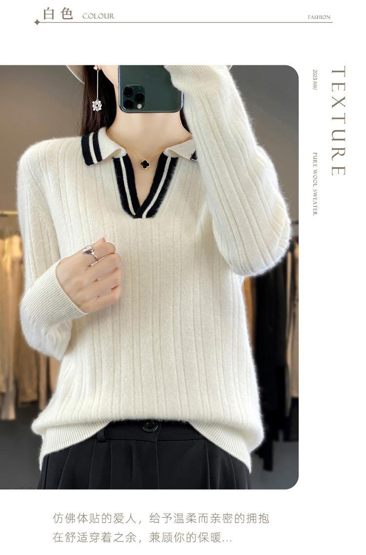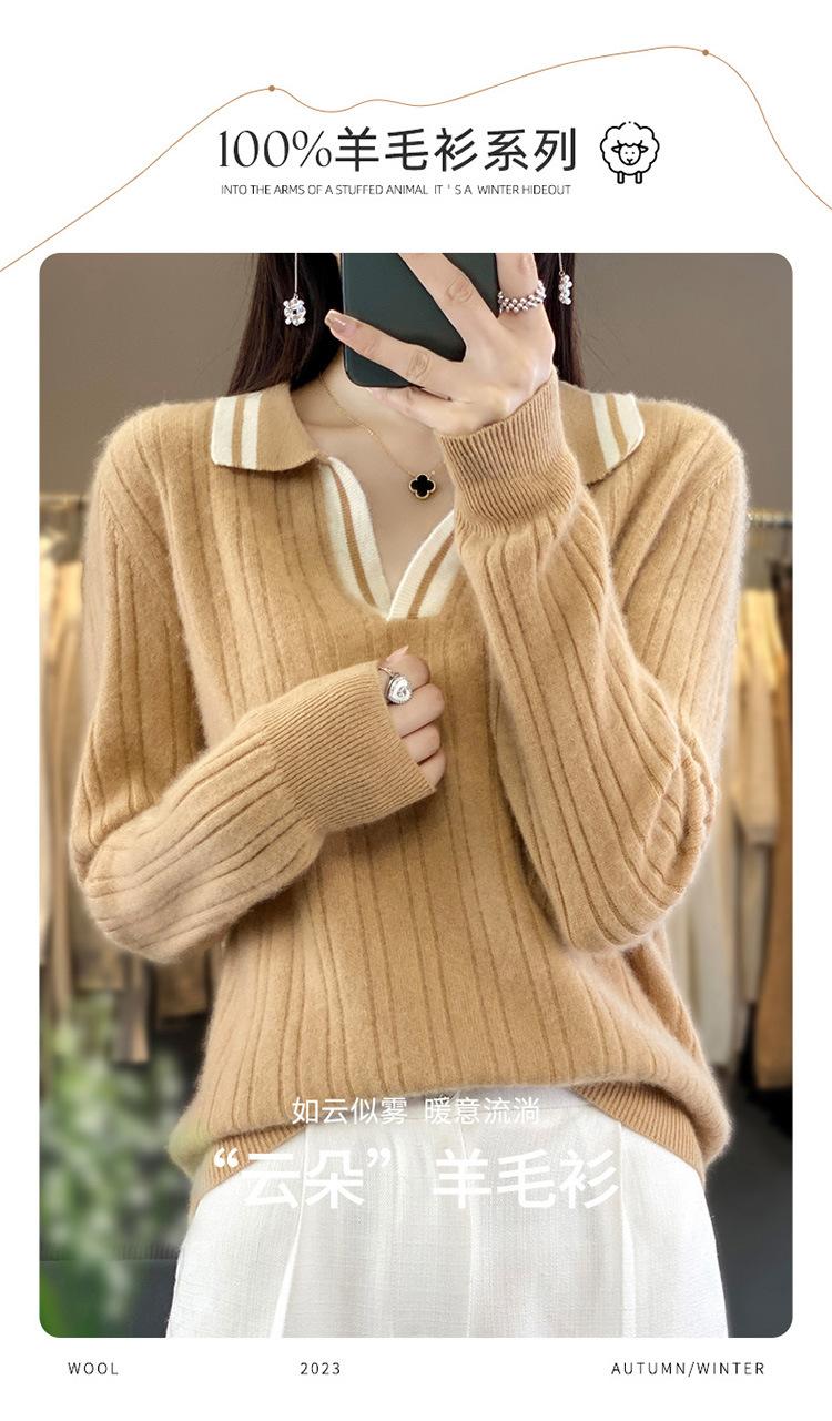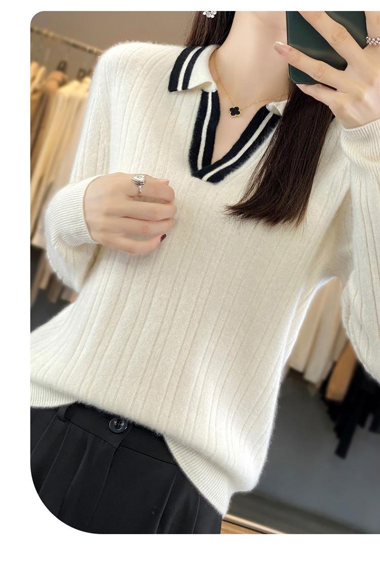 Suéter pulóver de punto de solapa estilo coreano a juego de colores simple, ajuste ceñido adelgazante para ir al trabajo, otoño e invierno, suéter de lana entera para exterior