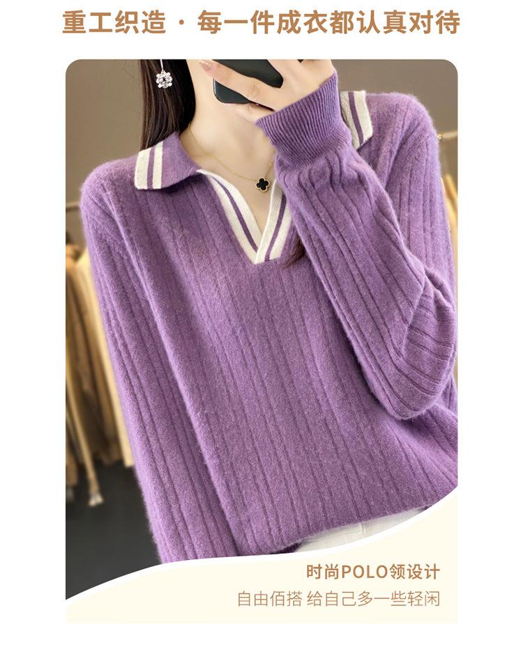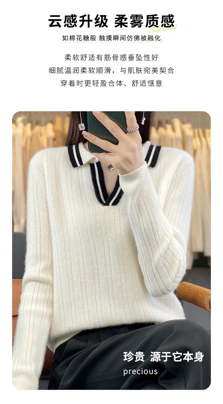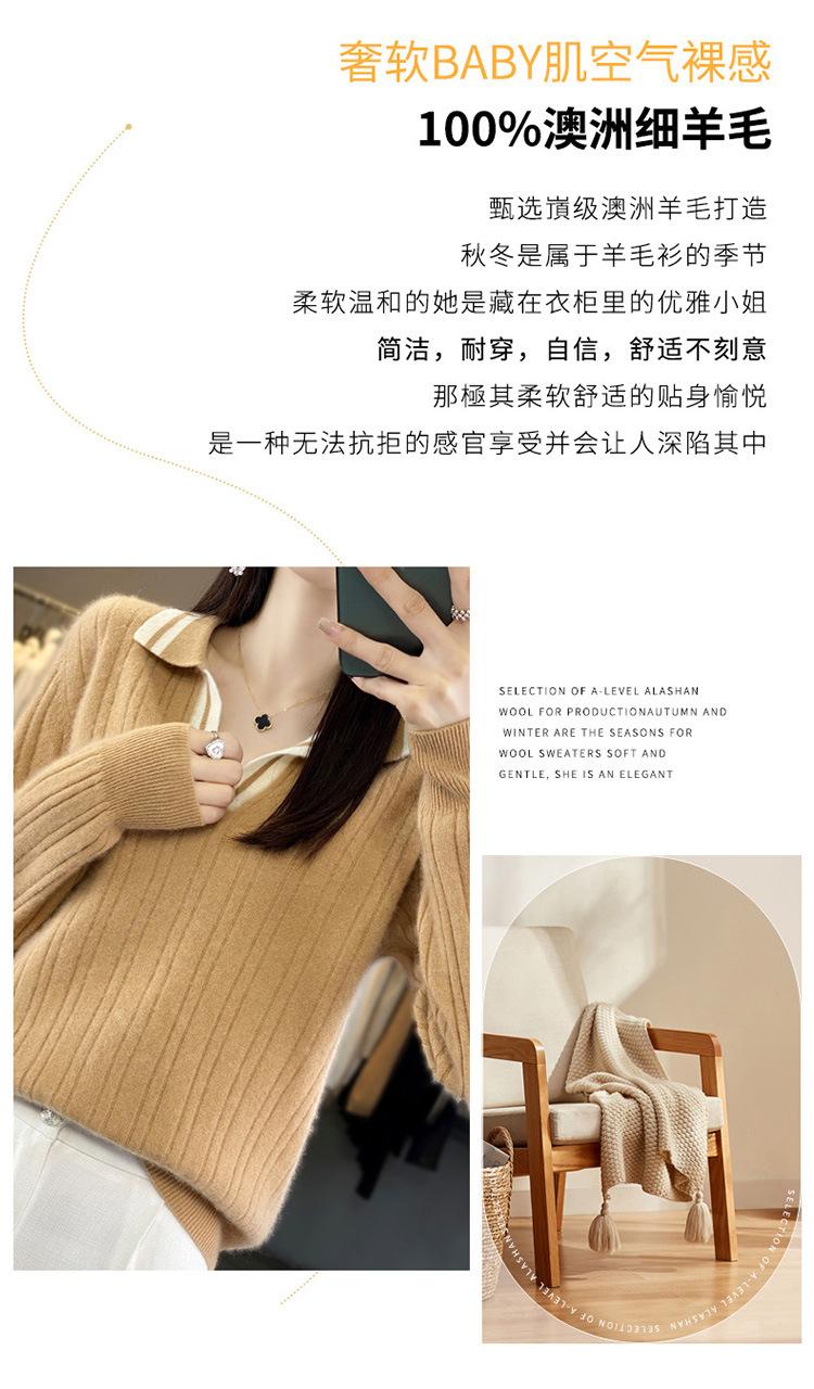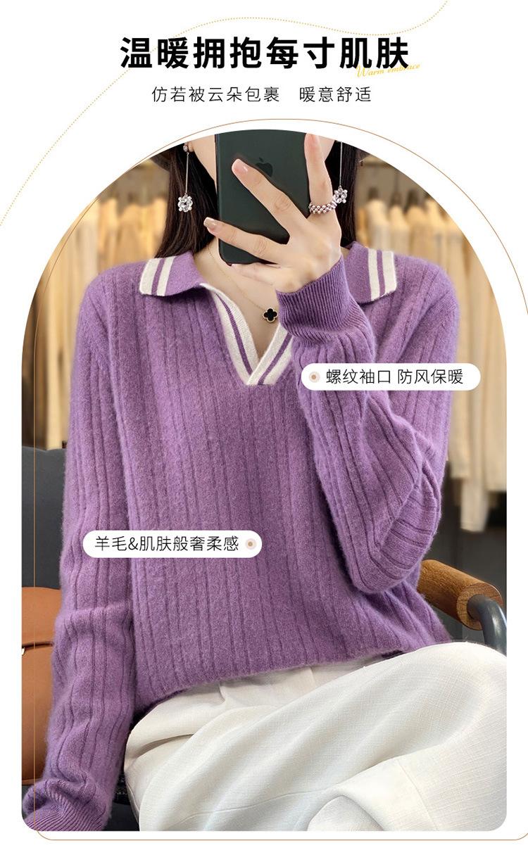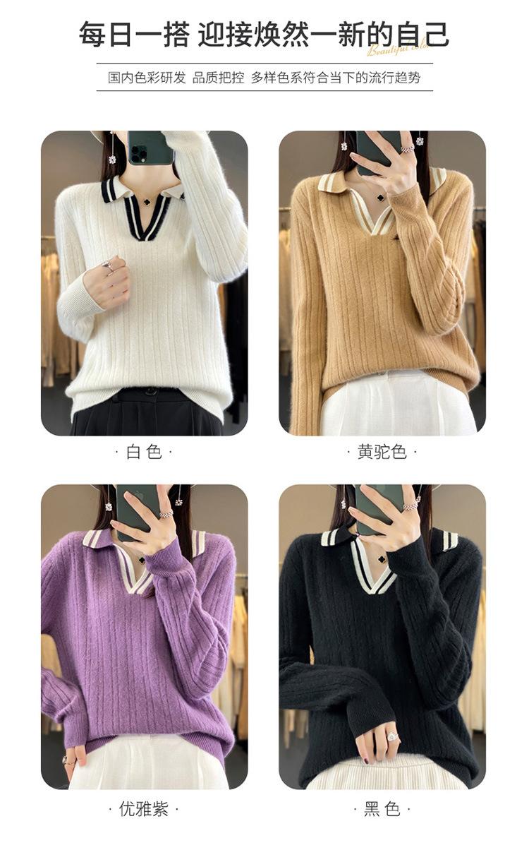 Suéter pulóver de punto de solapa estilo coreano a juego de colores simple, ajuste ceñido adelgazante para ir al trabajo, otoño e invierno, suéter de lana entera para exterior