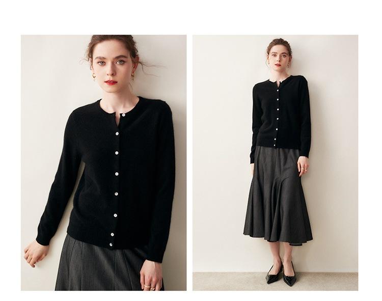 Otoño e invierno cálido nuevo regular color sólido cachemira cuello redondo cárdigan abrigo suéter exterior para mujer prendas de punto holgadas ropa exterior