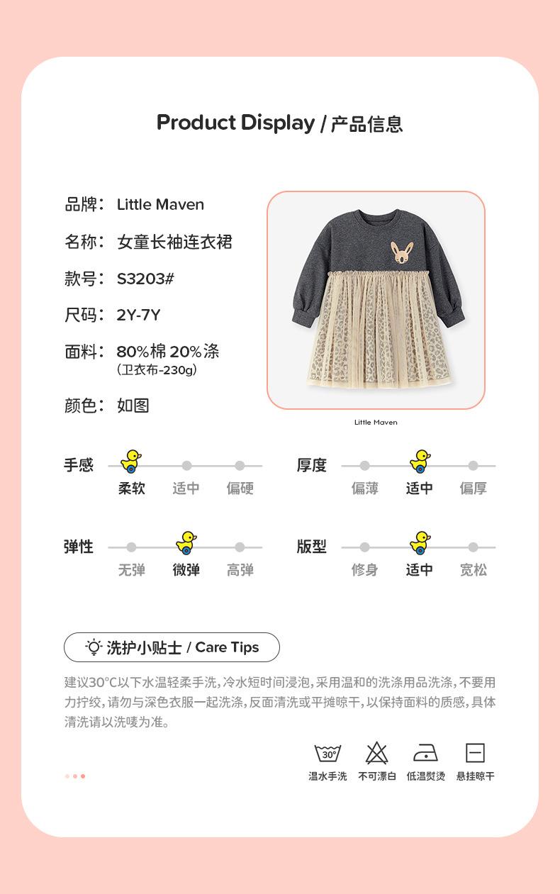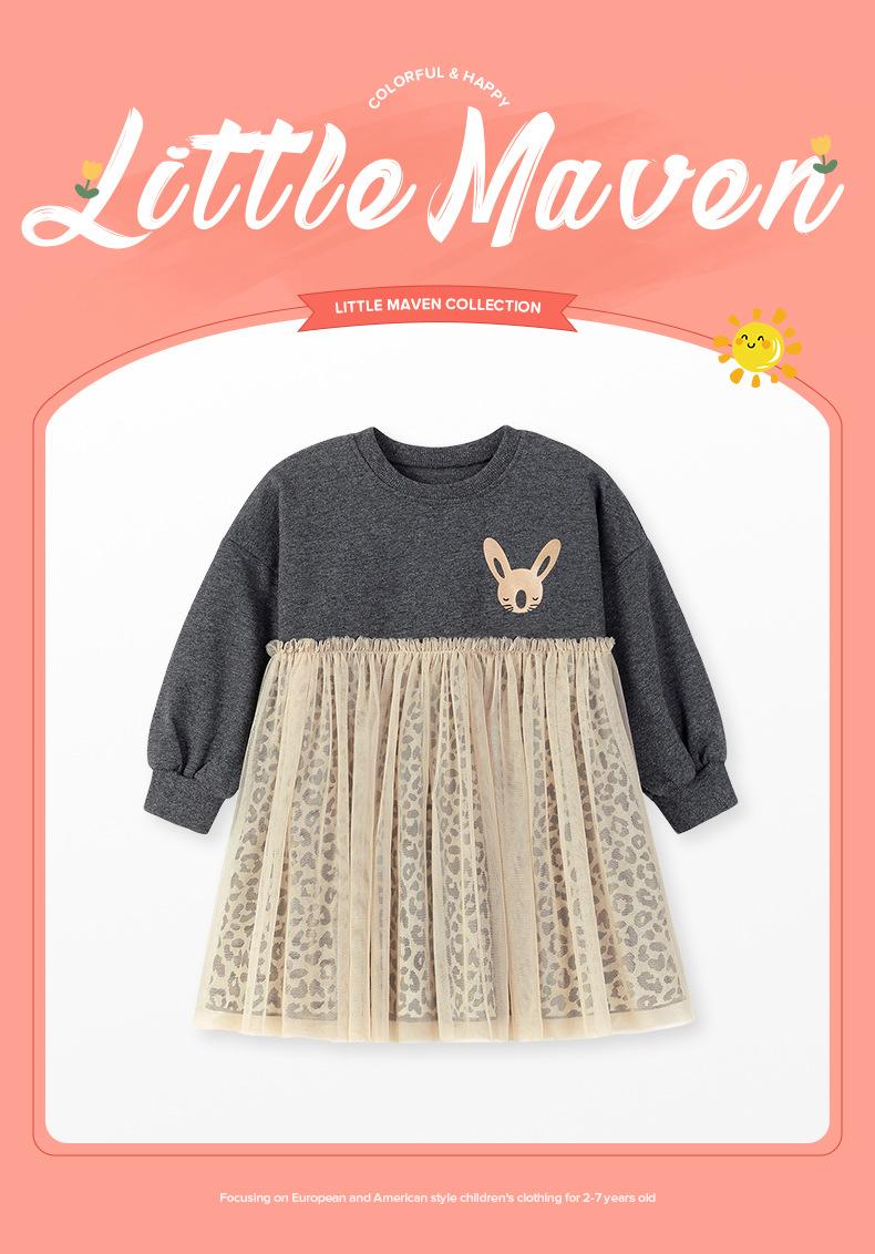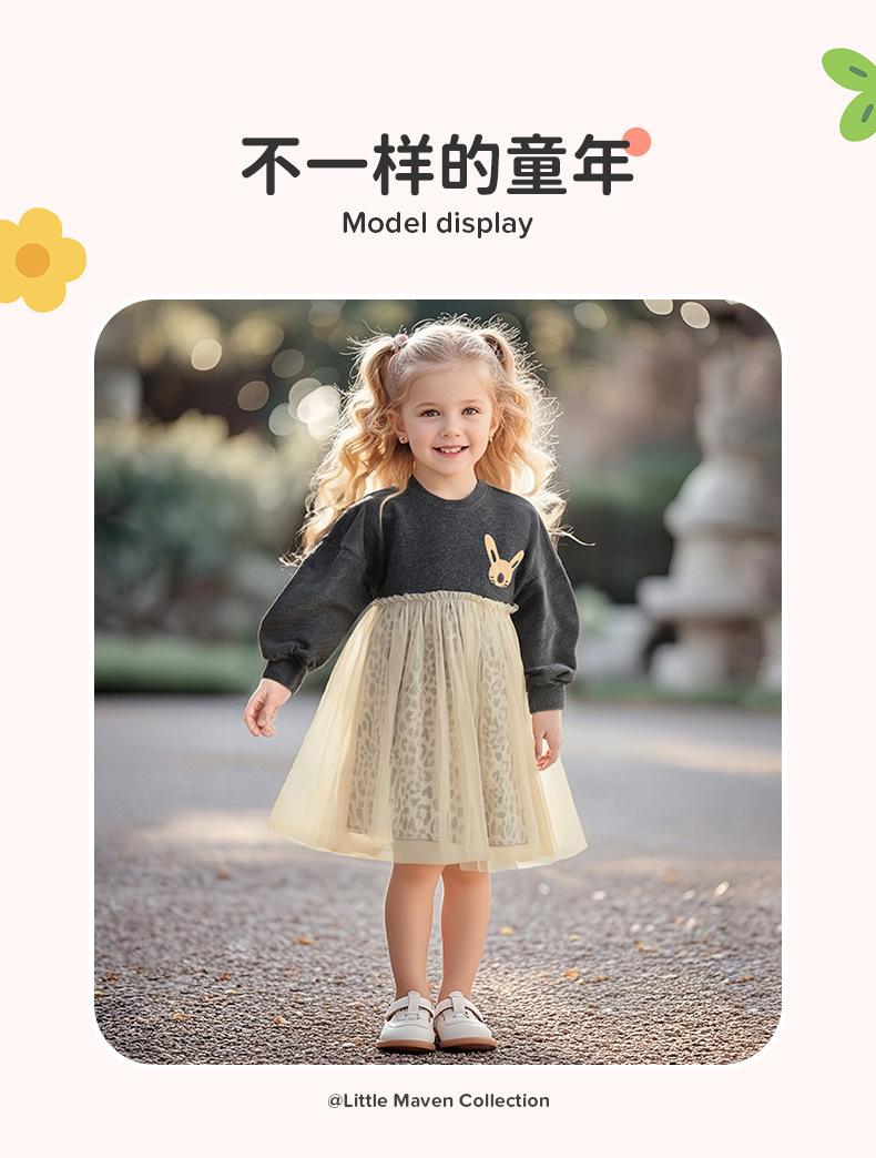 Little maven Vestido de Niña Estilo Europeo y Americano Transfronterizo Otoño Vestido de Malla para Niños Lindo Vestido de Bebé