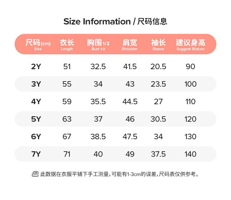 2Y(90cm), 3Y(100cm), 4Y(110cm), 5Y(120cm), 6Y(130cm), 7Y(140cm)
