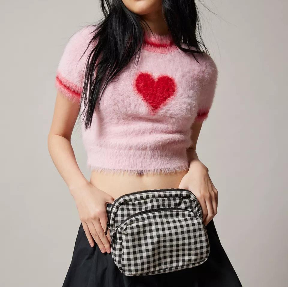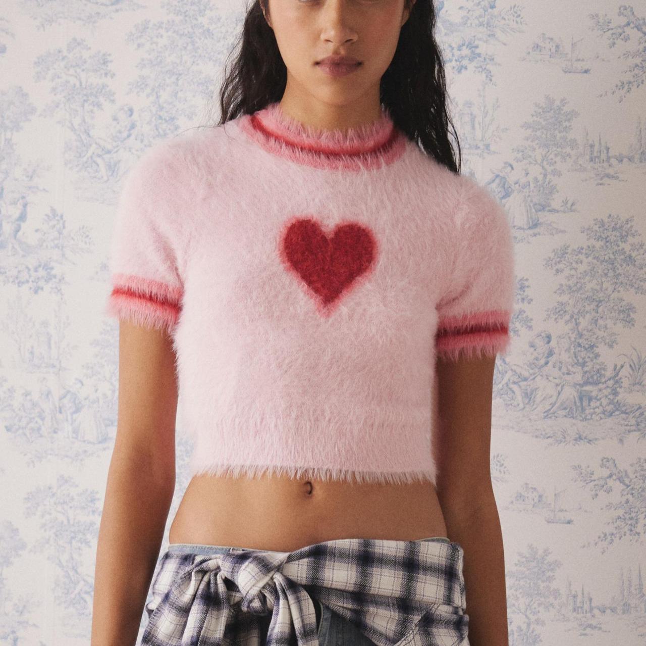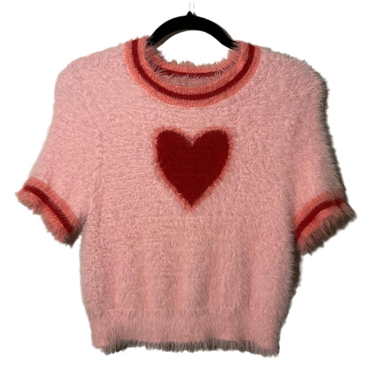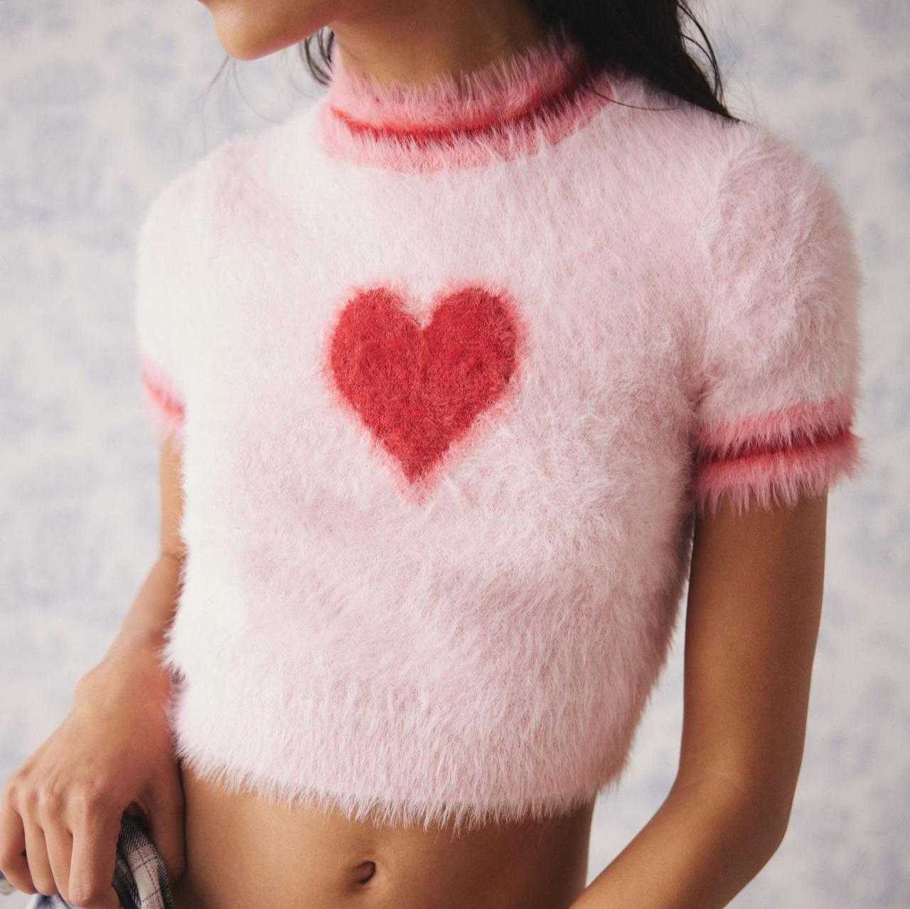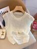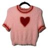 Verano 2025 Nueva Moda Americana Ropa de Mujer Dulce Cuello Redondo Ropa de Mujer Suéter Tejido Corto con Corazón Camiseta