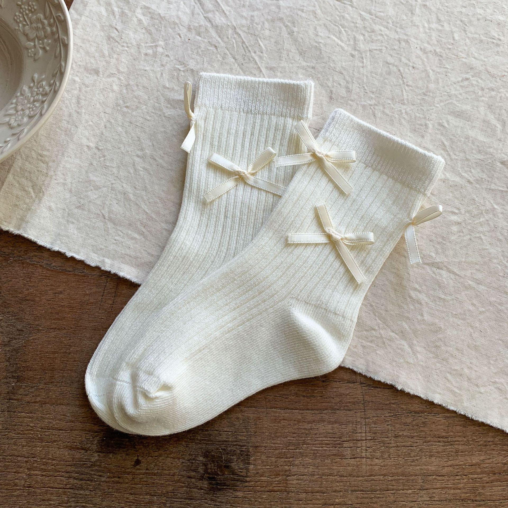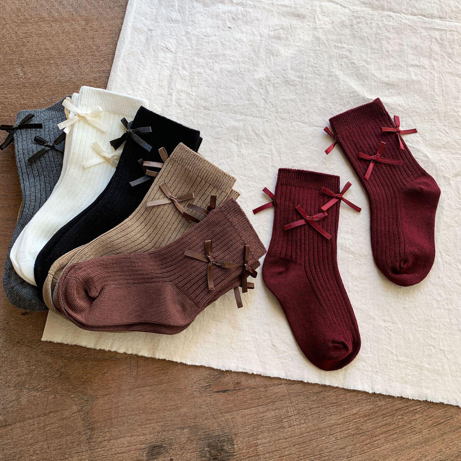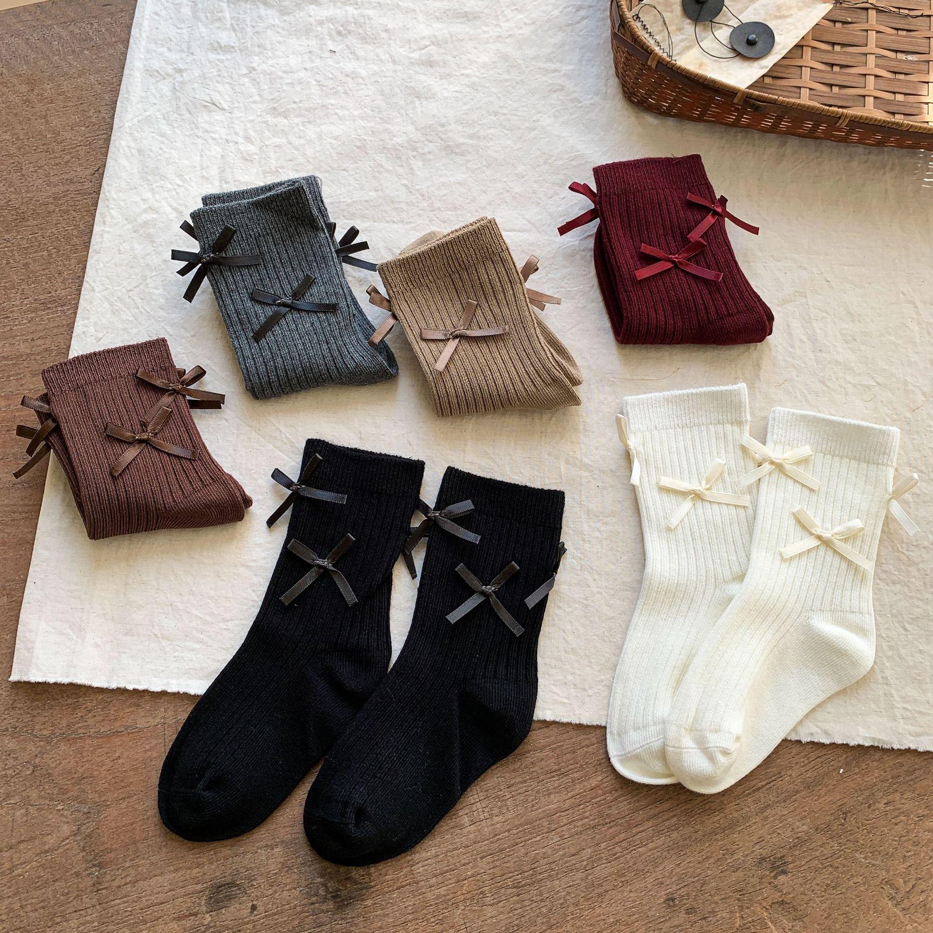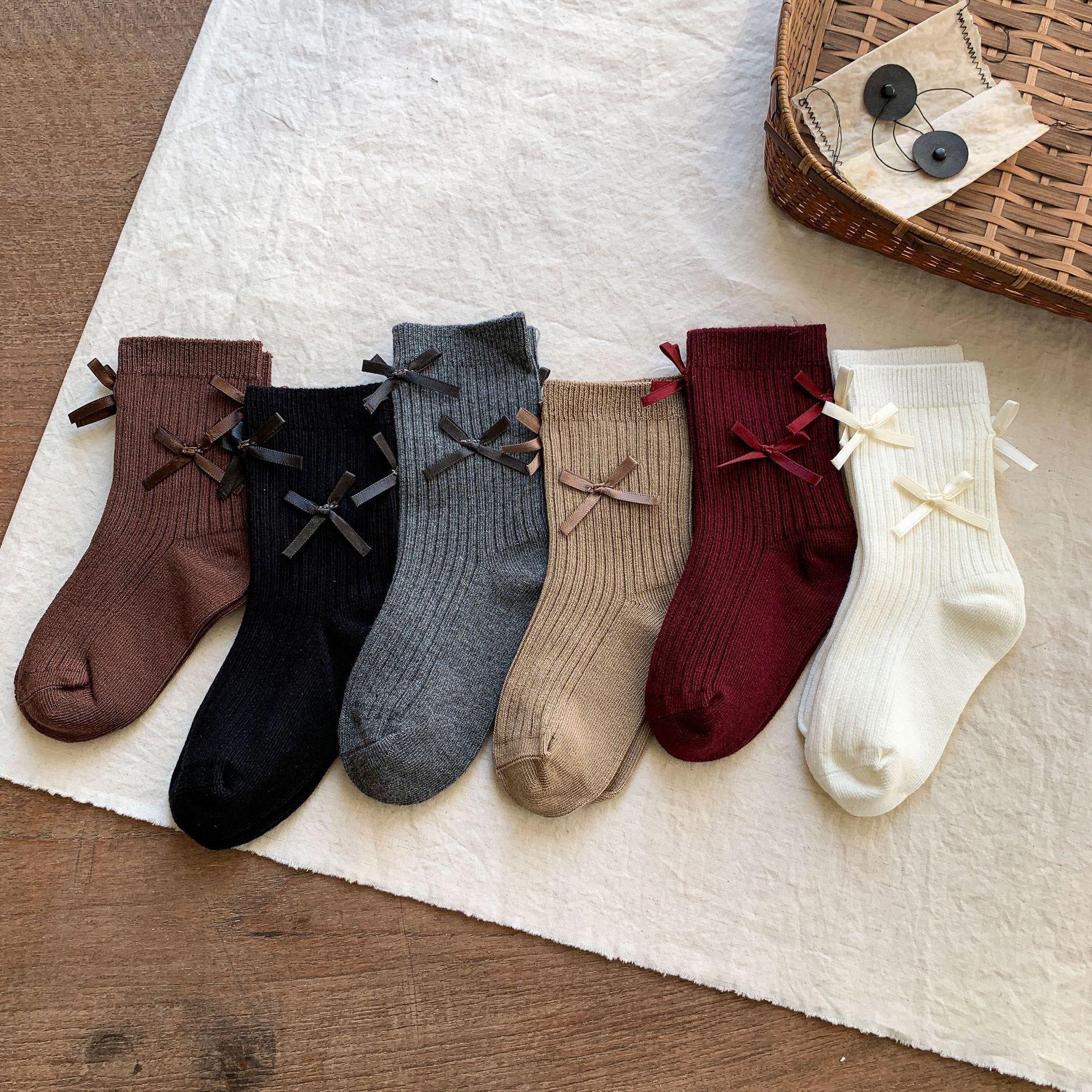 Ropa para Niños Vimwood Calcetines para Niñas Otoño 2025 Nuevos Calcetines Lindos de Color Sólido con Lazo hasta la Media Pantorrilla Calcetines de Algodón para Bebé