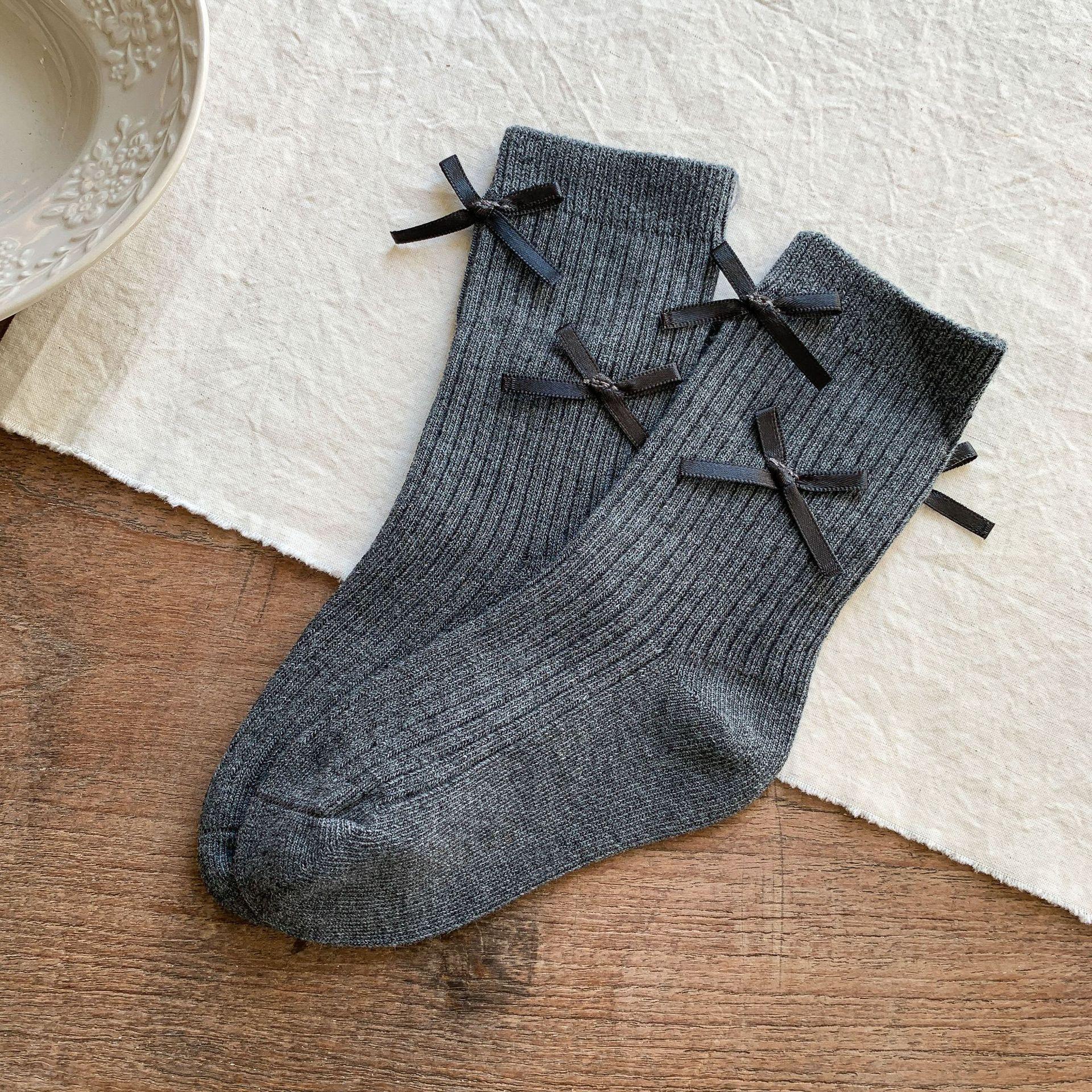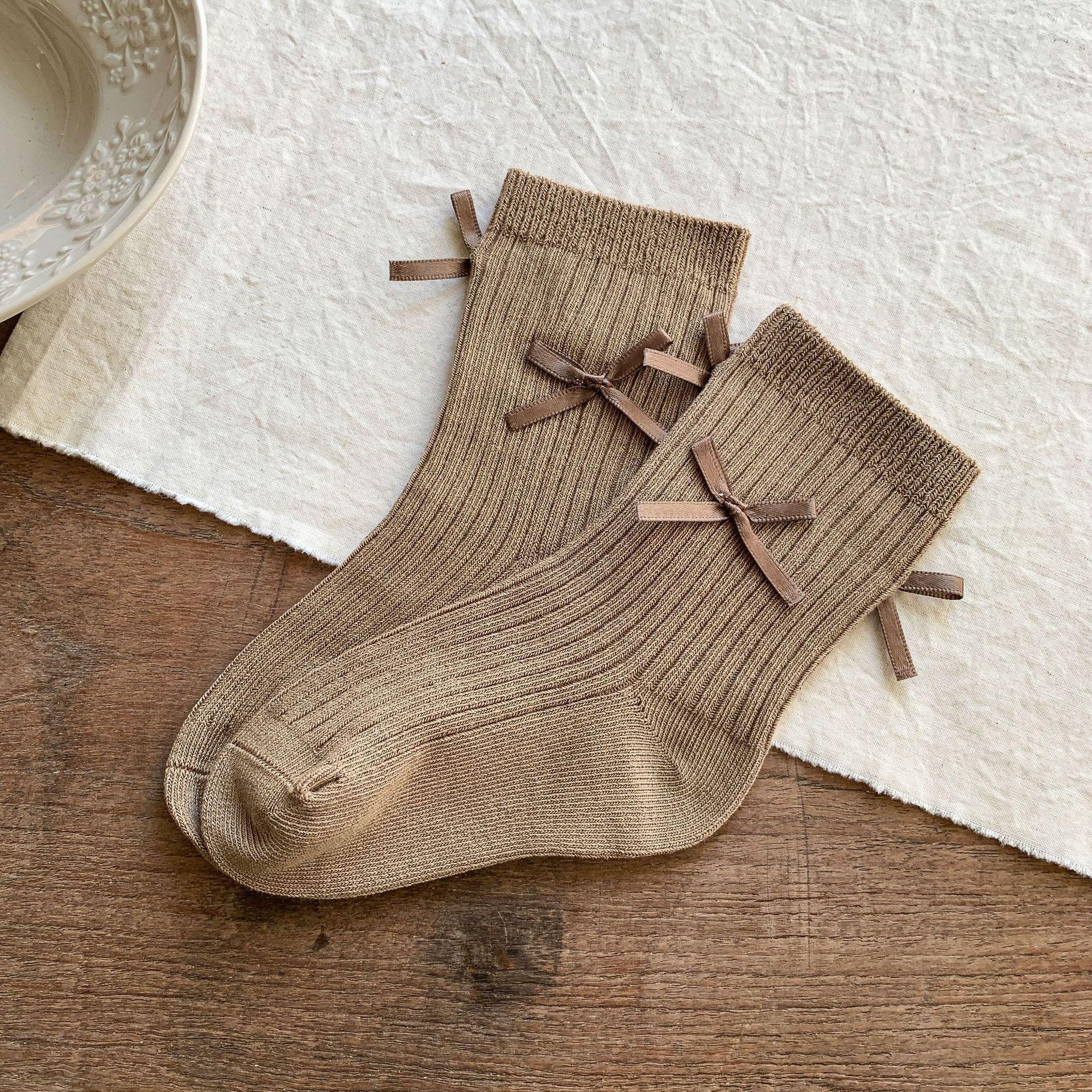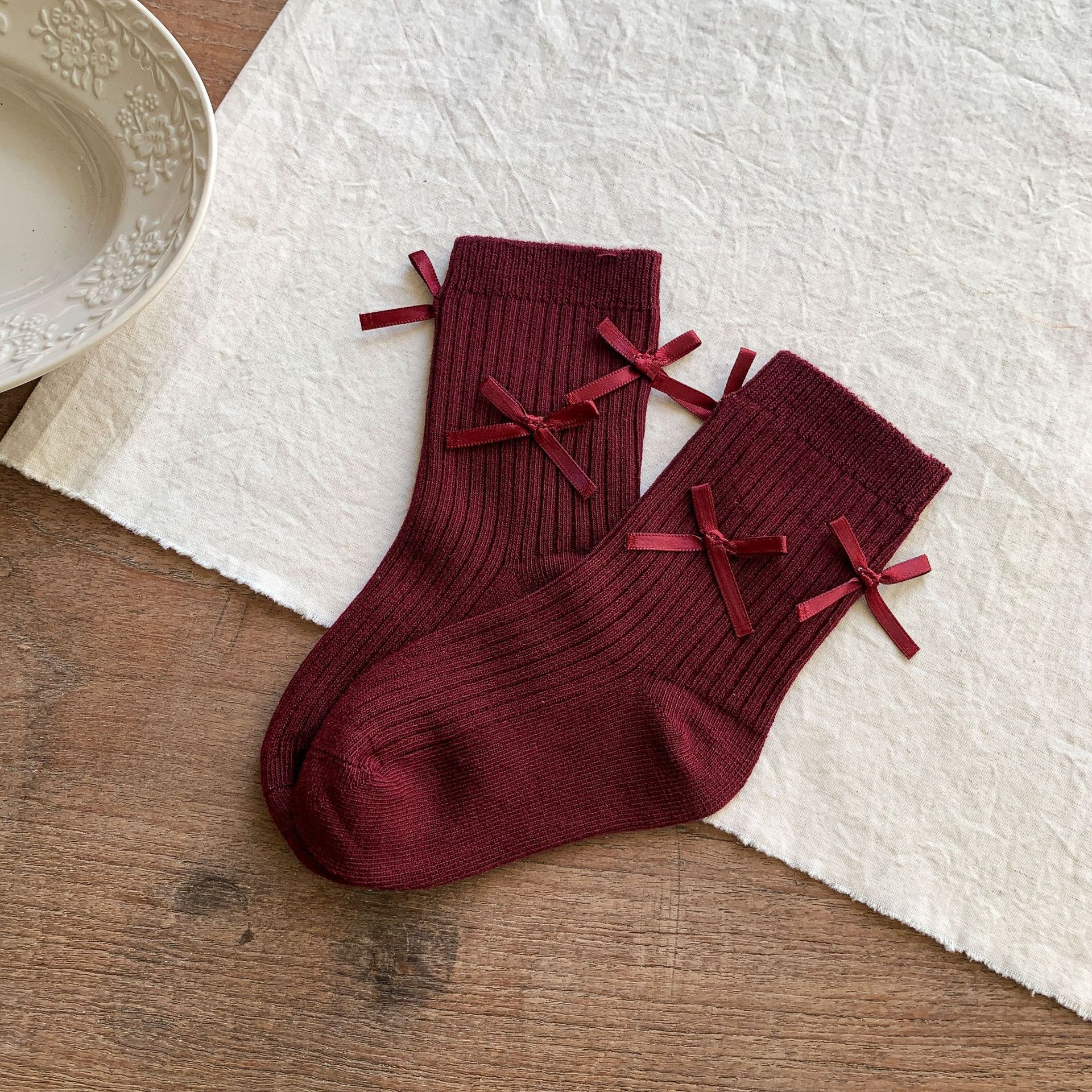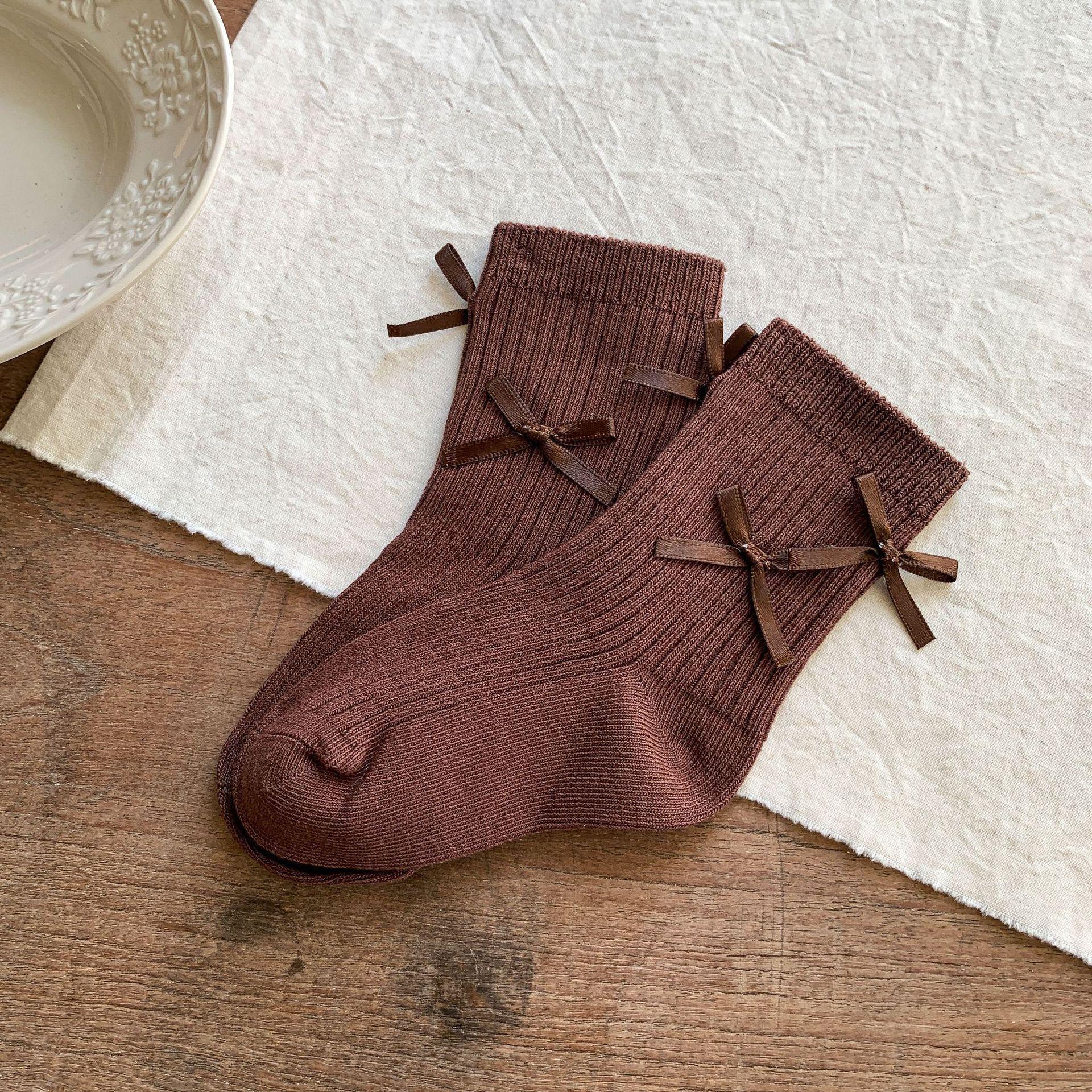Ropa para Niños Vimwood Calcetines para Niñas Otoño 2025 Nuevos Calcetines Lindos de Color Sólido con Lazo hasta la Media Pantorrilla Calcetines de Algodón para Bebé