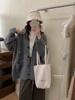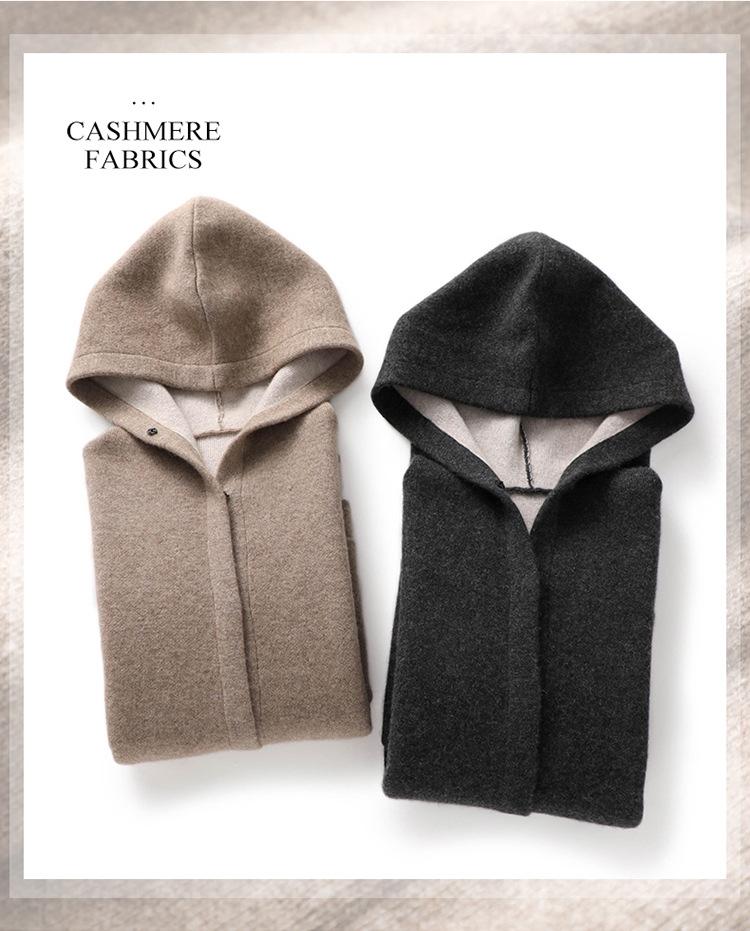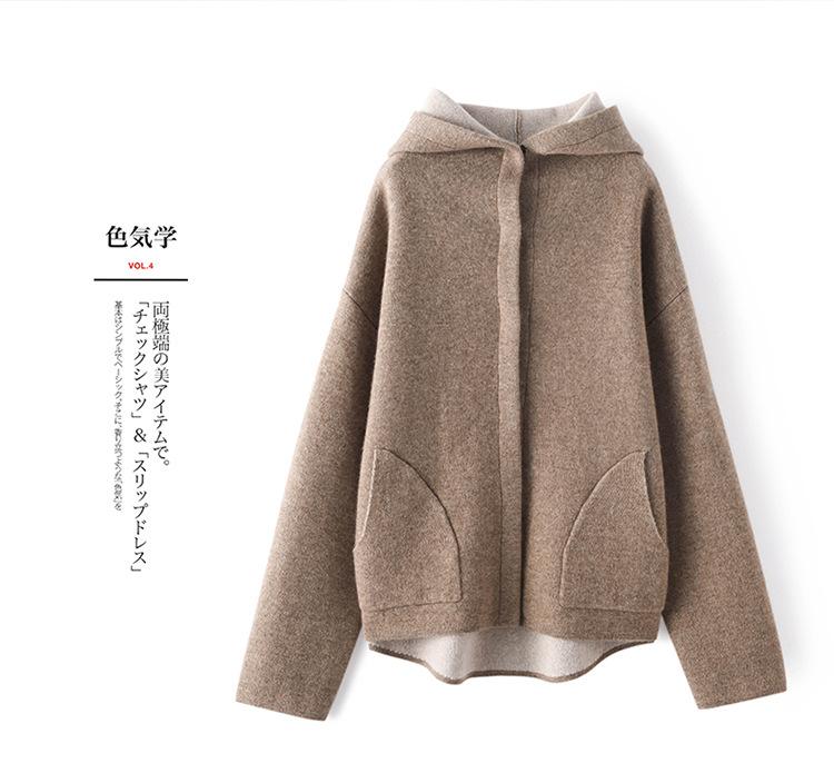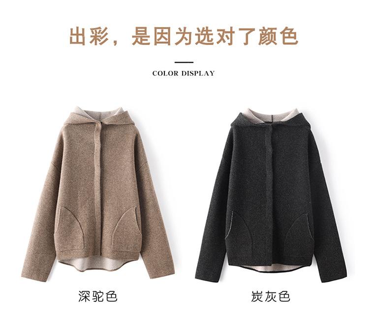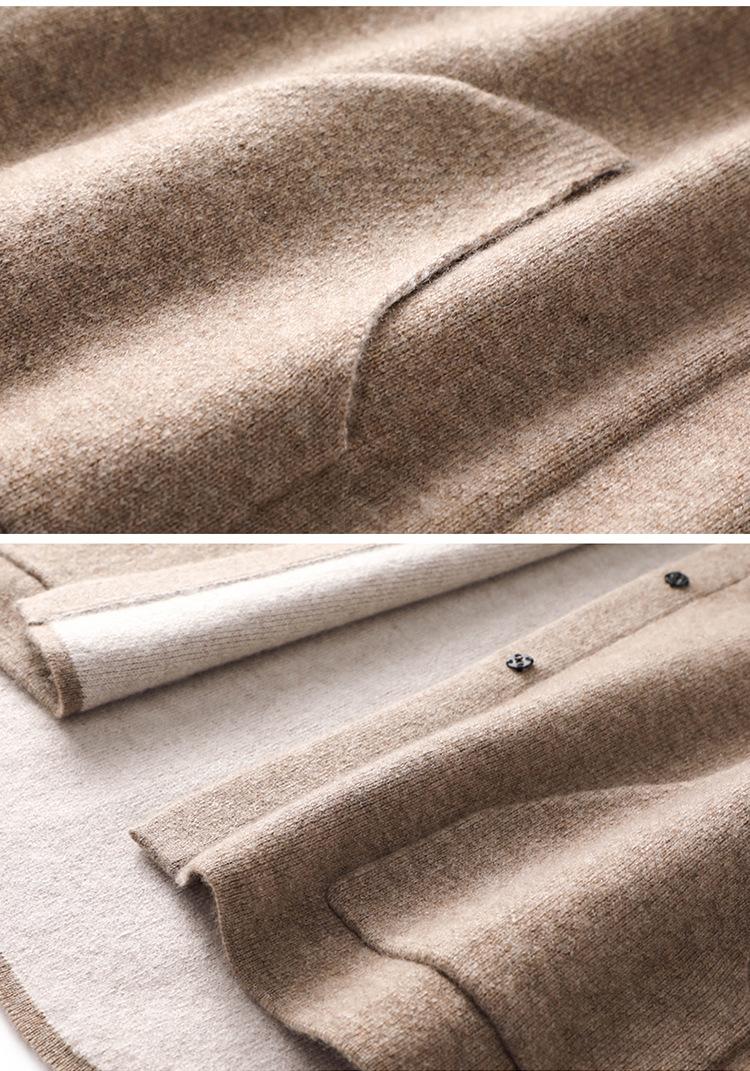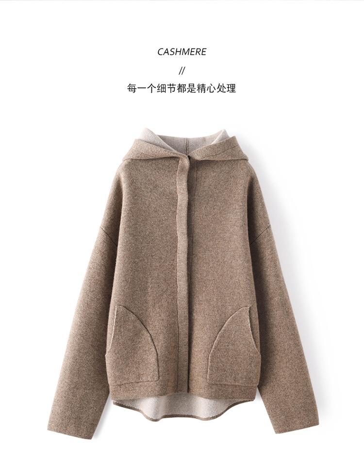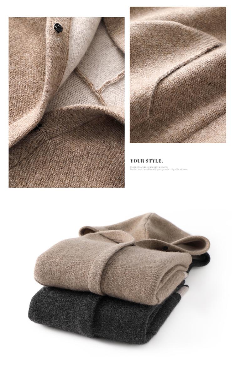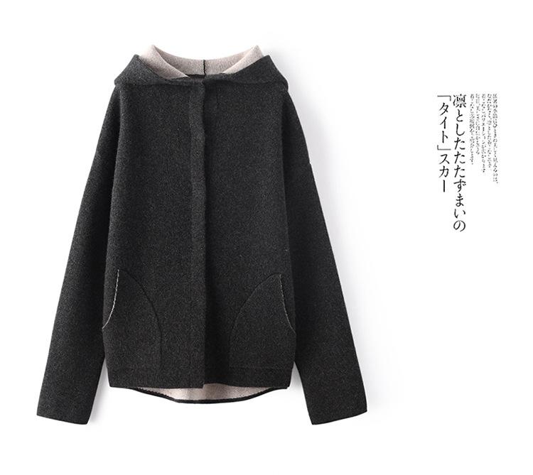 Abrigo retro simple de color contrastante con capucha de longitud media suelto casual otoño e invierno Nuevo cárdigan de punto de cachemira para mujer
