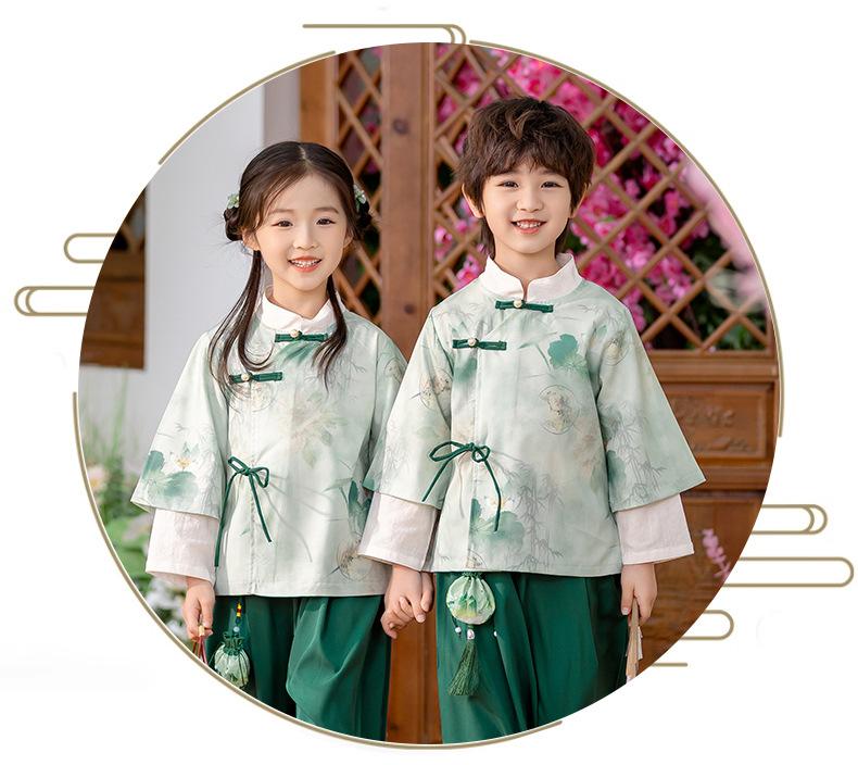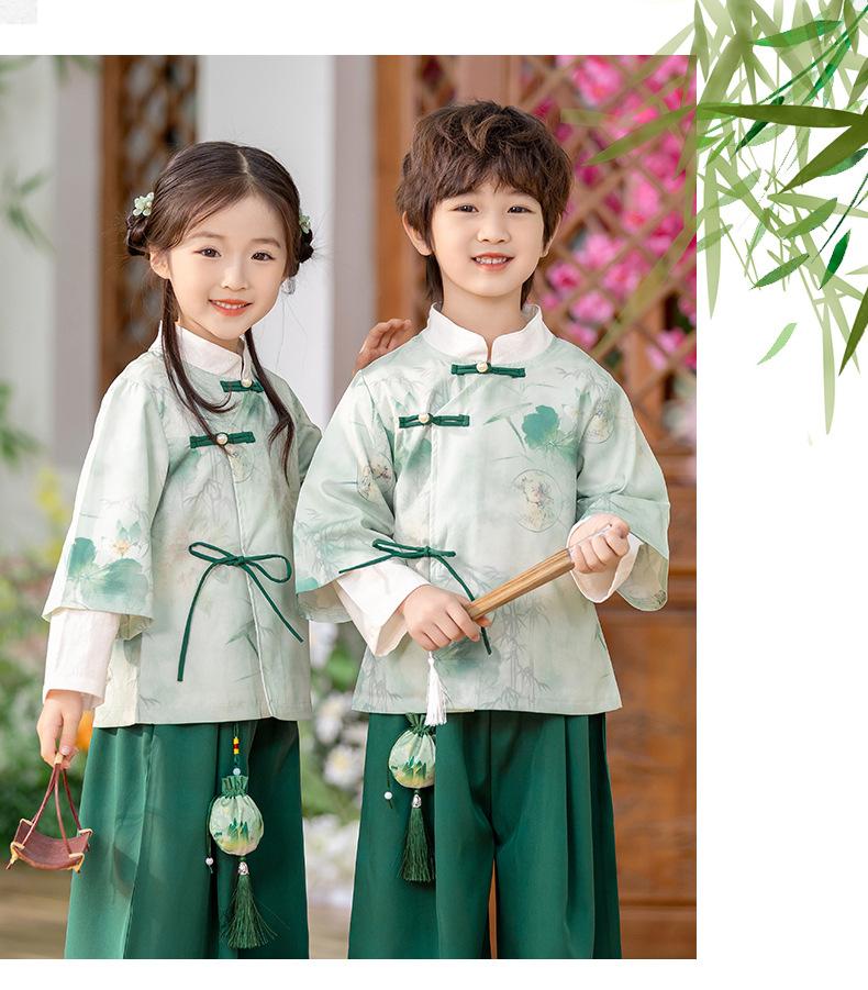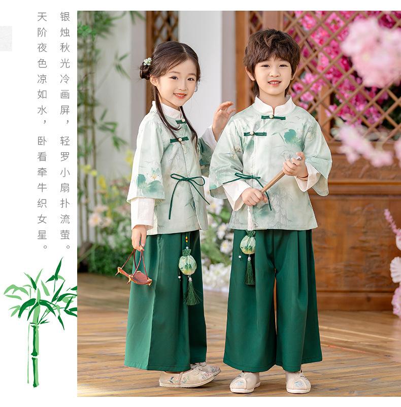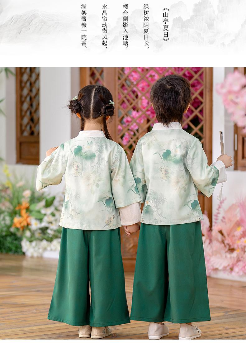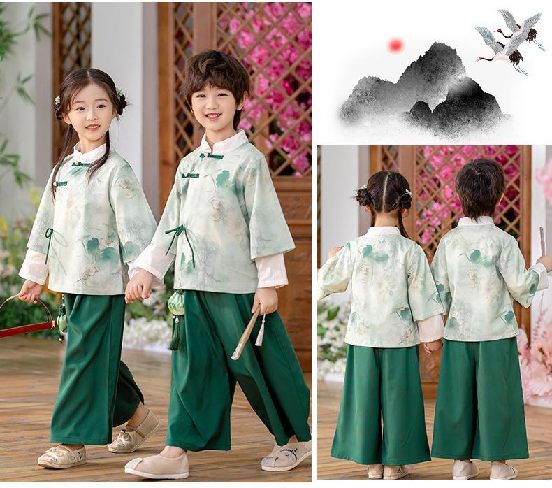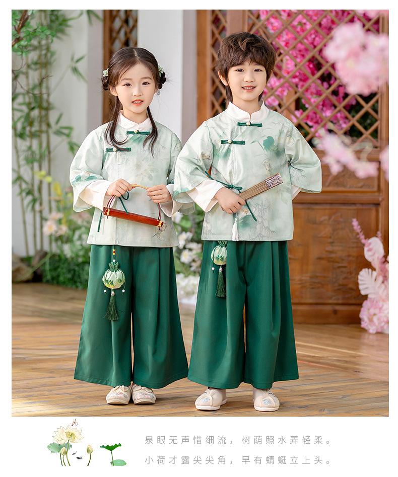 Traje Hanfu de estilo antiguo de loto de montaña de primavera para niños y niñas, disfraz de actuación de jardín de infantes, traje Tang de estilo nacional, disfraz de actuación de recitación de poesía