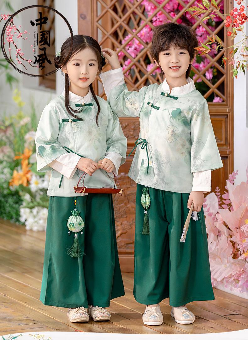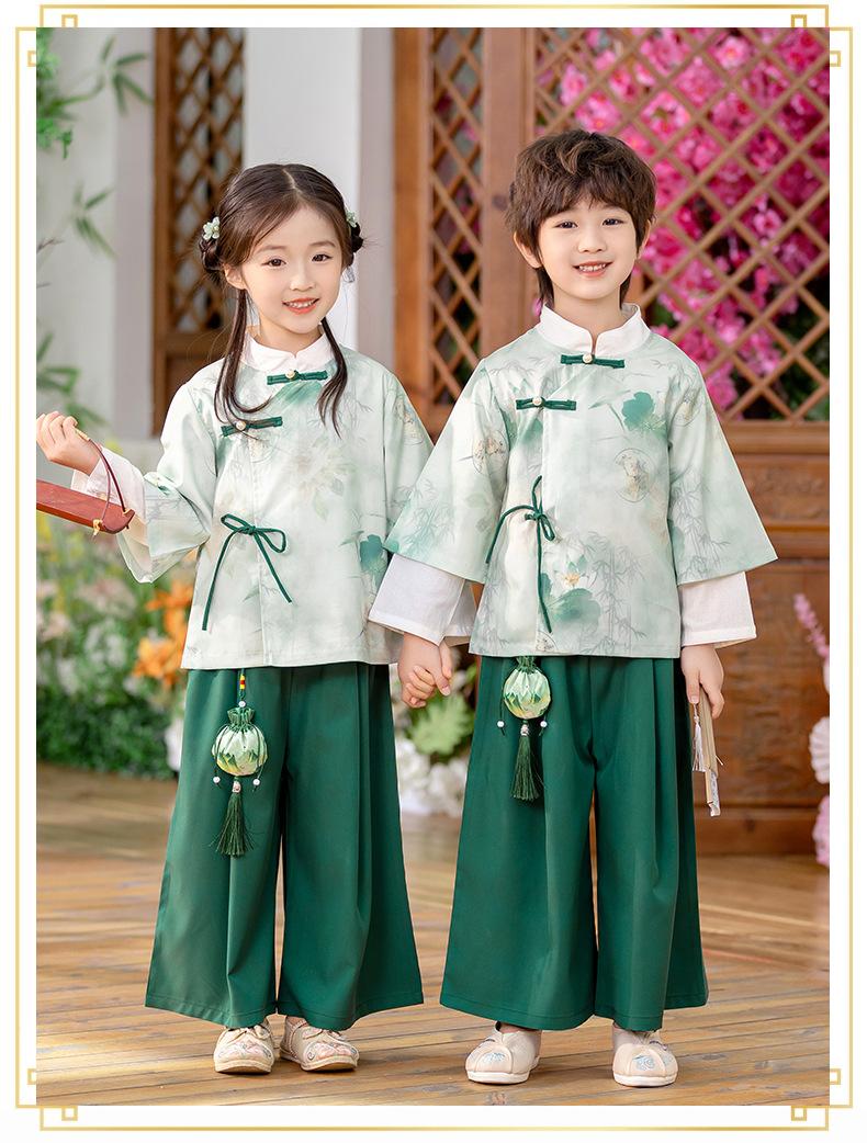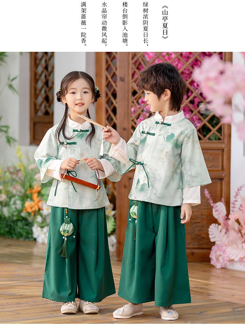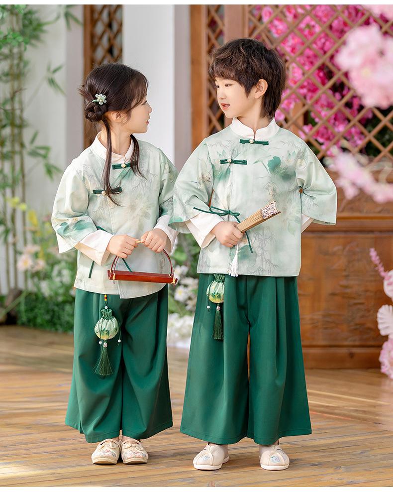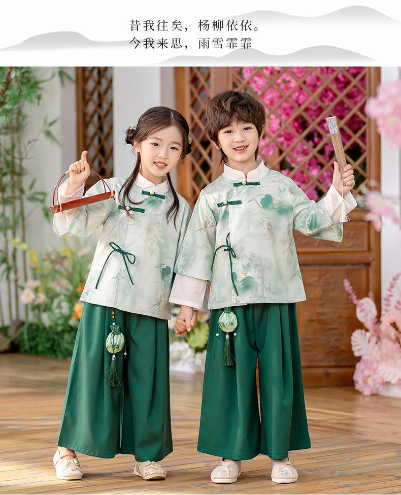 Traje Hanfu de estilo antiguo de loto de montaña de primavera para niños y niñas, disfraz de actuación de jardín de infantes, traje Tang de estilo nacional, disfraz de actuación de recitación de poesía
