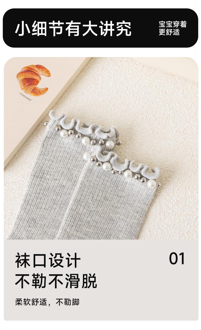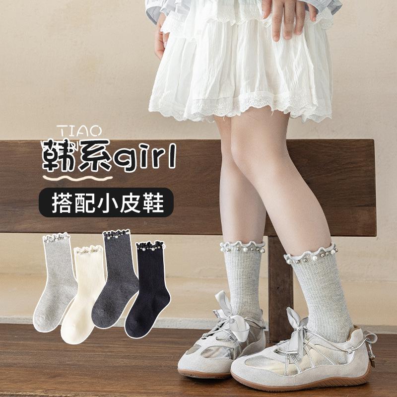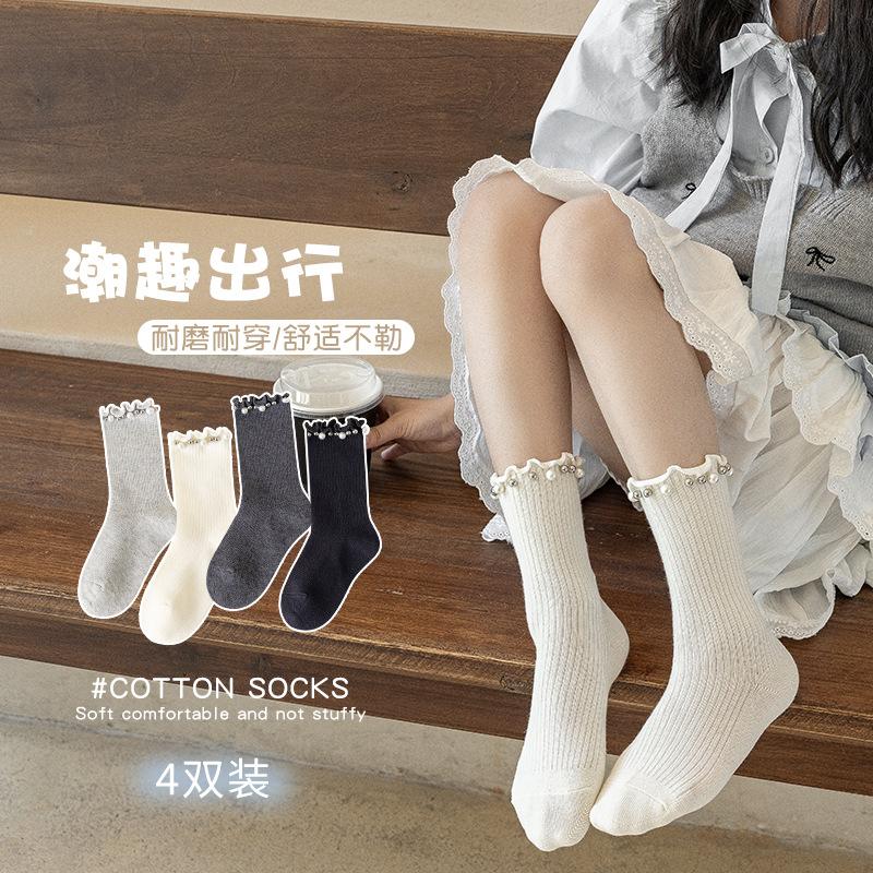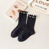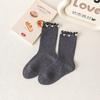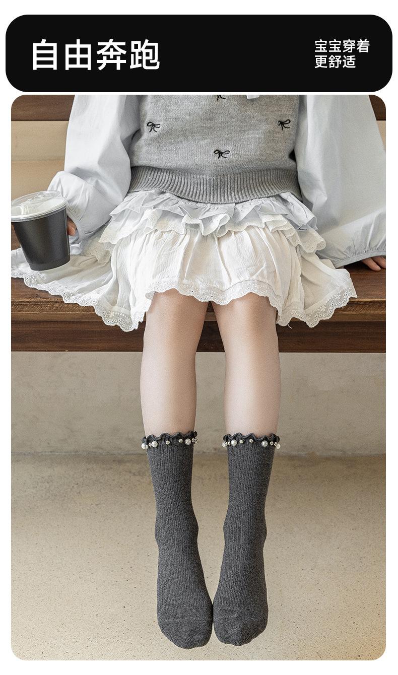 Calcetines de Perlas para Niñas Estilo Coreano con Borde de Volantes Calcetines hasta la Pantorrilla Princesa Algodón Negro Blanco Gris Color Sólido Calcetines con Adornos Calcetines para Niñas al Mayoreo