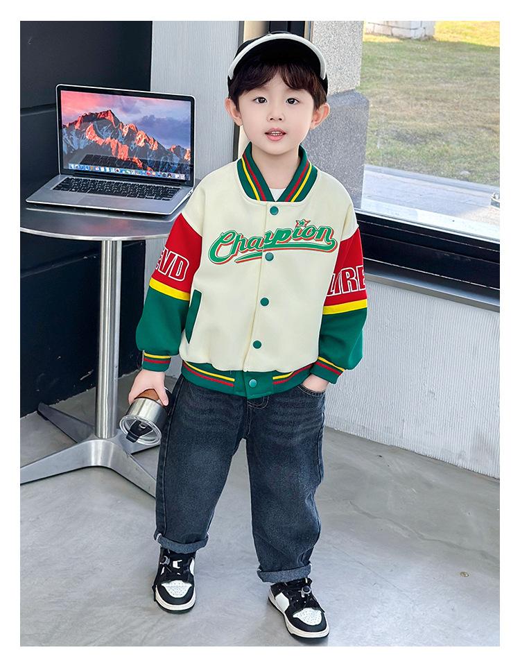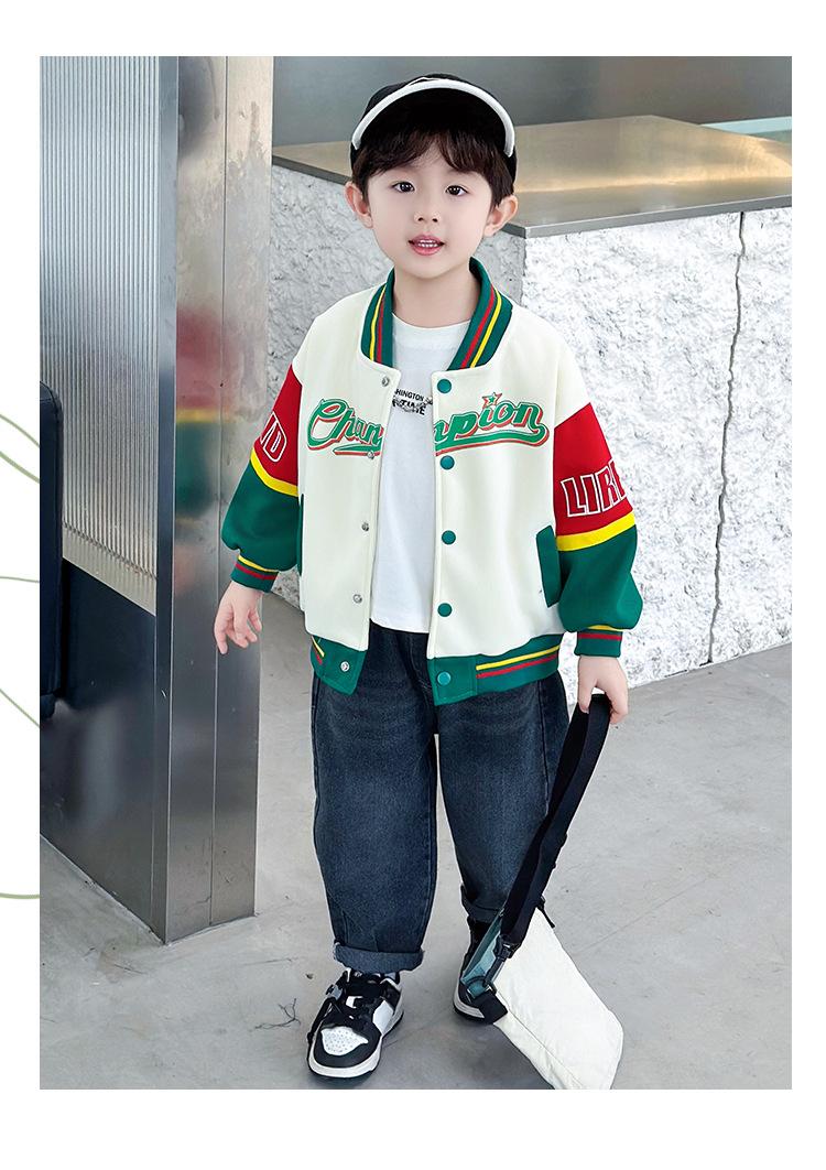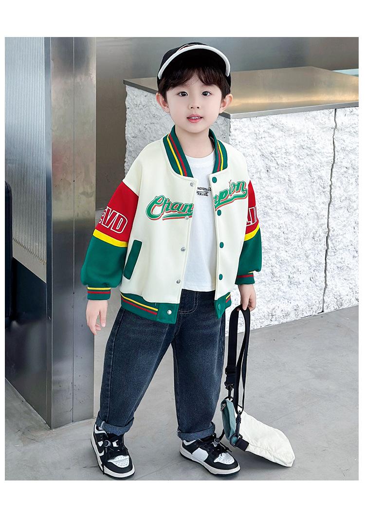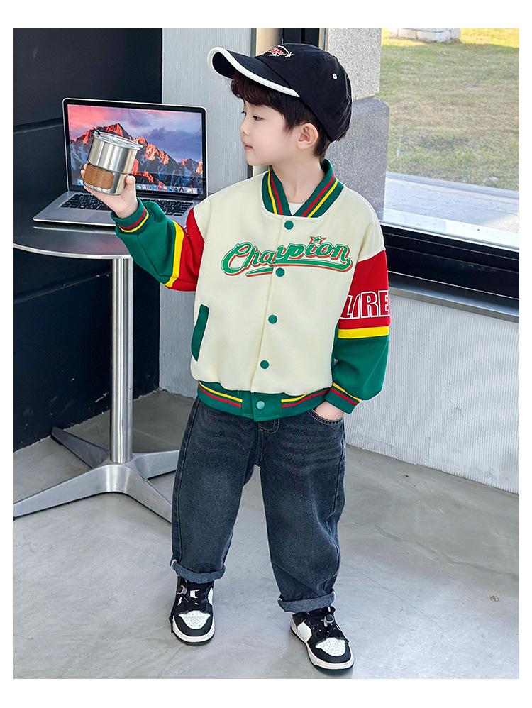 Ropa de Otoño para Niños Chaqueta de Béisbol con Letras Primavera y Otoño Estilo Coreano Ropa Exterior Fresca y Elegante para Niños Medianos y Pequeños Top de Moda Marea