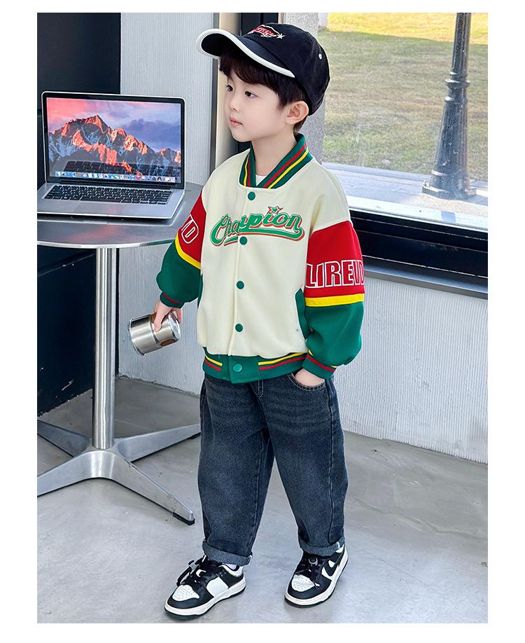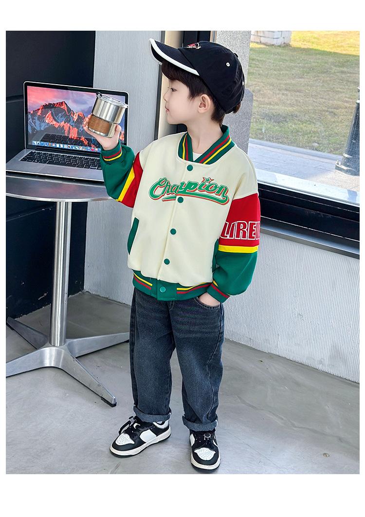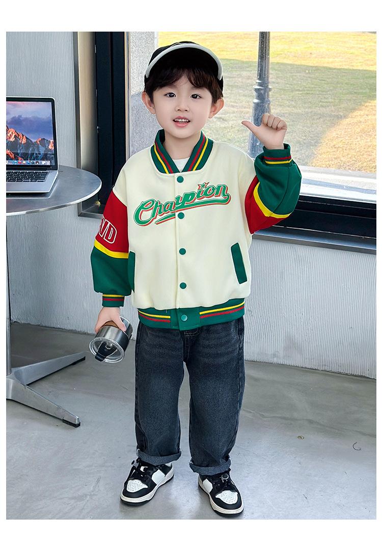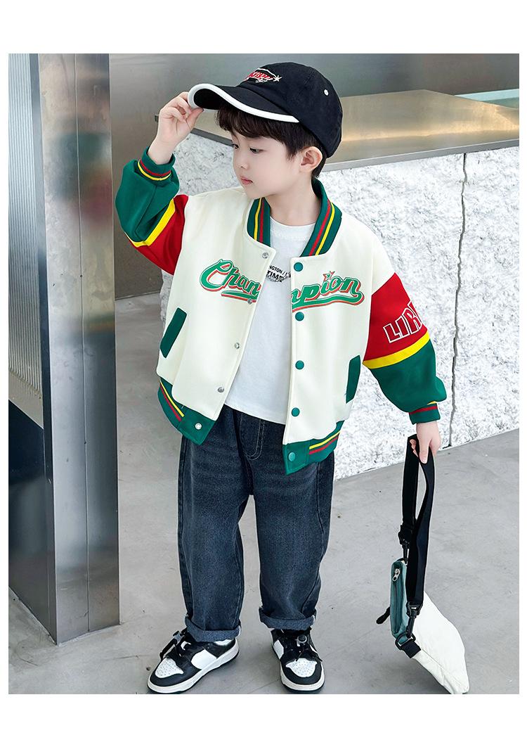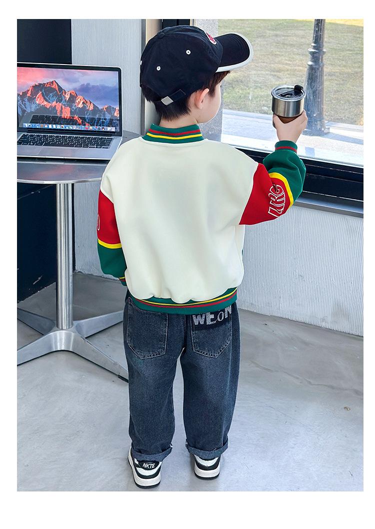 Ropa de Otoño para Niños Chaqueta de Béisbol con Letras Primavera y Otoño Estilo Coreano Ropa Exterior Fresca y Elegante para Niños Medianos y Pequeños Top de Moda Marea