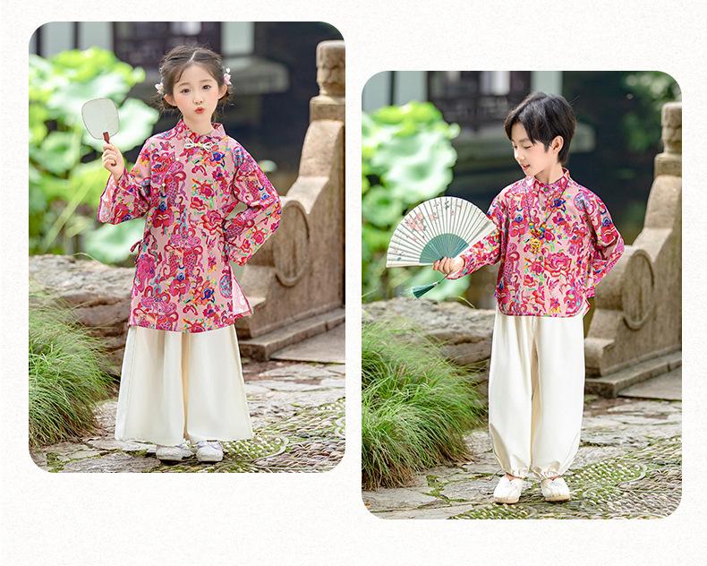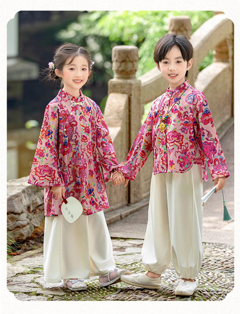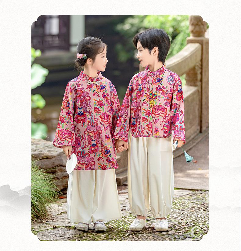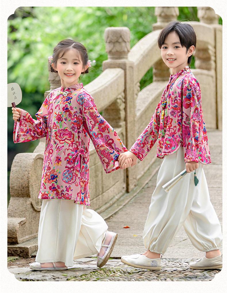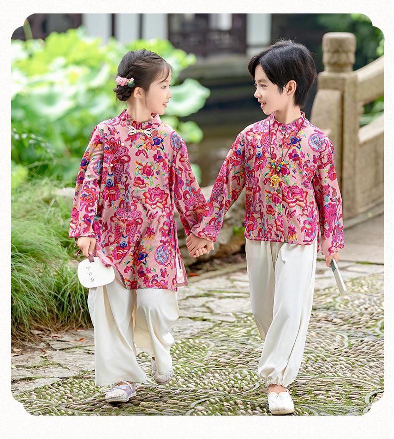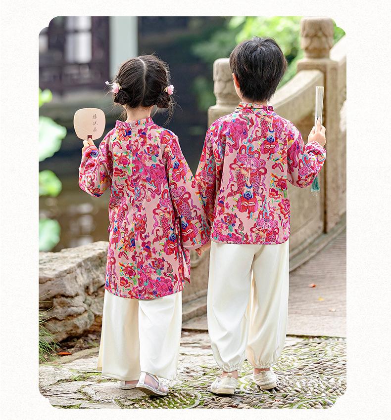 Hanfu para Niños y Niñas Otoño Estilo Chino Nuevo Conjunto Chino Disfraz Traje Tang para Niños de Jardín de Niños Disfraz de Actuación Guoxue