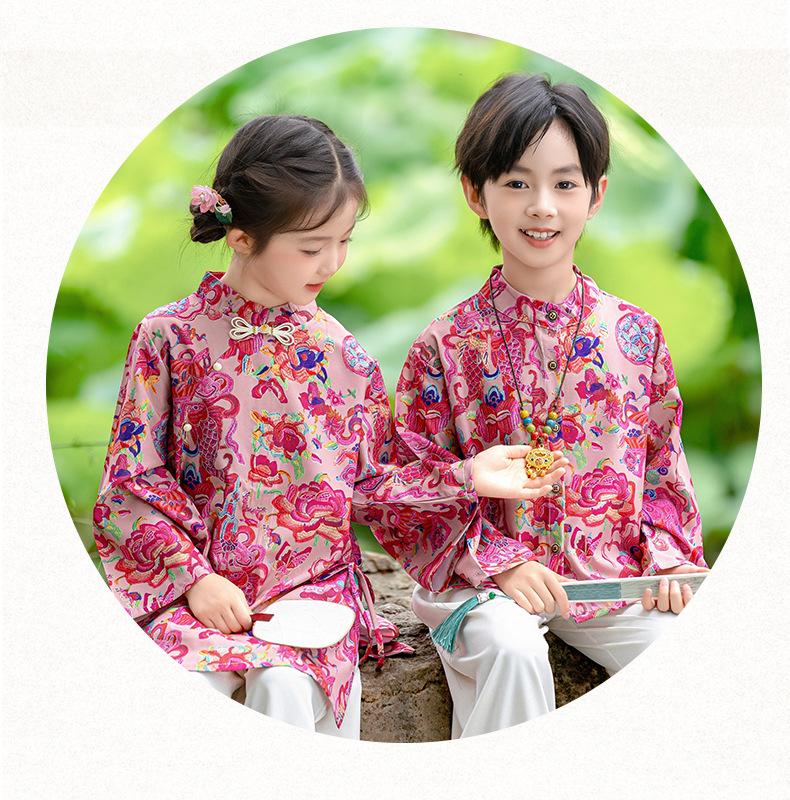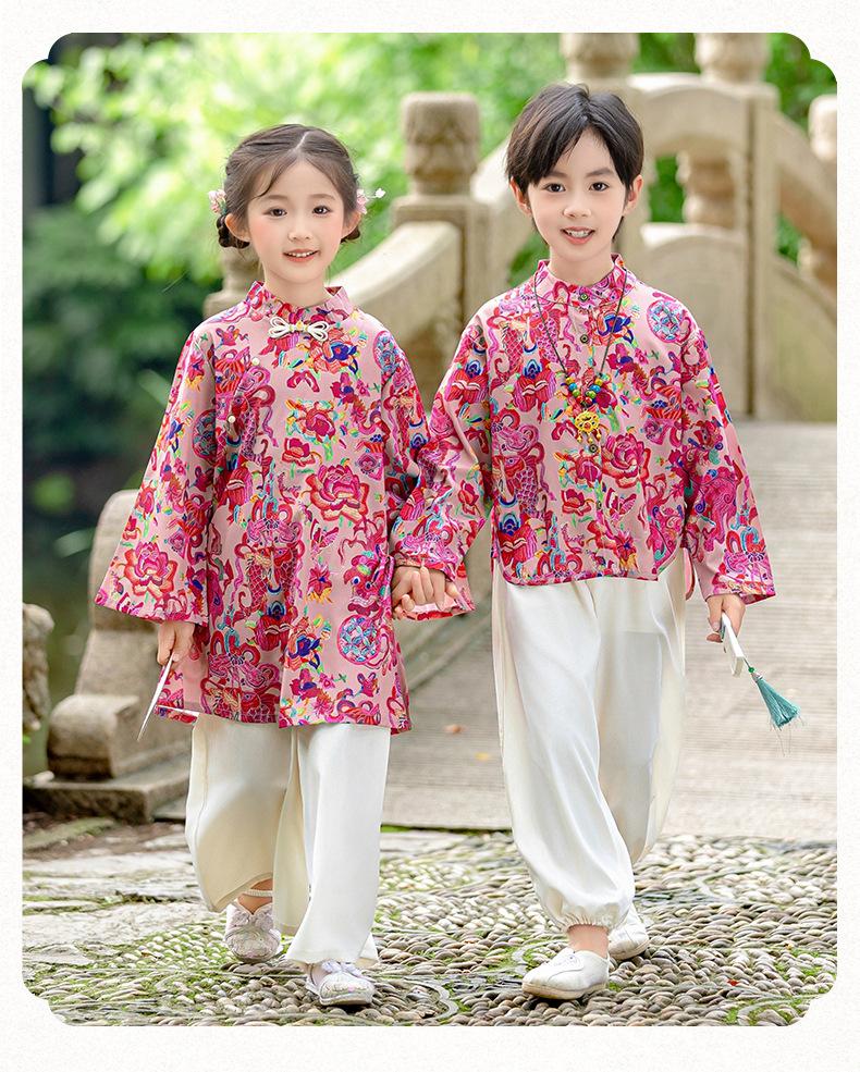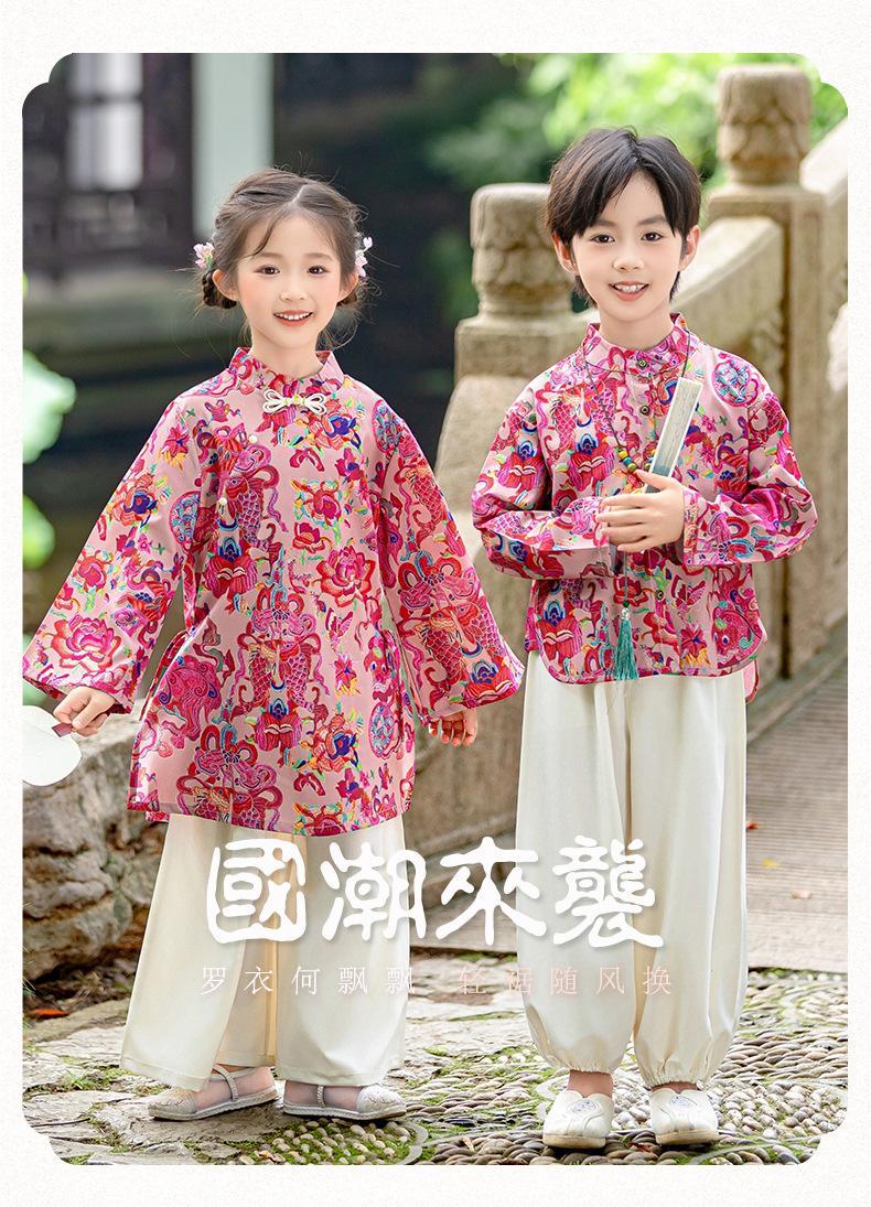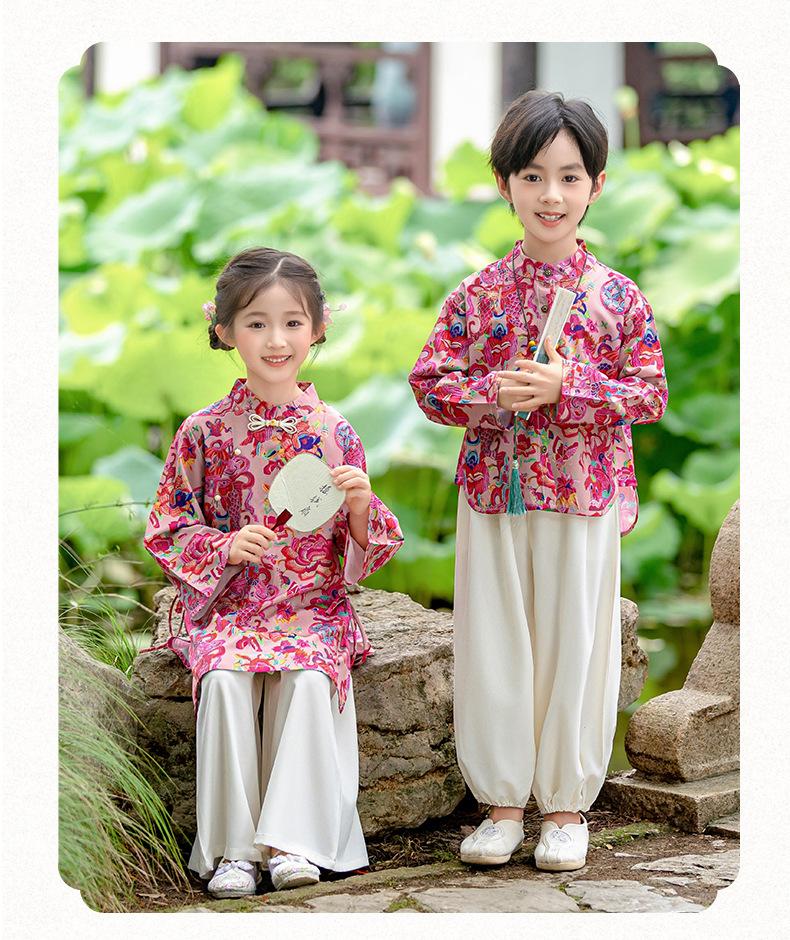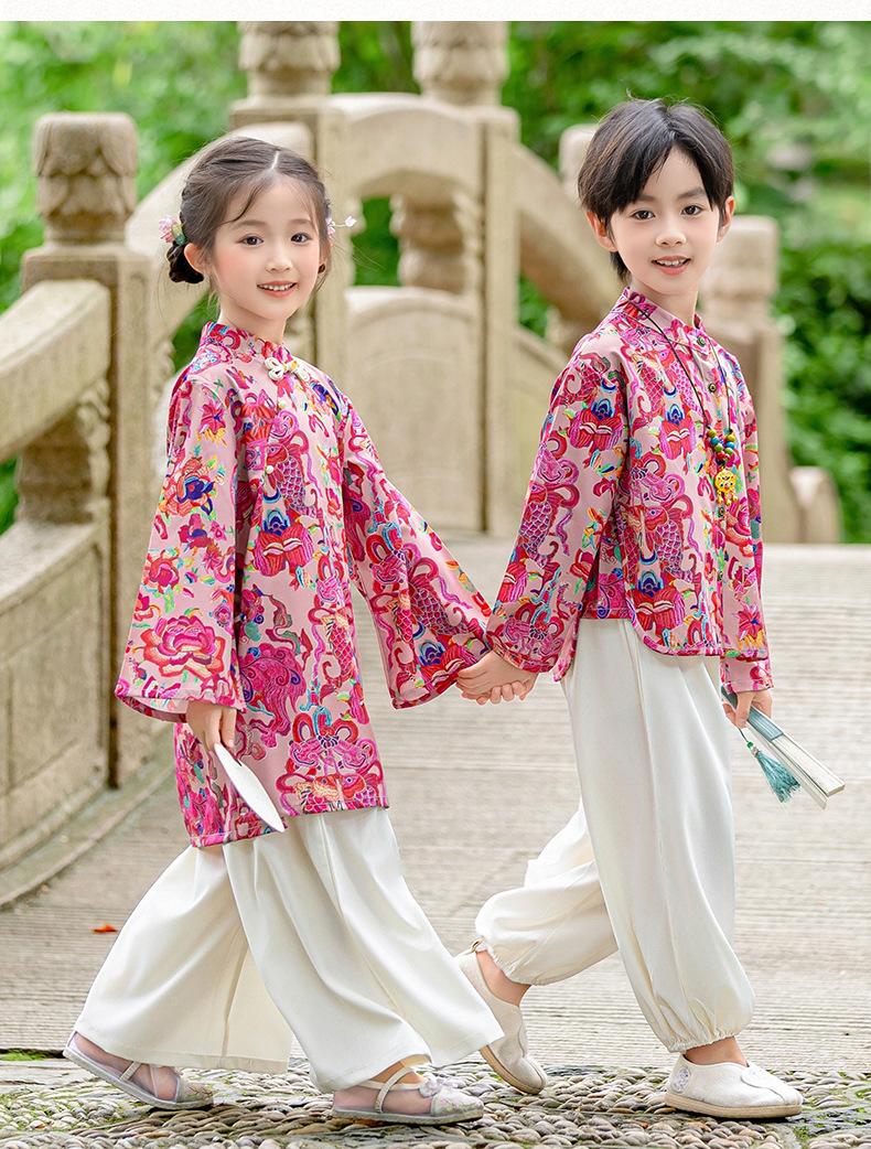 Hanfu para Niños y Niñas Otoño Estilo Chino Nuevo Conjunto Chino Disfraz Traje Tang para Niños de Jardín de Niños Disfraz de Actuación Guoxue