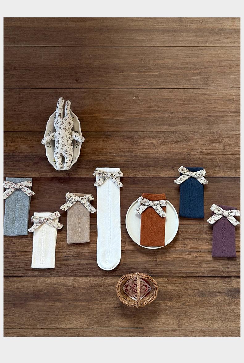ZT1015 Calcetines para Bebé Otoño Nuevo Calcetines de Media Caña de Algodón Peinado para Niños Calcetines hasta la Rodilla con Lazo a la Moda para Niñas