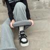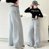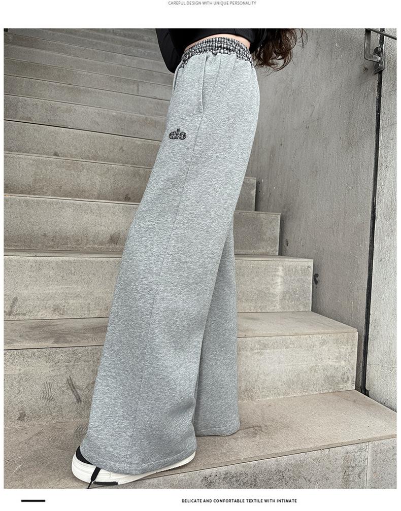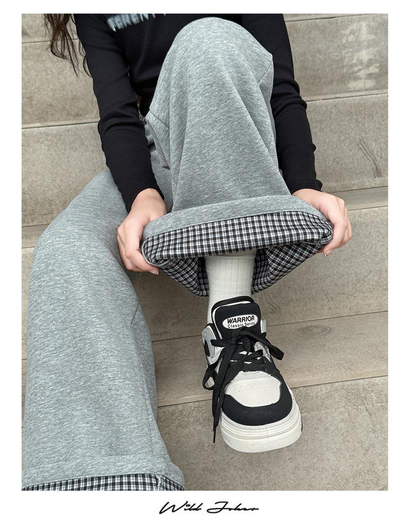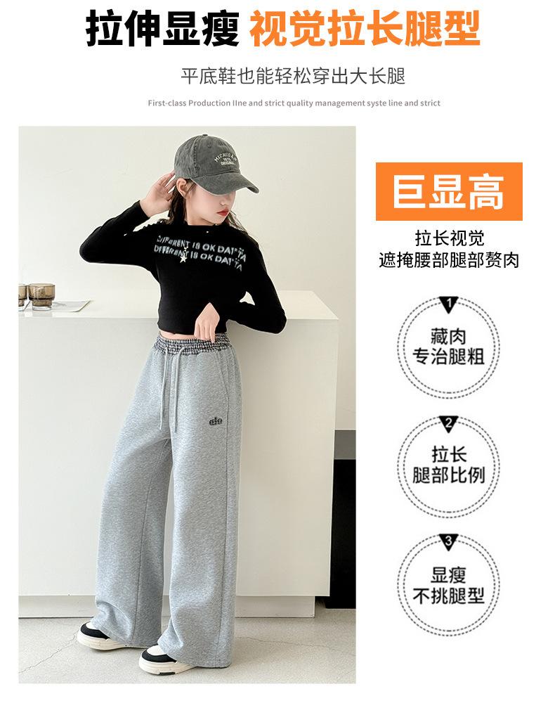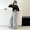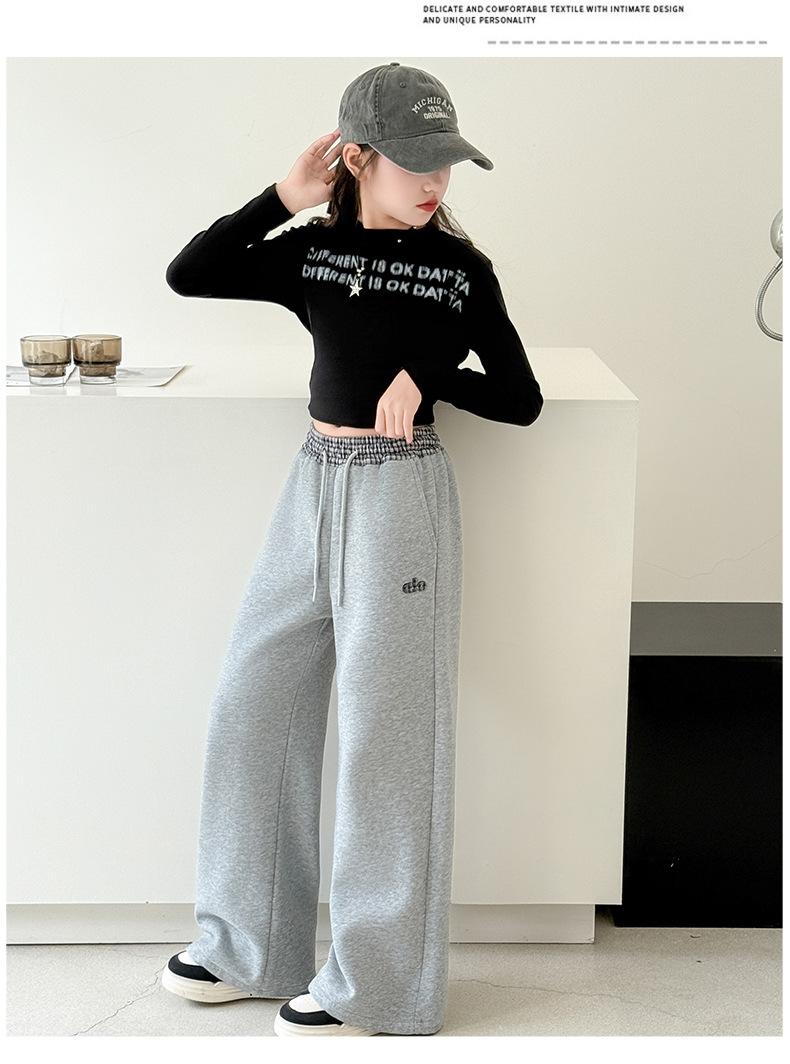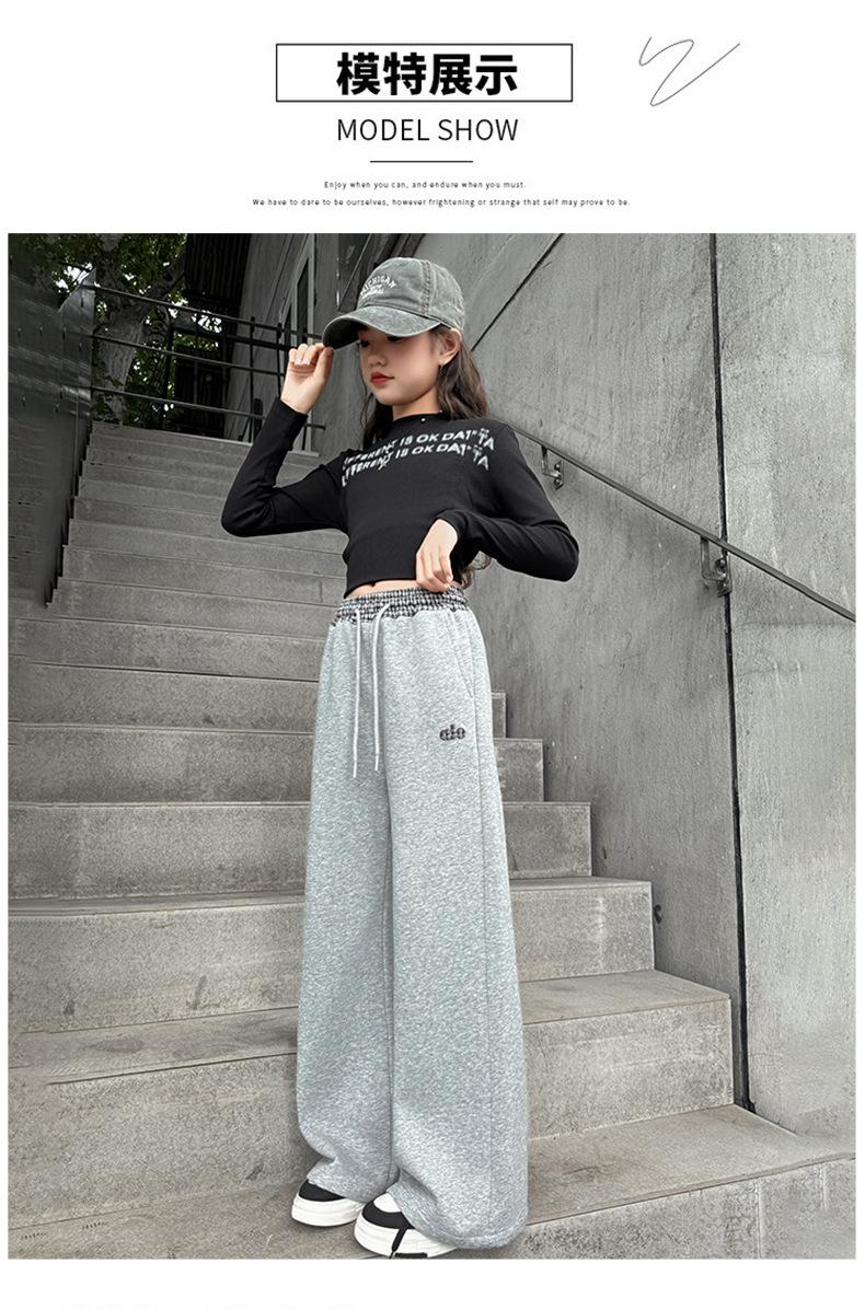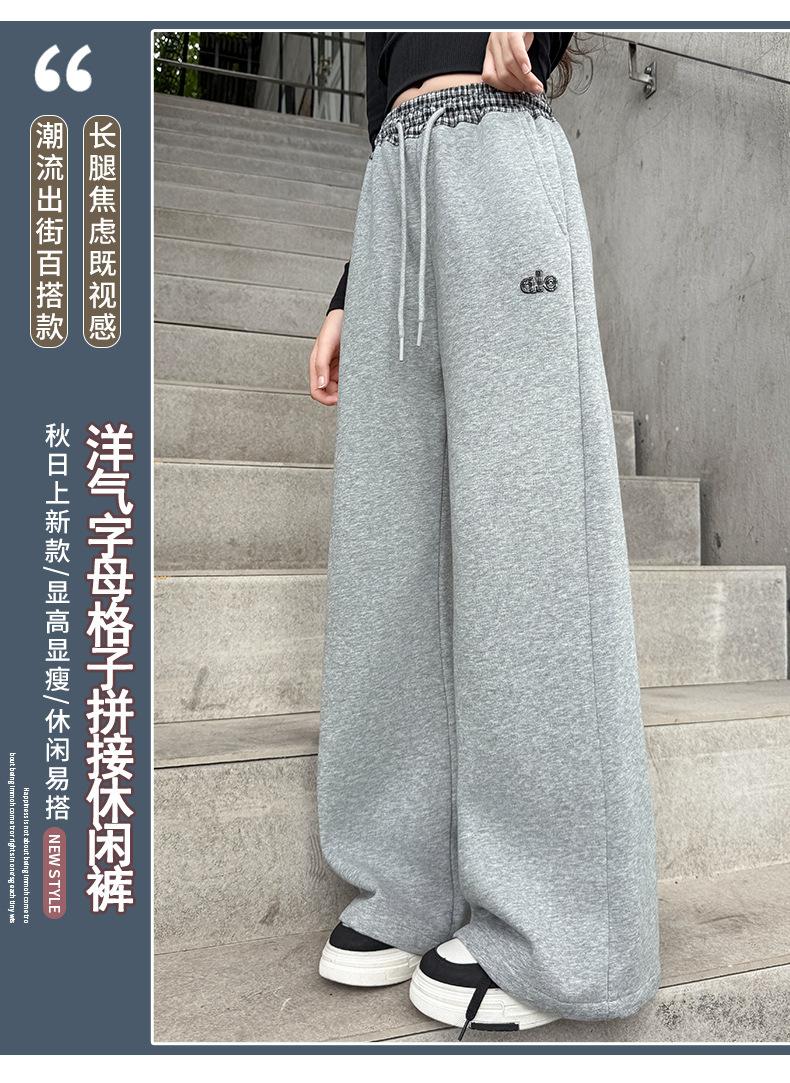 Pantalones deportivos para niña Otoño Moda Color Block Cintura Pantalones casuales 2025 Nuevo estilo Niños medianos y grandes Estilo extranjero Micro acampanados Pierna recta Pierna ancha