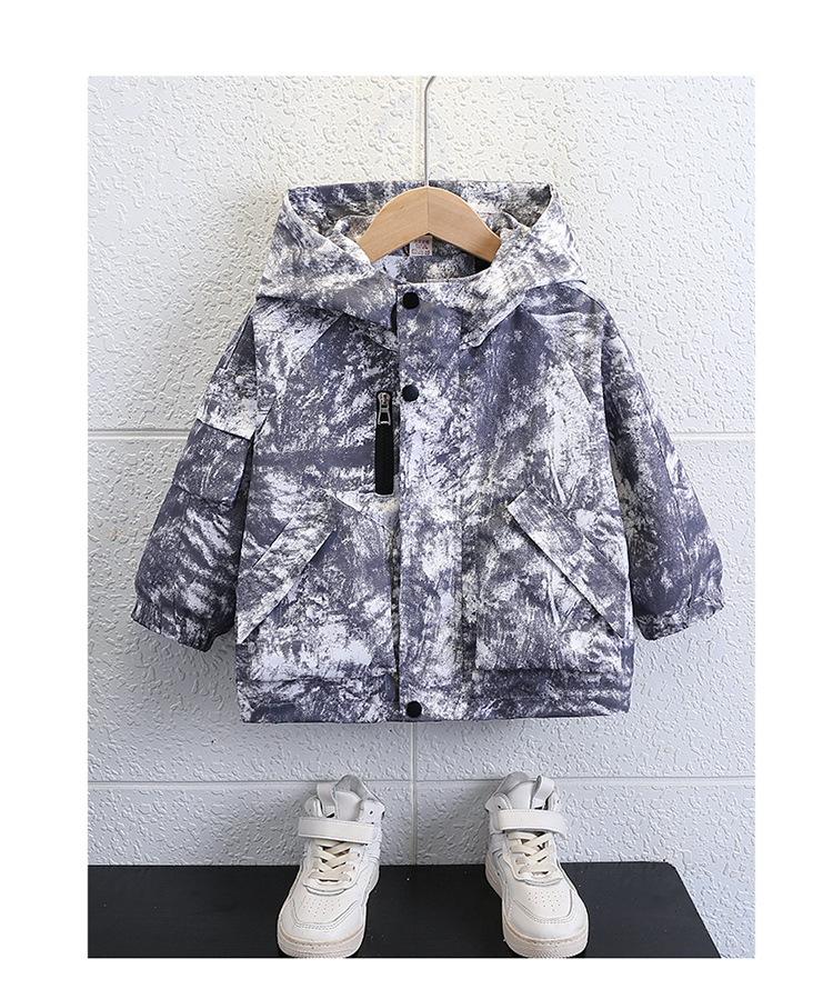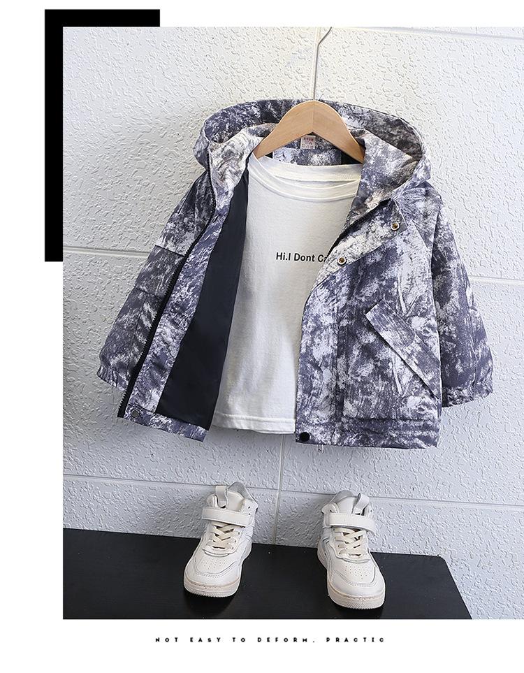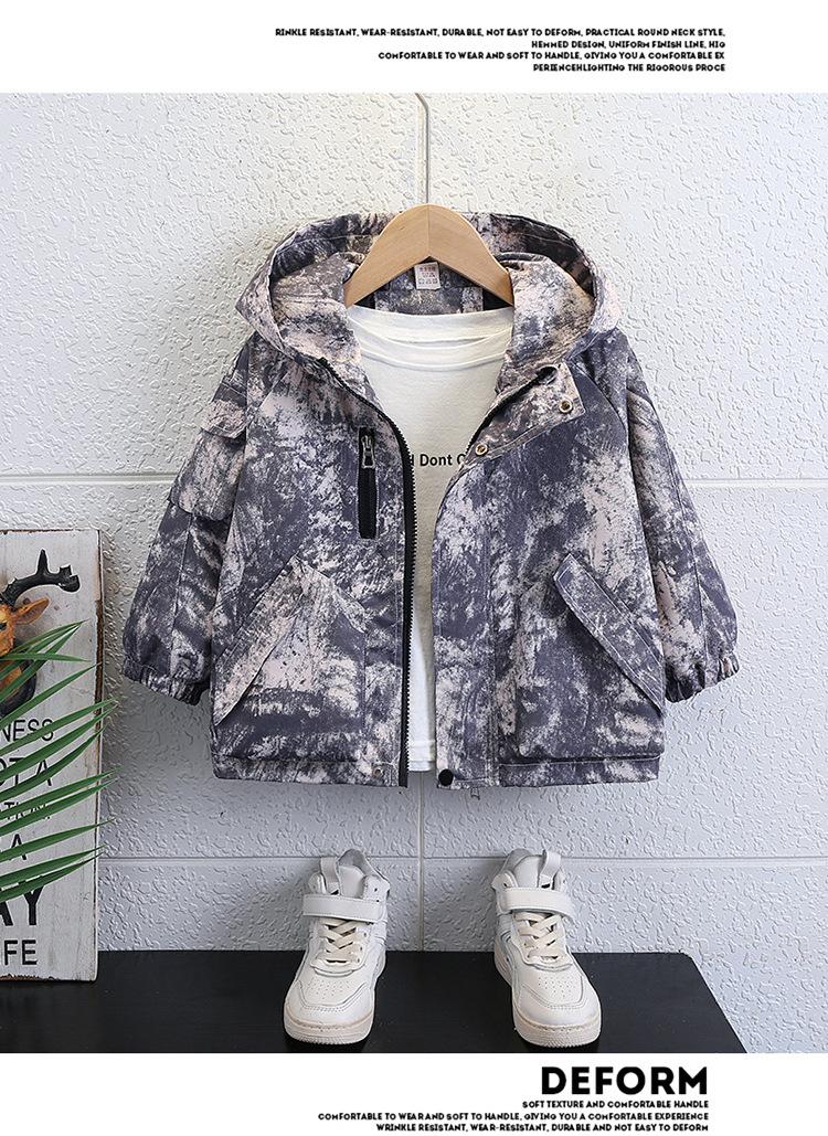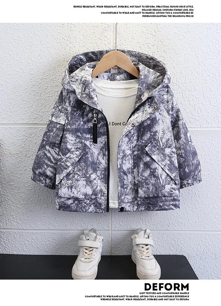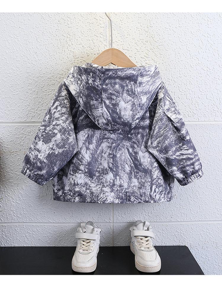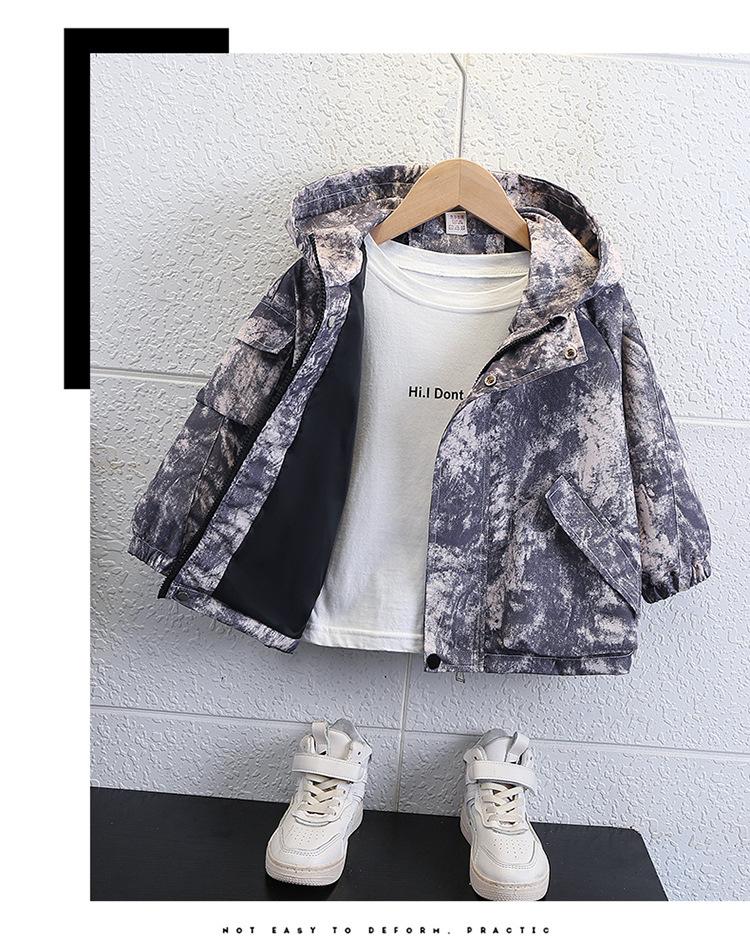 Chaqueta Cortavientos de Otoño para Niño 2025 Otoño Nuevo Estilo Moda Infantil y Elegante Chaqueta con Capucha Tie-dye