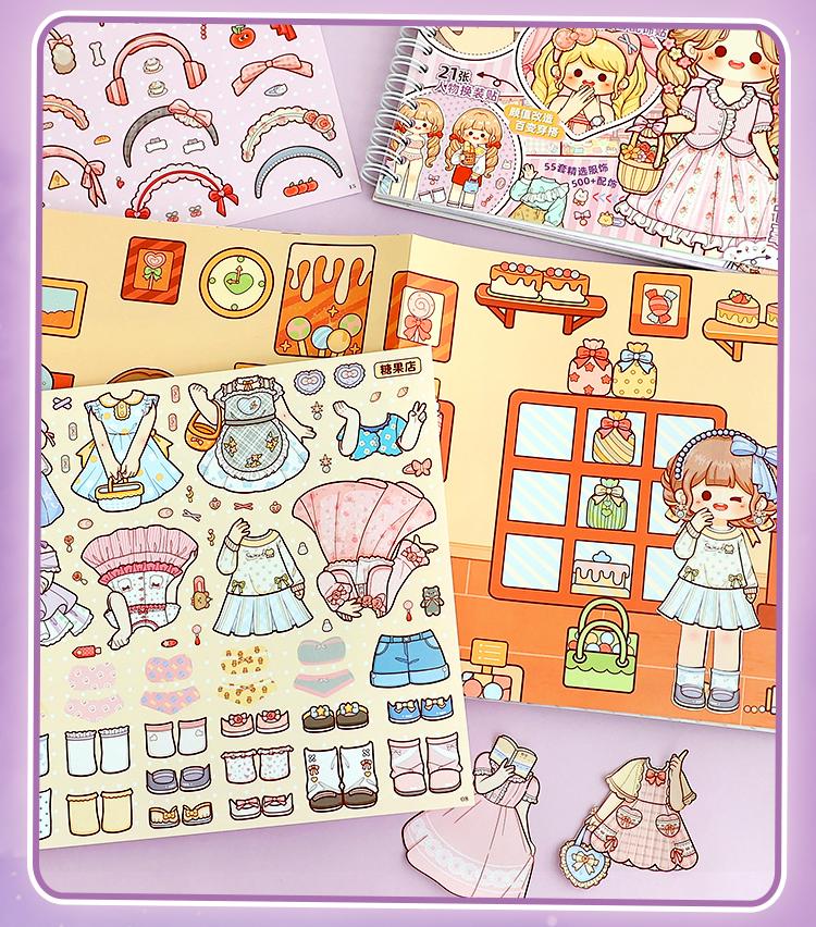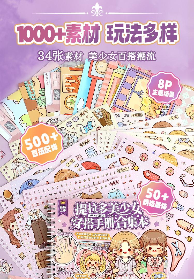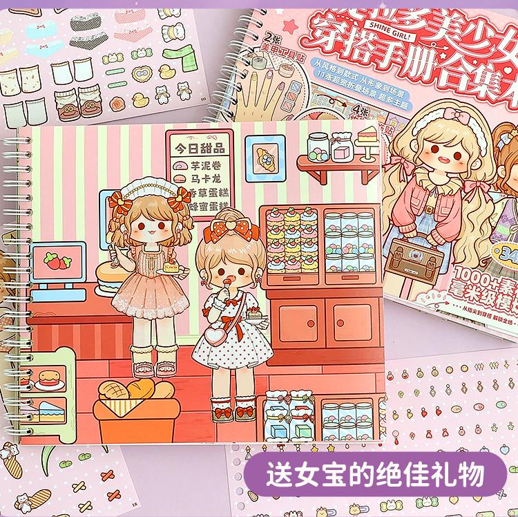 Tirado Libro de Colección Manual de Vestir Chica Bonita Juguetes para Niños Libro de Pegatinas de Princesas Planificador de Personajes Maquillaje