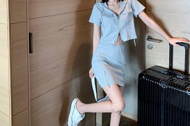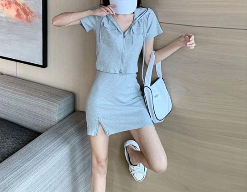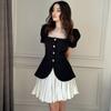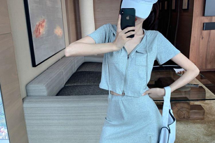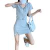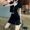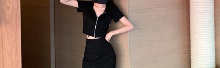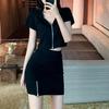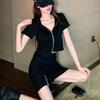 Vestido Dulce Salado para Mujer 2024 Verano Nuevo Top Corto con Abertura Falda Corta Ajustada Traje de Dos Piezas