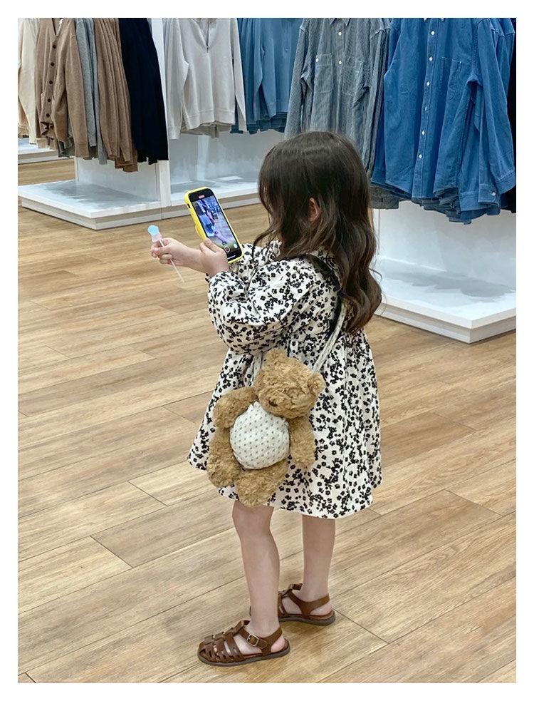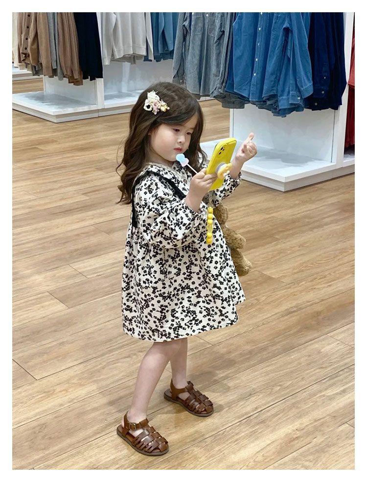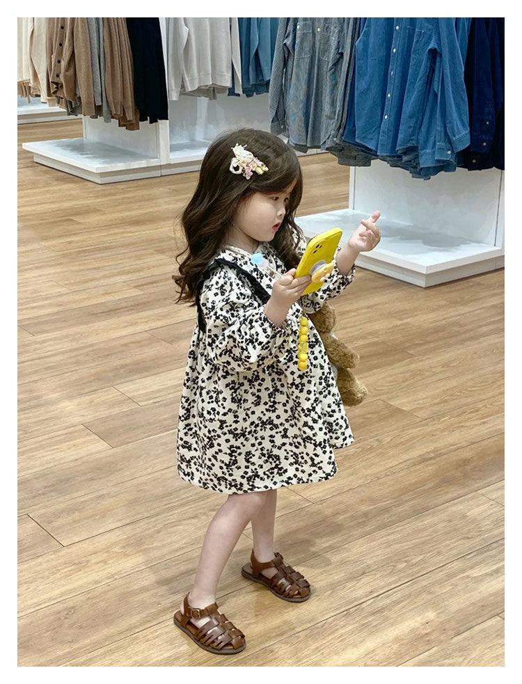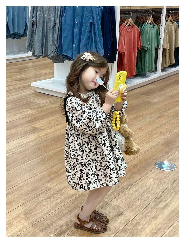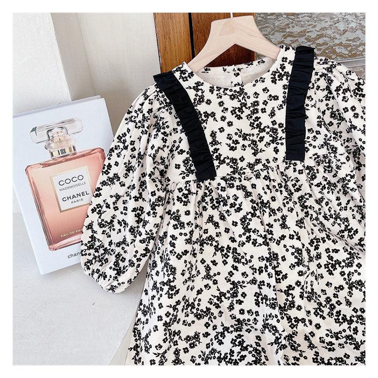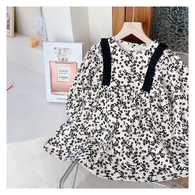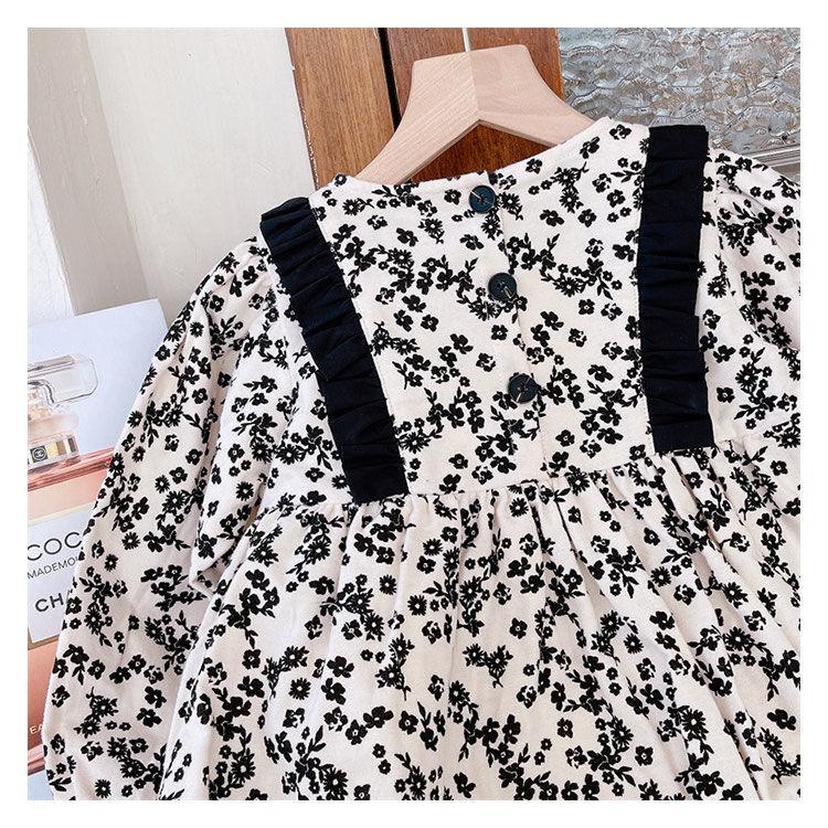 Otoño Nuevo Ropa para Niños Vestido de Manga Larga Floral Cepillado a la Moda para Niñas Estilo Coreano Vestido de Bebé Niña Niña Princesa