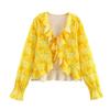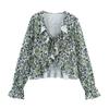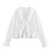 Ropa de Mujer de Comercio Exterior Transfronterizo de Amazon 2025 Estilo Europeo y Americano Cuello en V Manga Larga Volantes Top Camisa con Lazo Venta al por Mayor