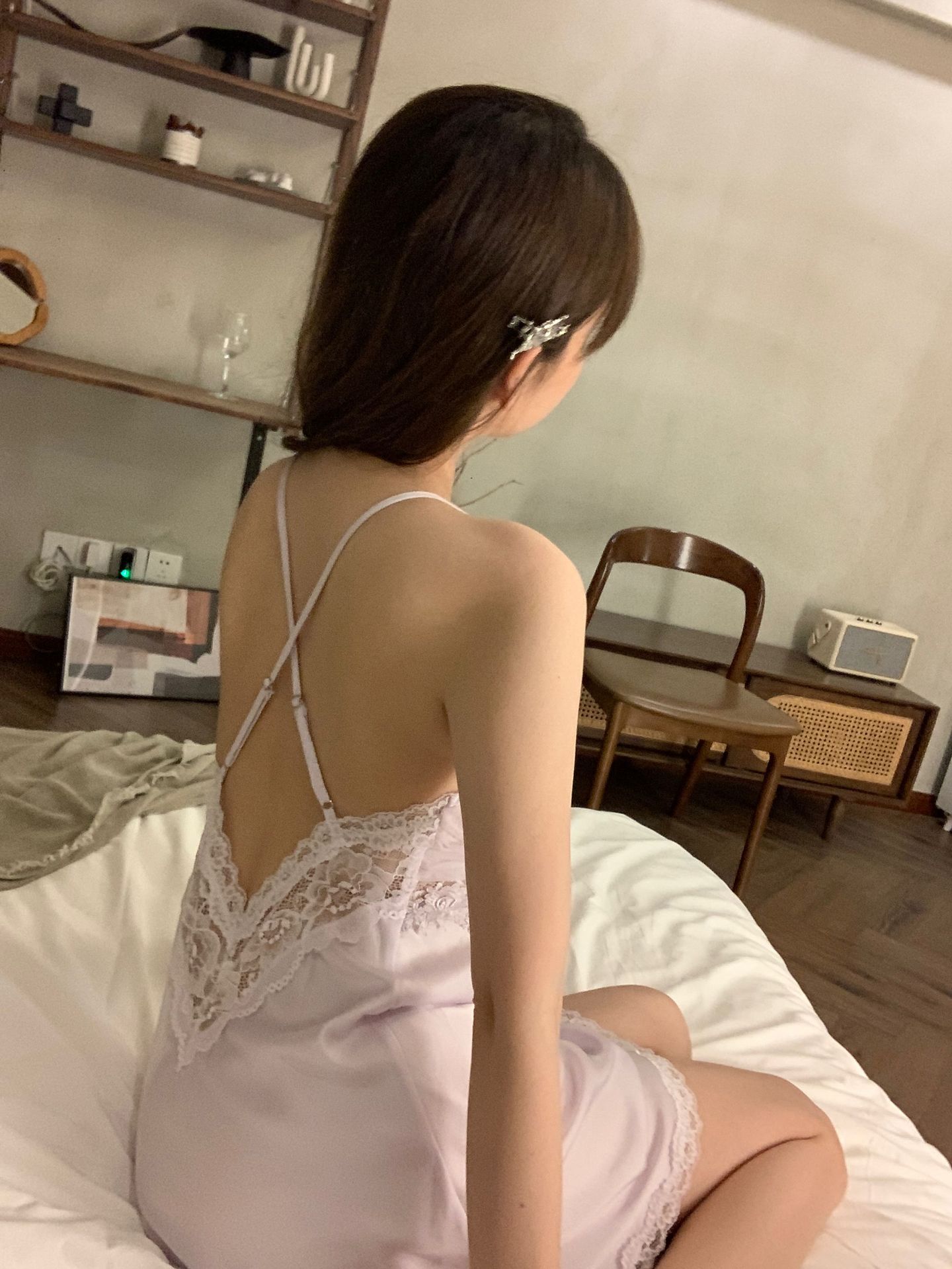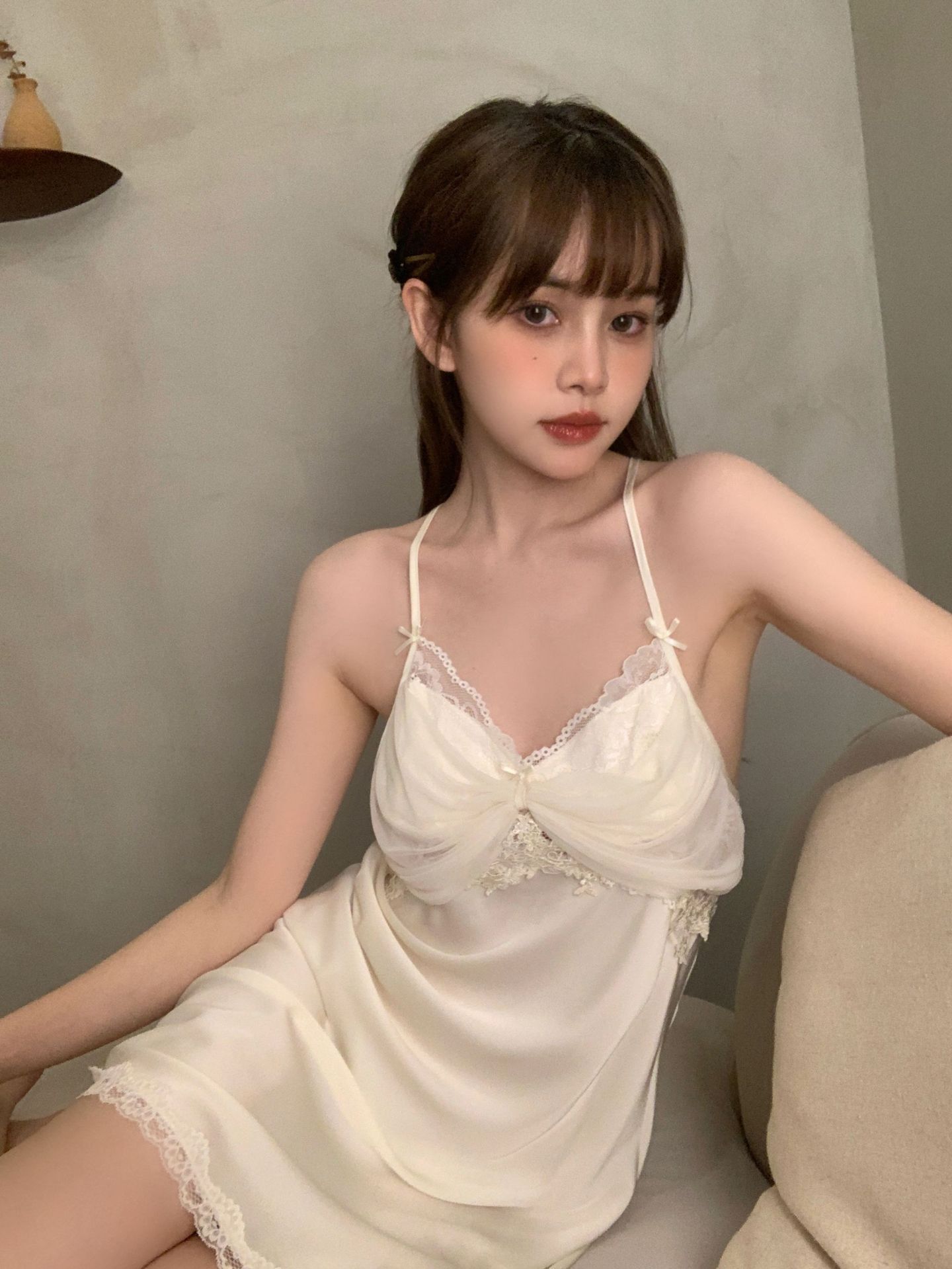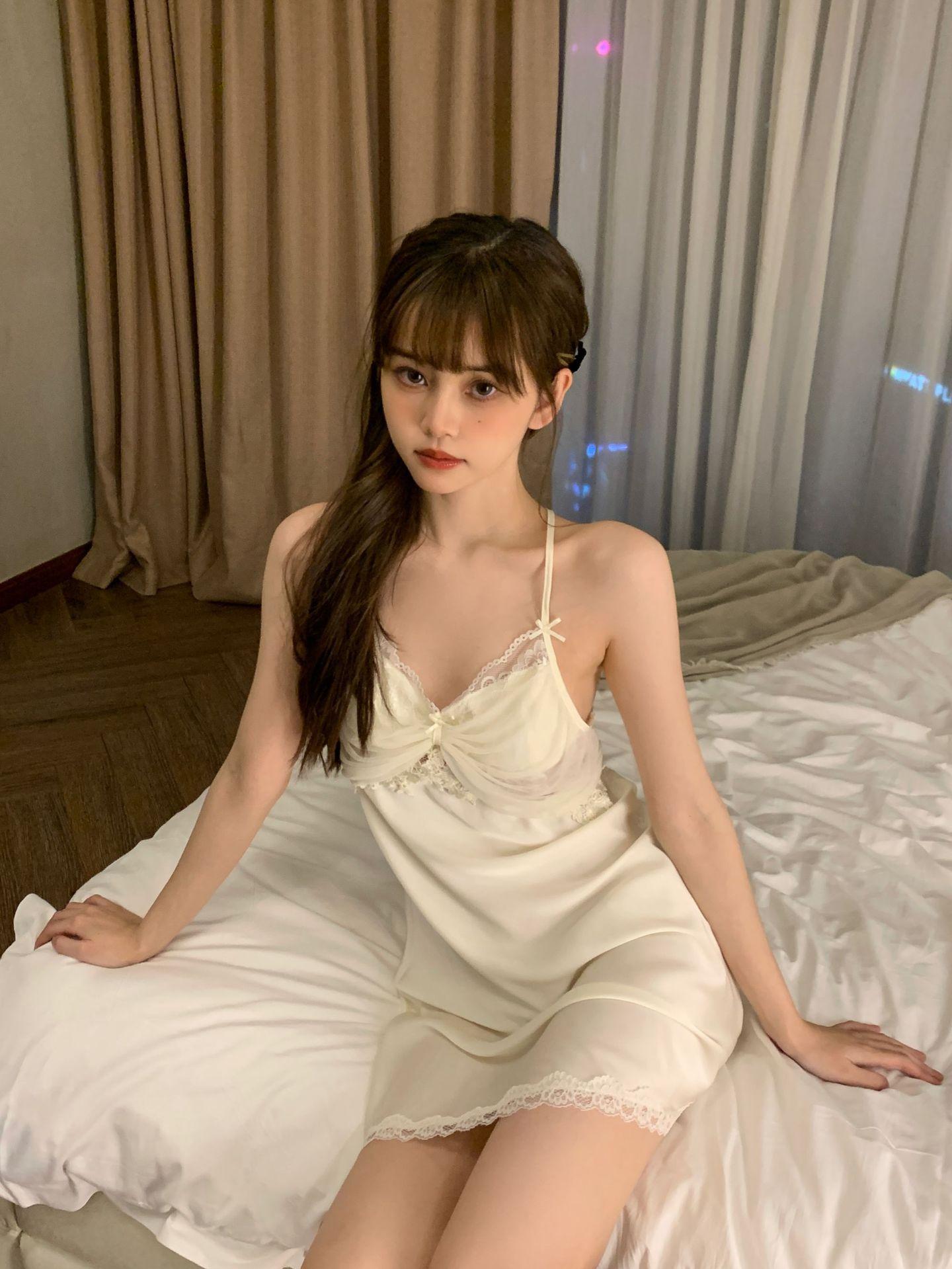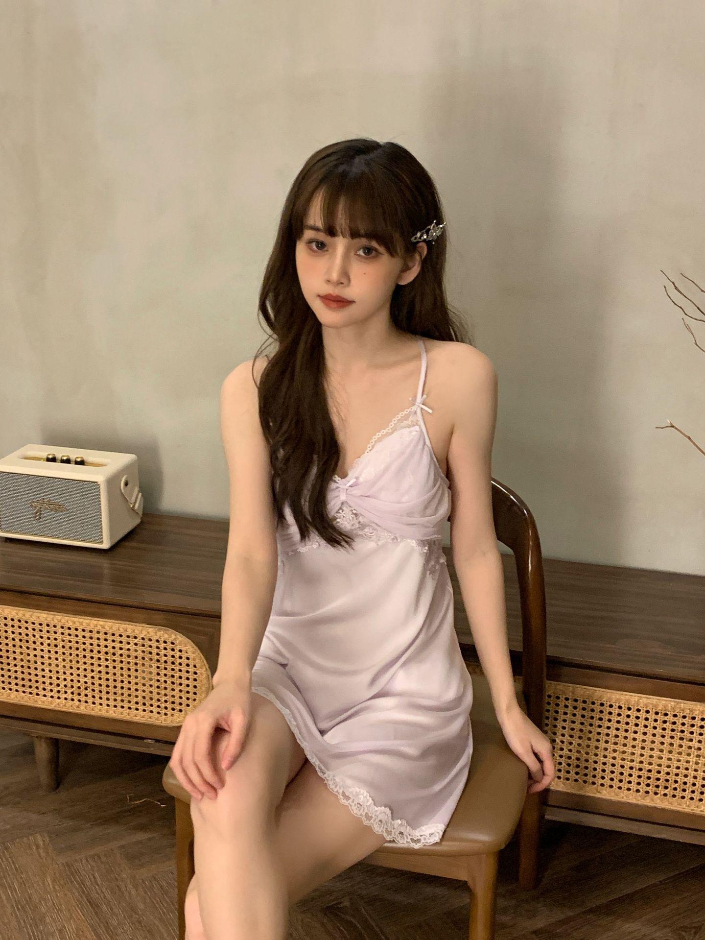 Camisón para Mujer, Nuevo Primavera Sexy Encaje de Seda de Hielo con Almohadilla en el Pecho, Camisón de Verano de Malla con Espalda Descubierta de Belleza de Deseo Puro