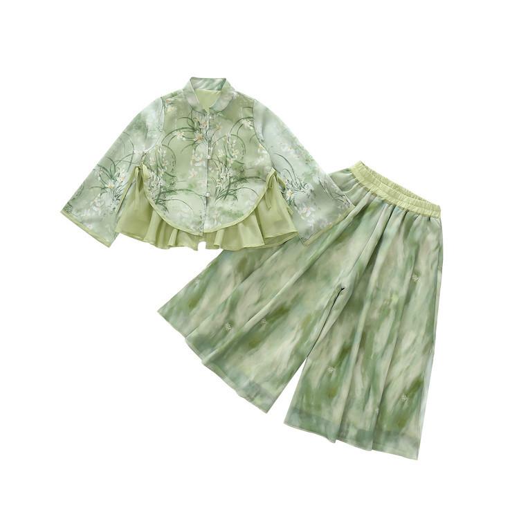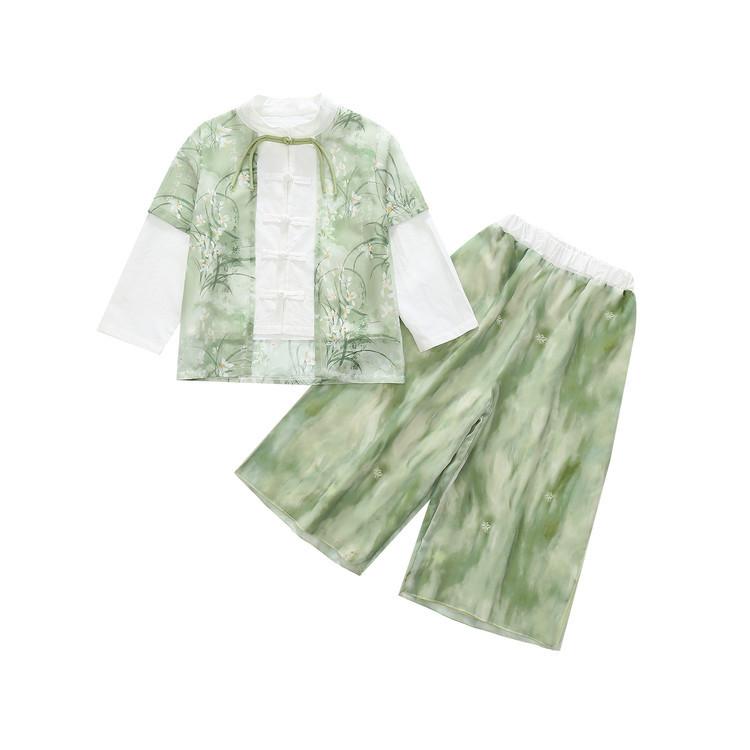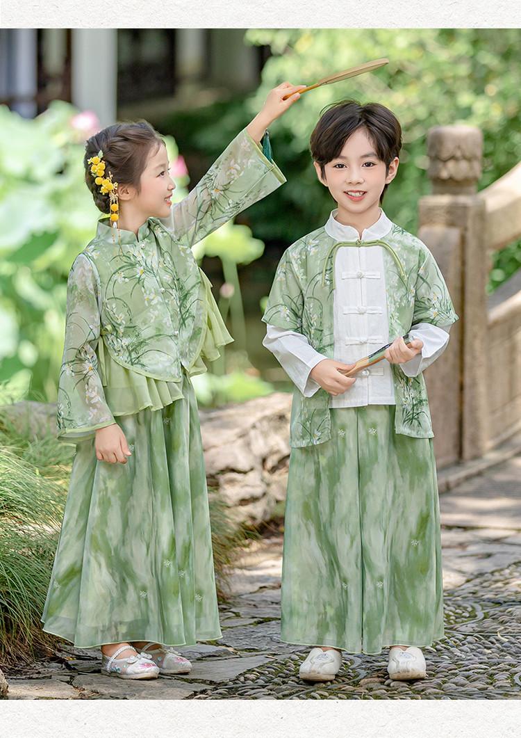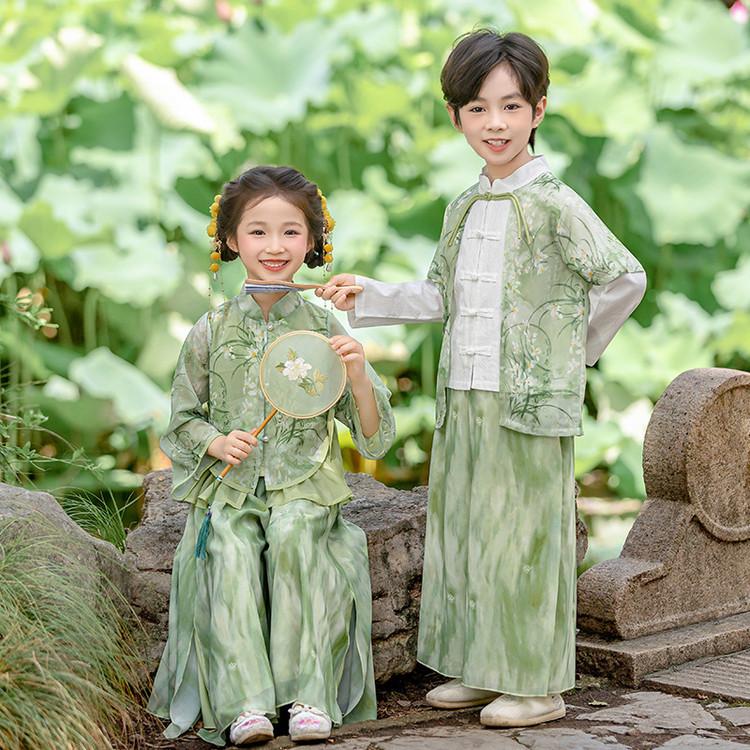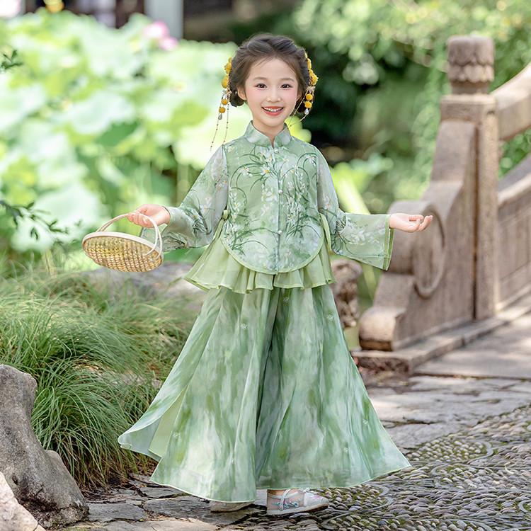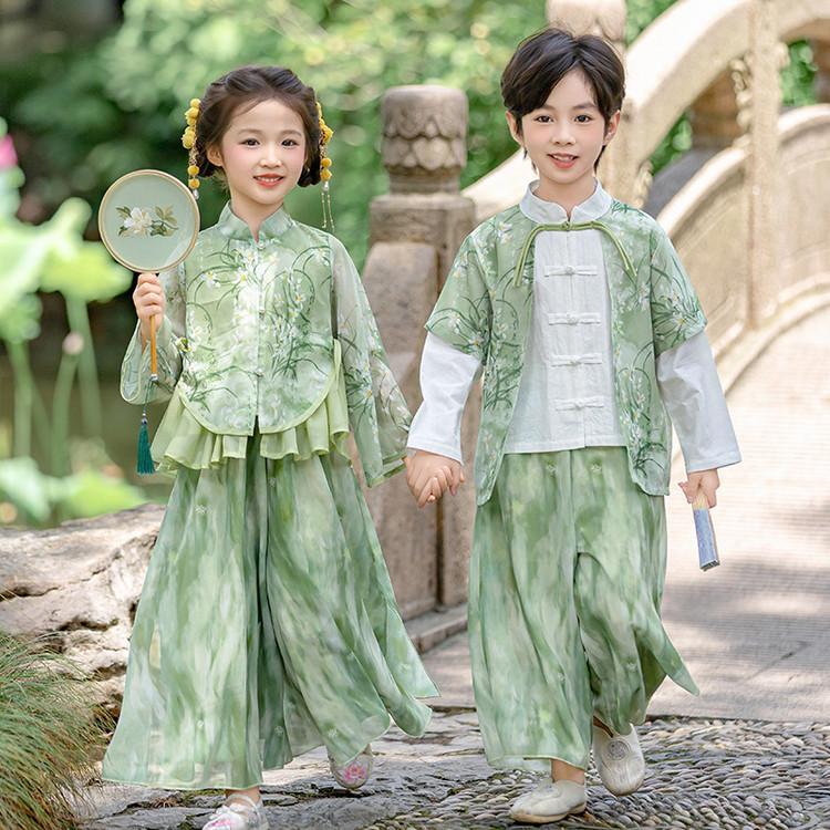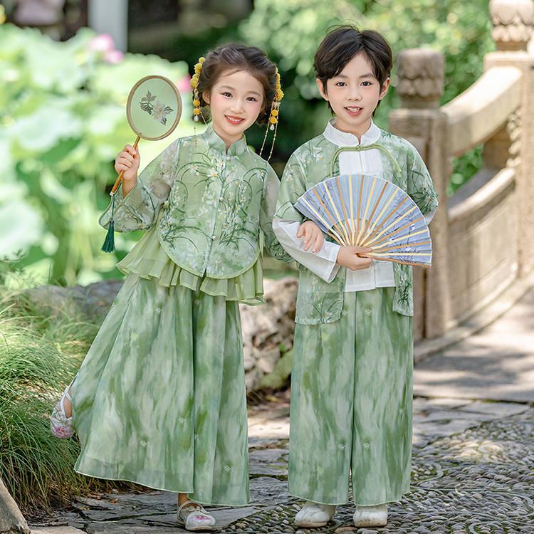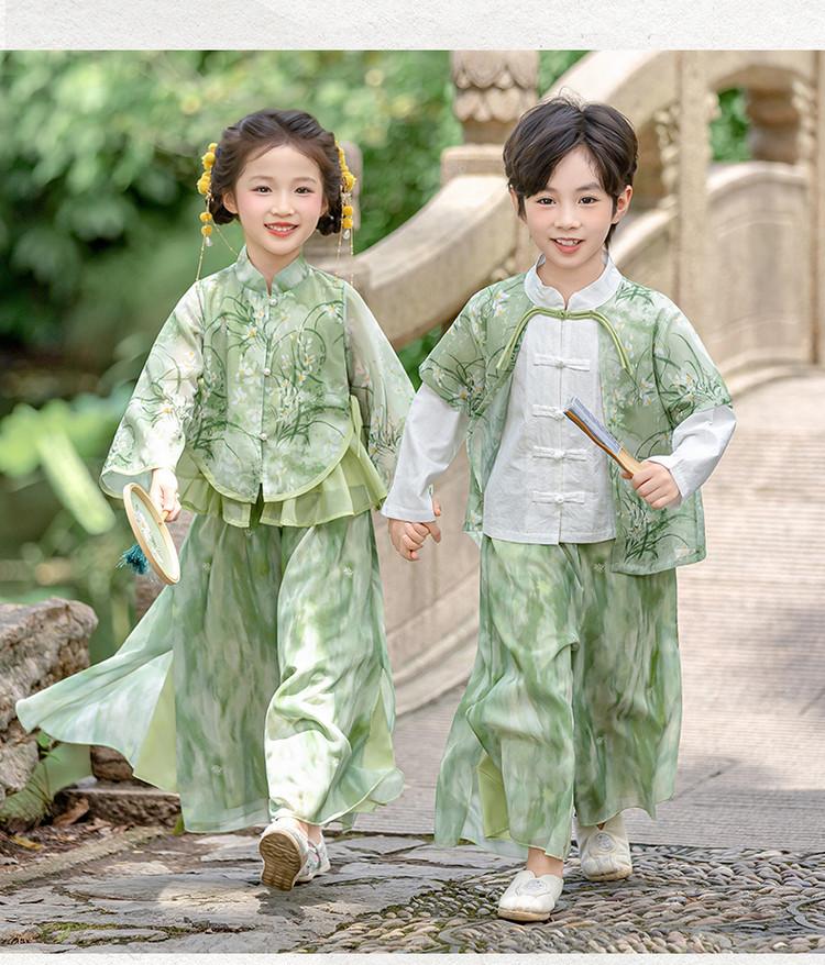 Traje de Actuación Hanfu para Niños Temporada de Primavera y Otoño Traje Antiguo para Niños Traje Tang para Niñas Estilo Nacional Nuevo Estilo Chino Actuación de Festival de Medio Otoño para Jardín de Niños