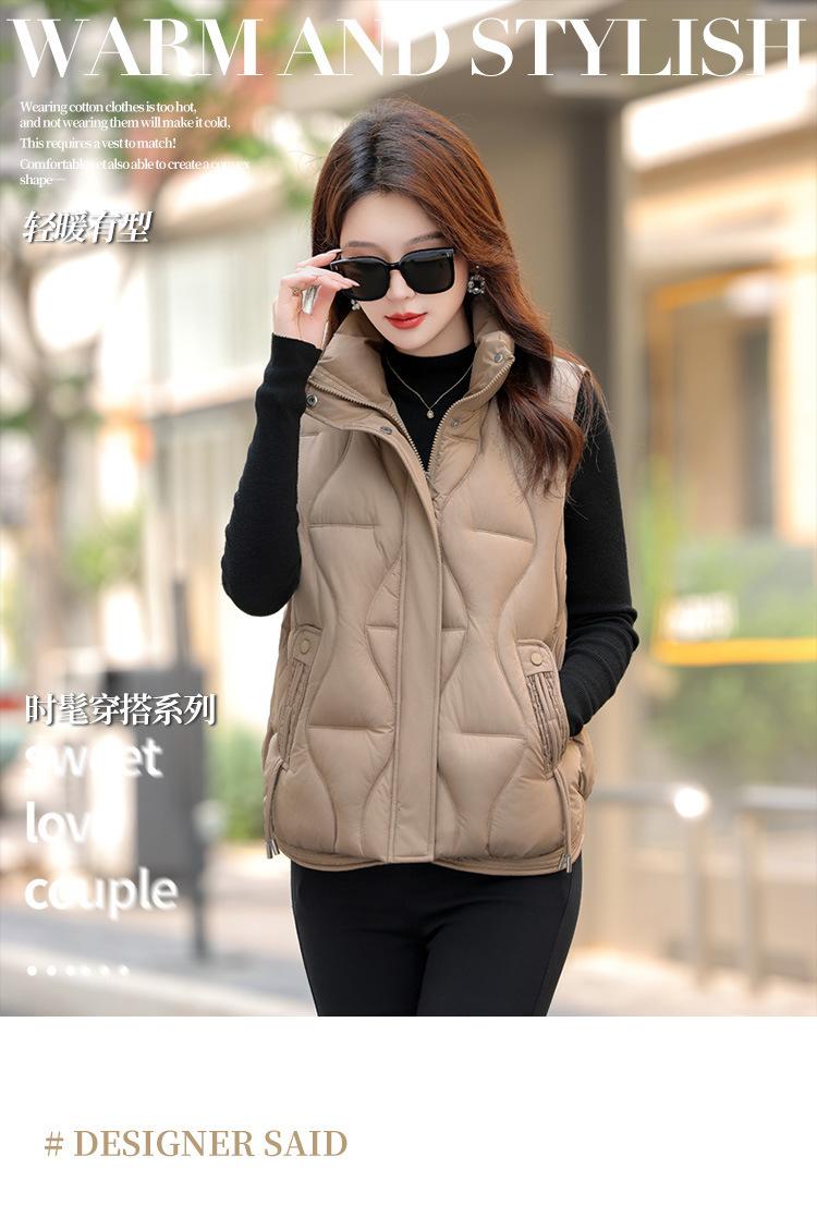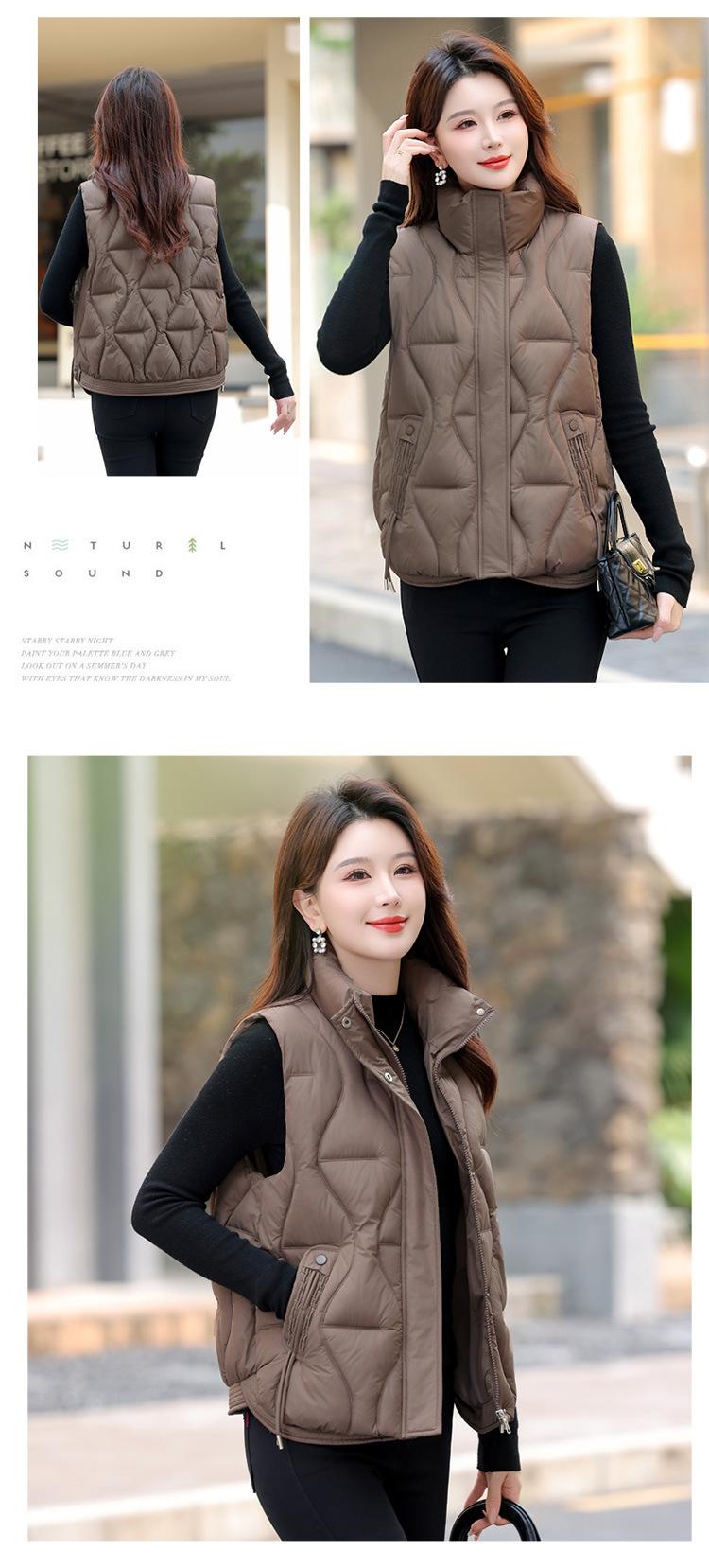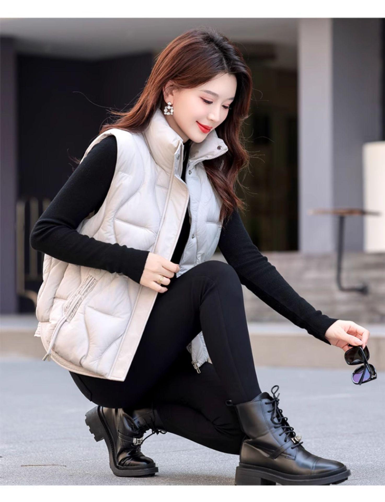 Chaleco de plumón para mujer 2025 otoño e invierno nueva moda petite cuello alto abrigo cálido que reduce la edad chaleco elegante