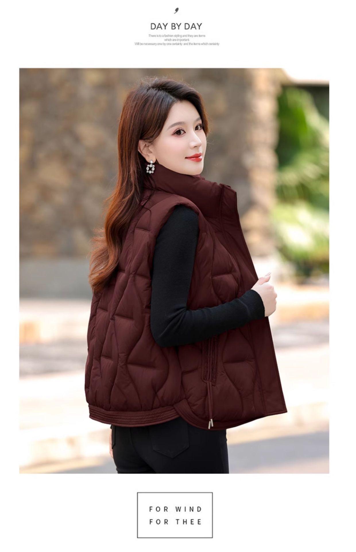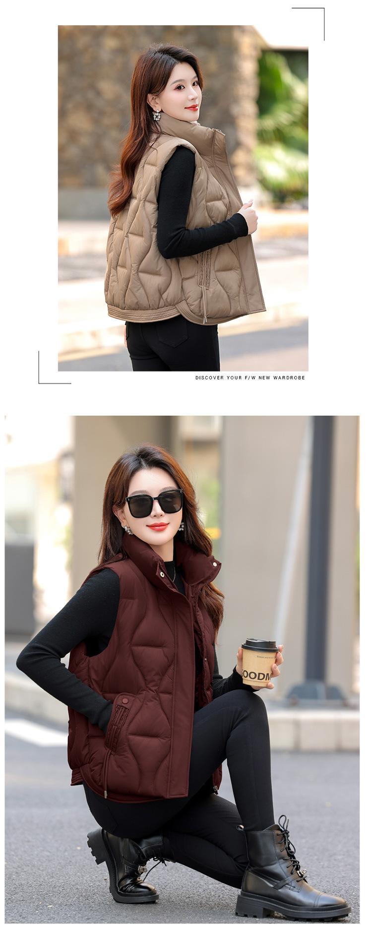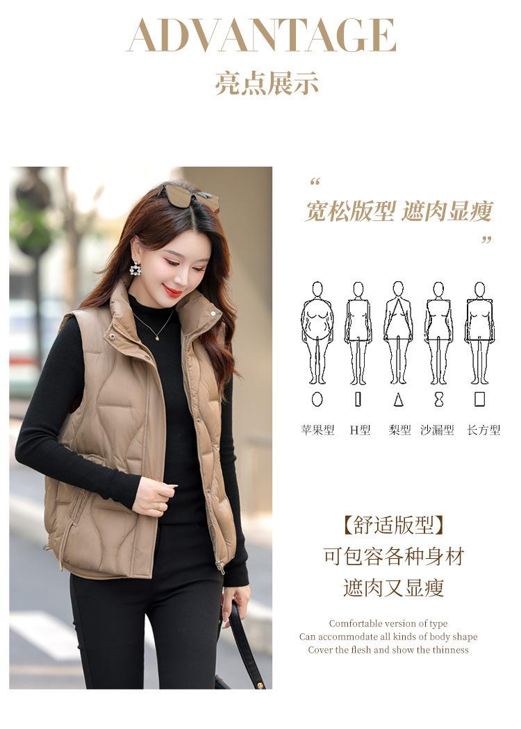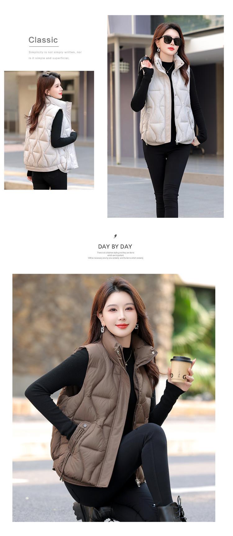 Chaleco de plumón para mujer 2025 otoño e invierno nueva moda petite cuello alto abrigo cálido que reduce la edad chaleco elegante