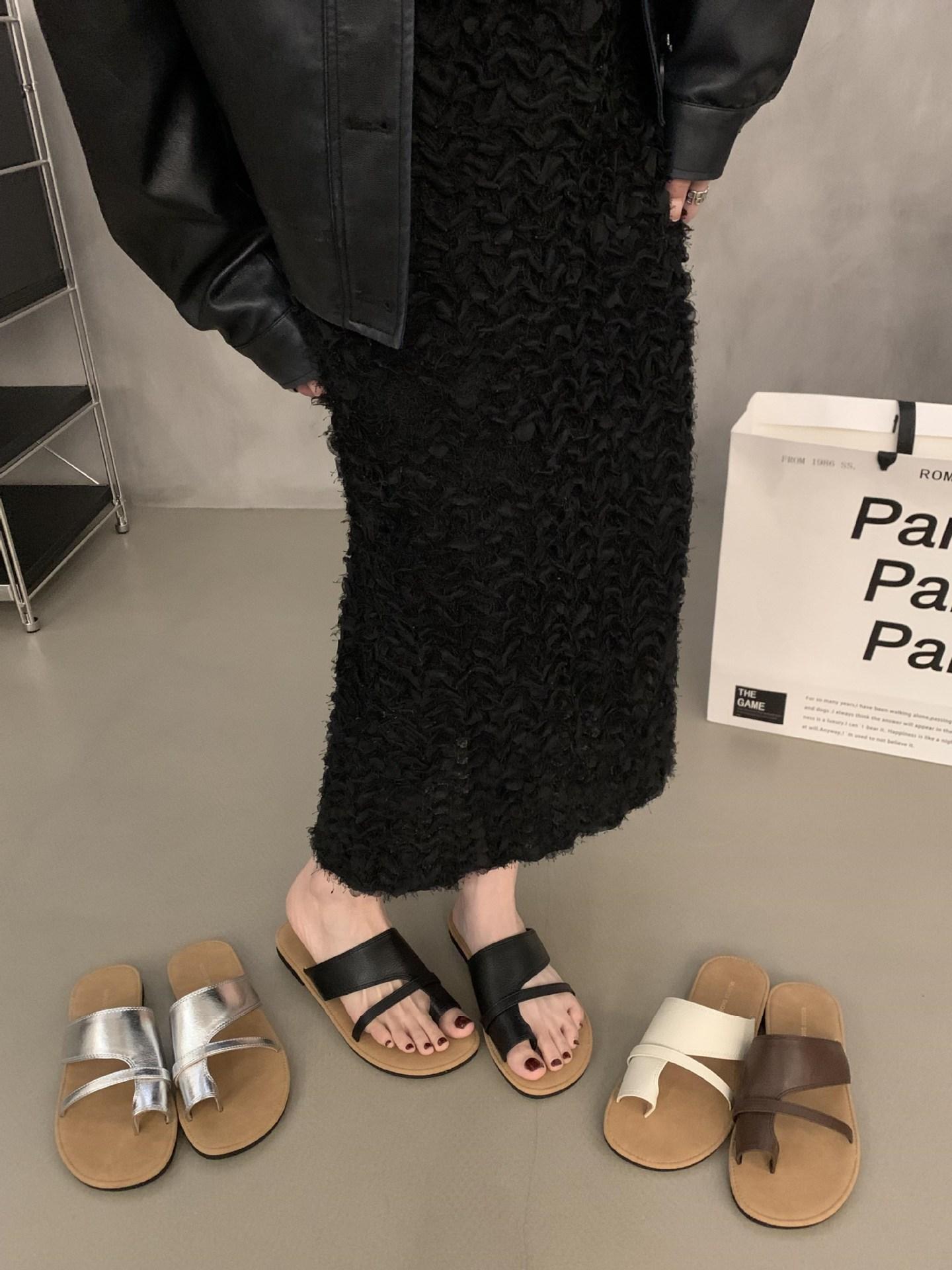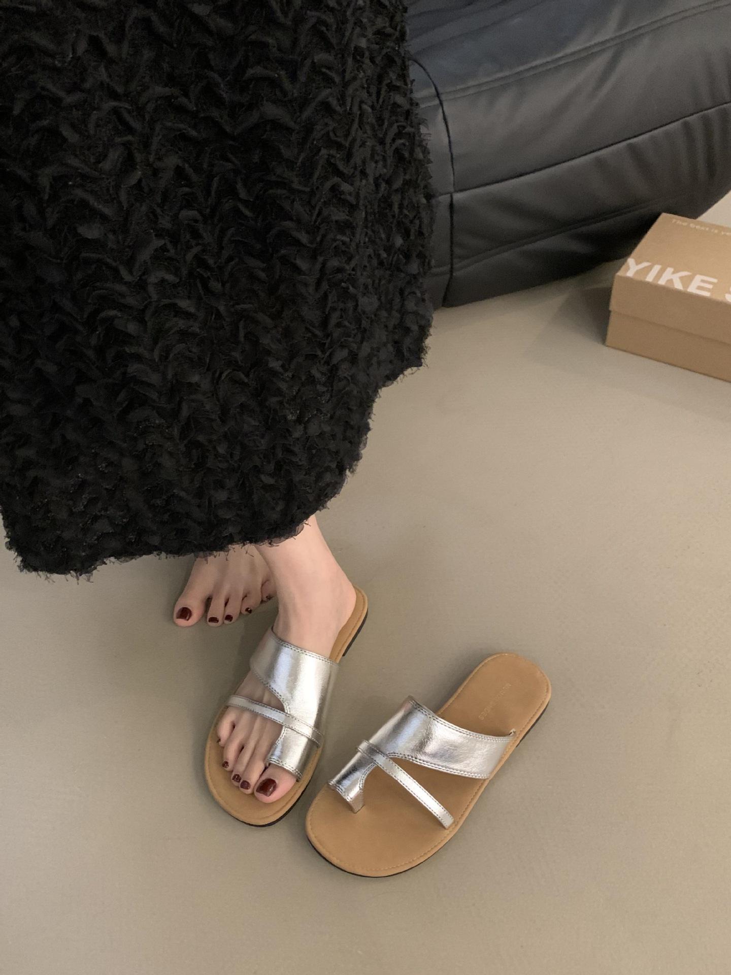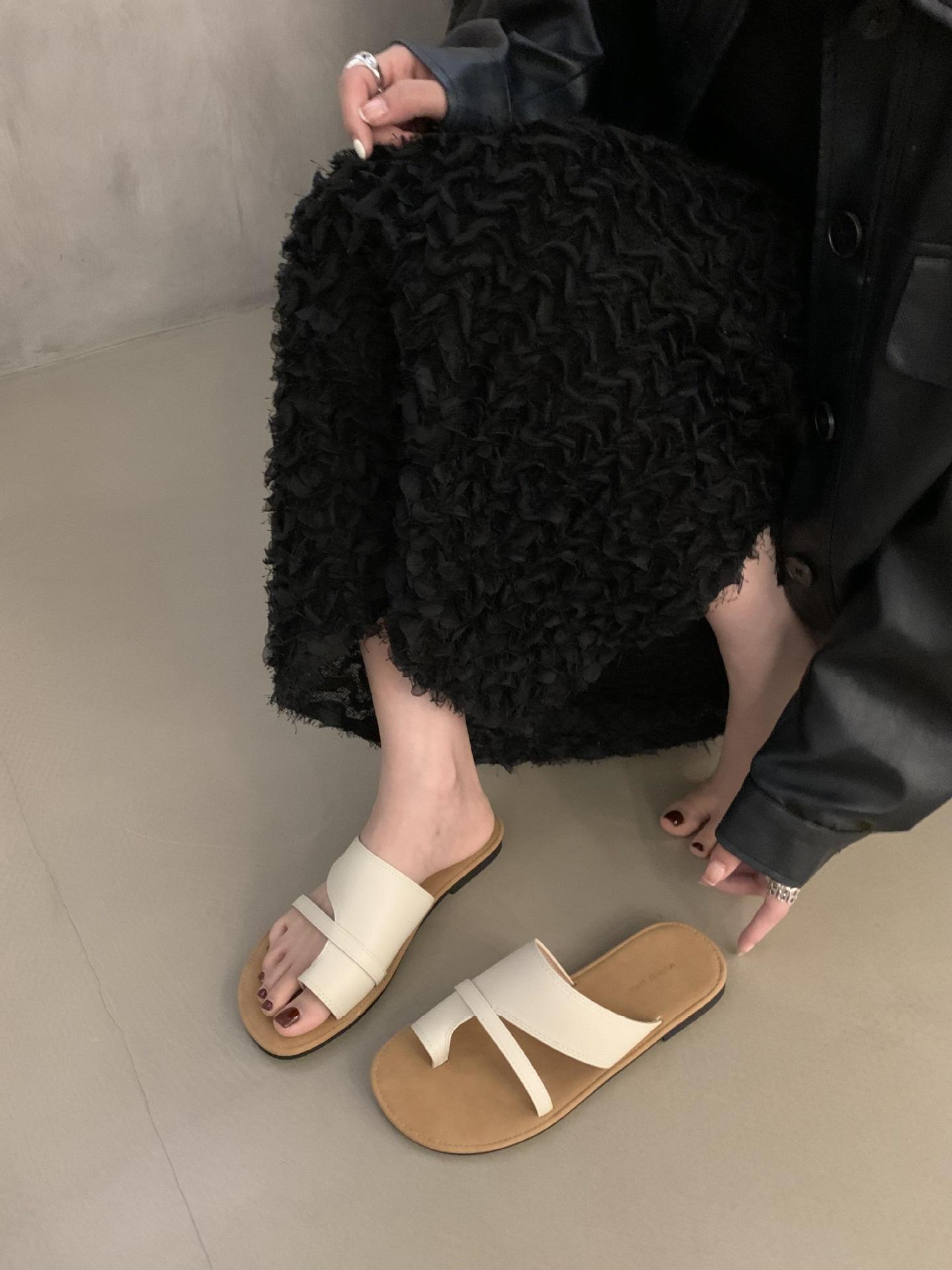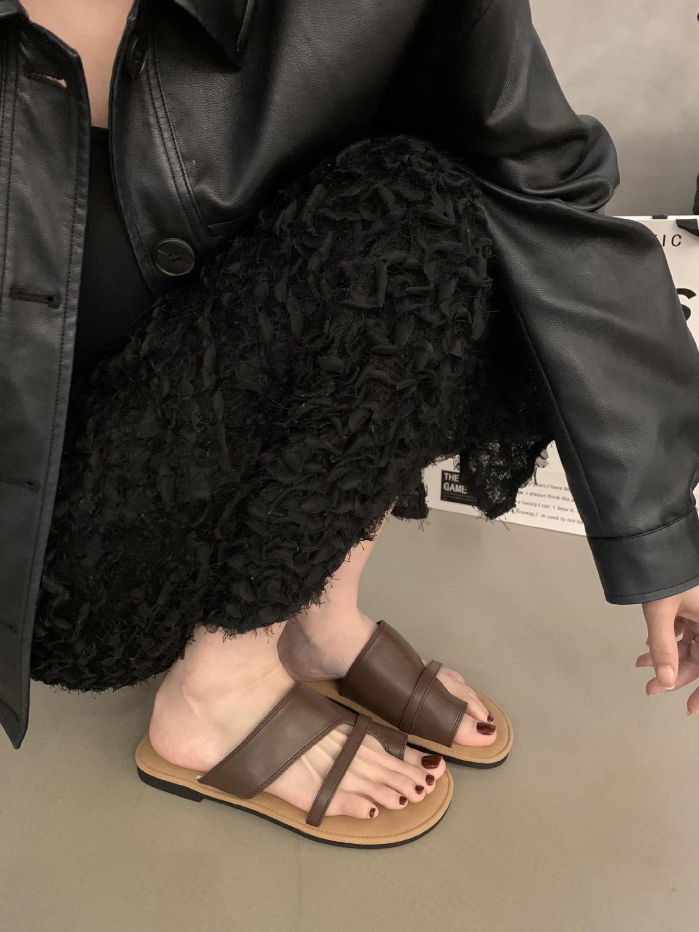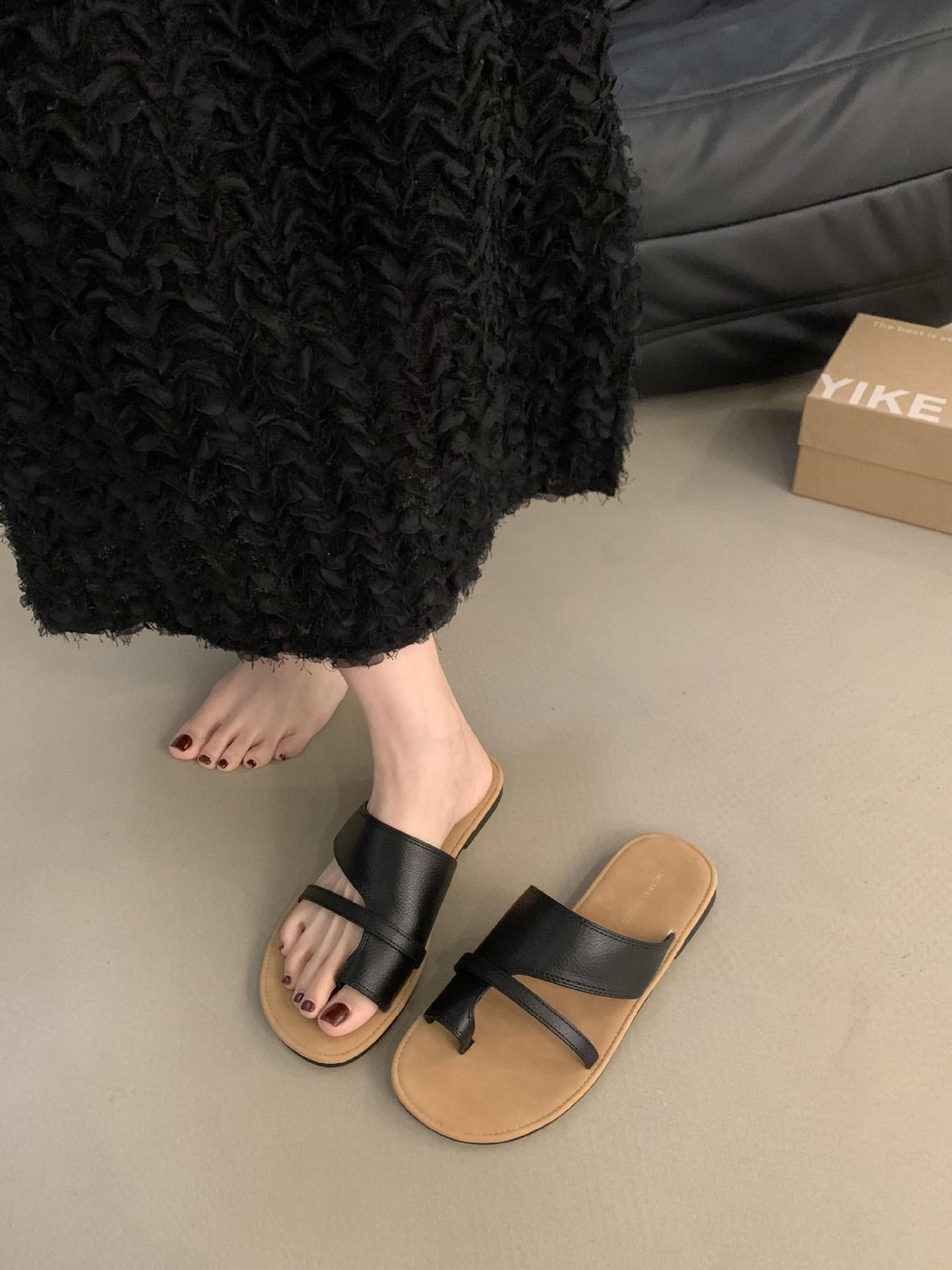 Chanclas retro de estilo coreano para mujer, ropa de verano 2025, nuevas sandalias de playa planas de suela suave.