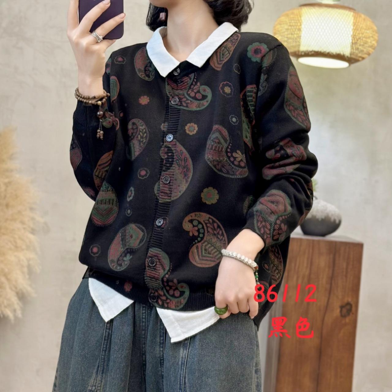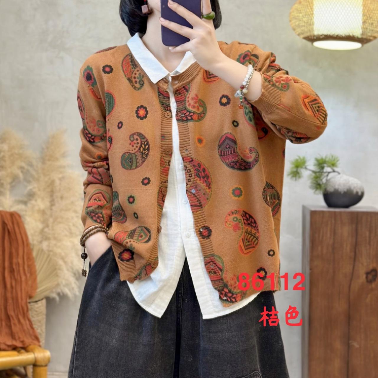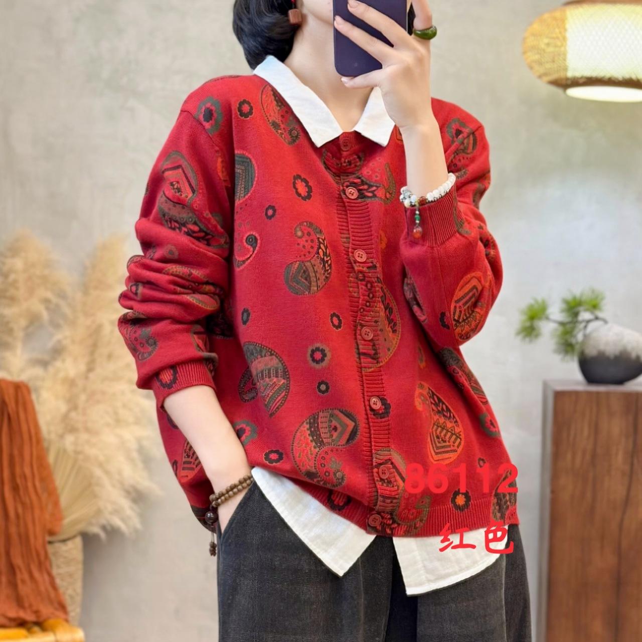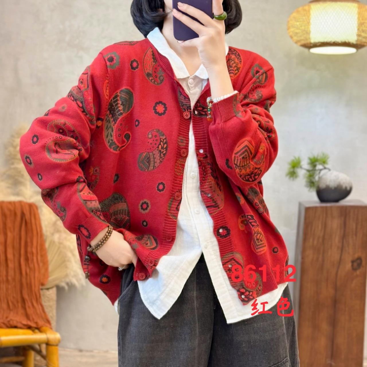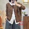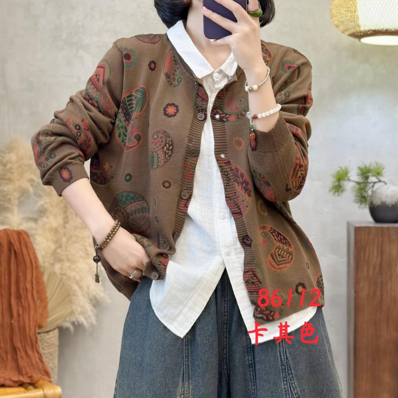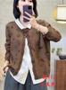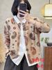 Suéter de Hilo de Algodón Otoño/Invierno 2025 para Mujer Cuello Redondo Manga Larga Corte Holgado Estampado Cárdigan Abrigo Ropa de Punto al Por Mayor para Mujer