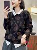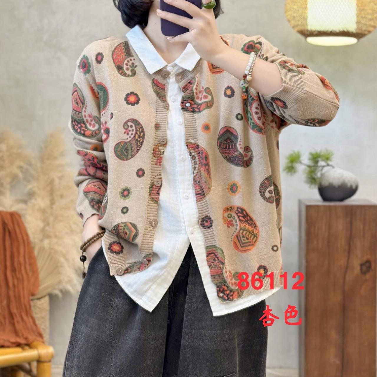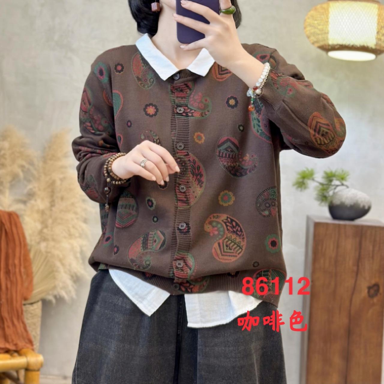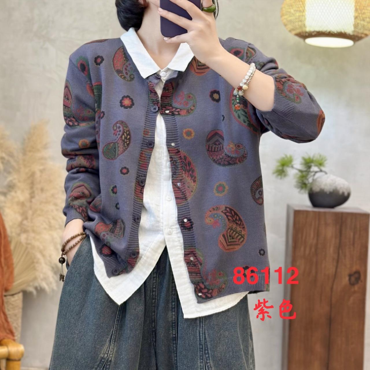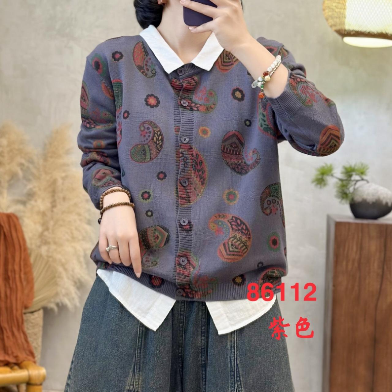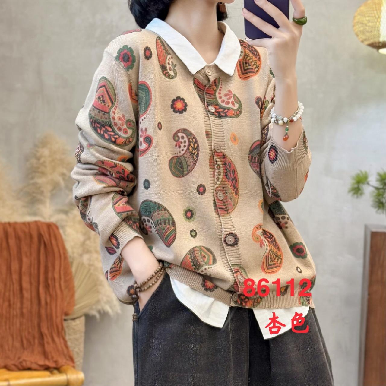 Suéter de Hilo de Algodón Otoño/Invierno 2025 para Mujer Cuello Redondo Manga Larga Corte Holgado Estampado Cárdigan Abrigo Ropa de Punto al Por Mayor para Mujer